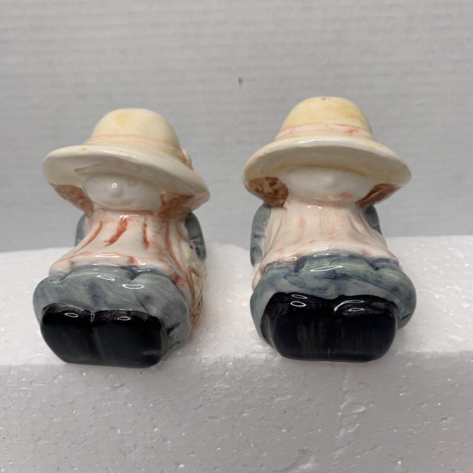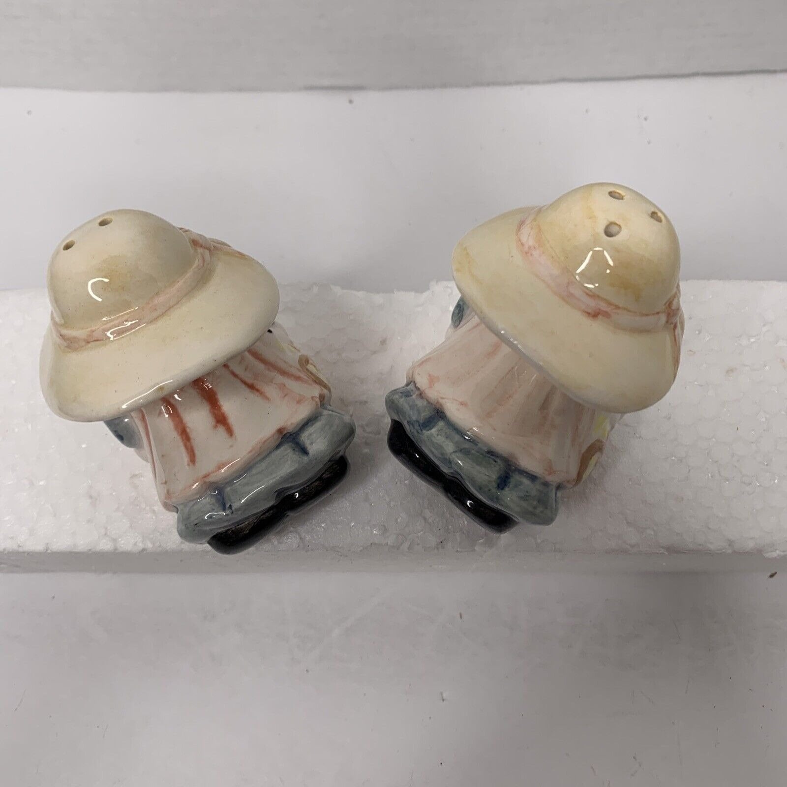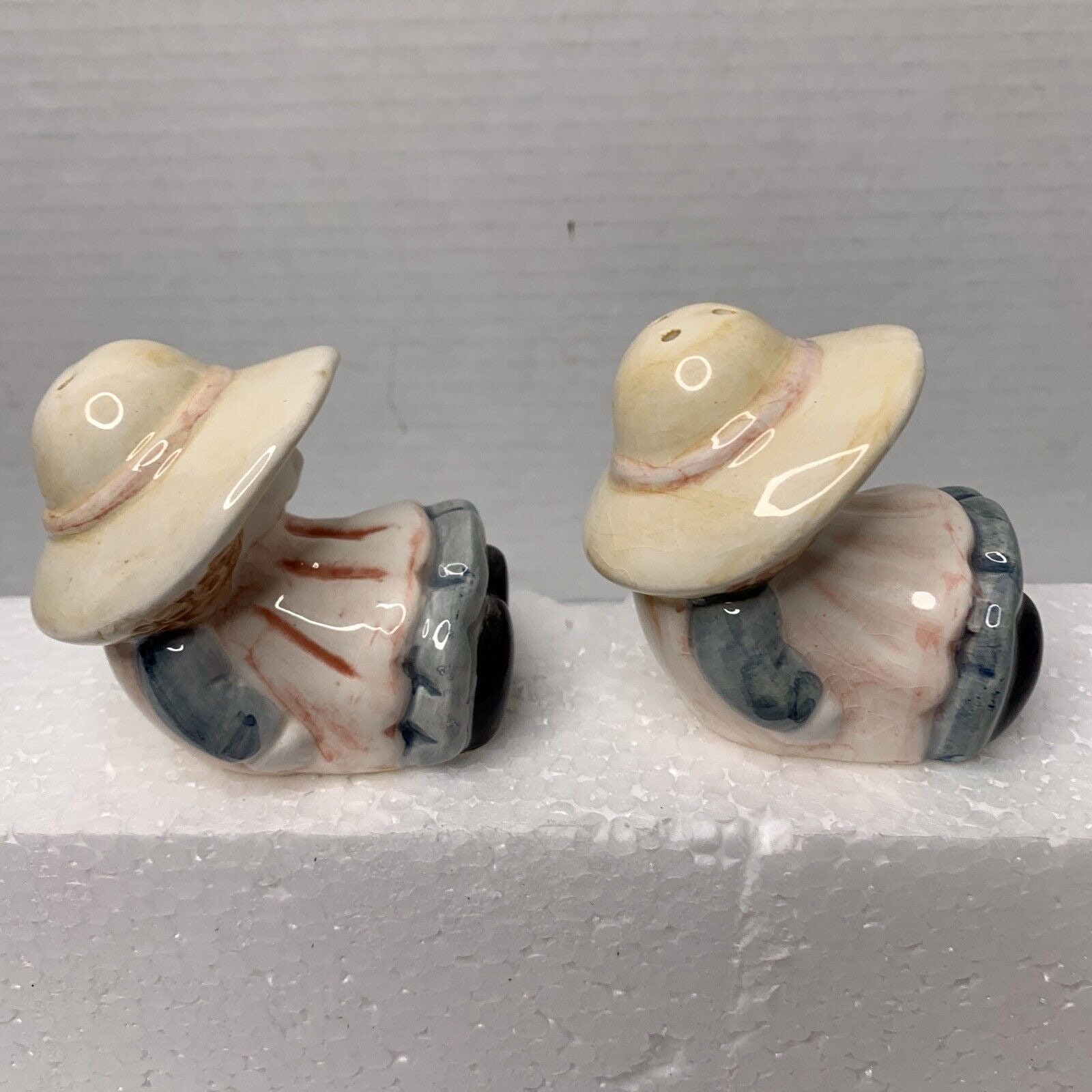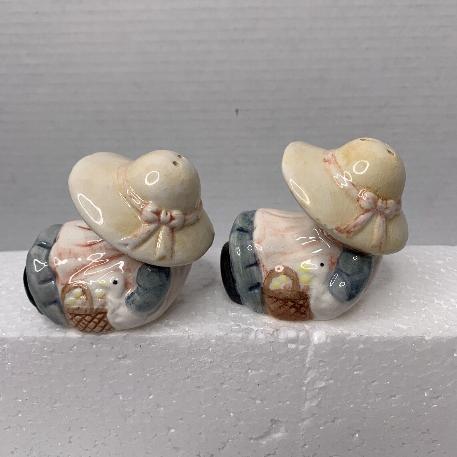 Vintage Ceramic Salt And Pepper Shakers Country Girl With Duck In Basket And A Big Hat