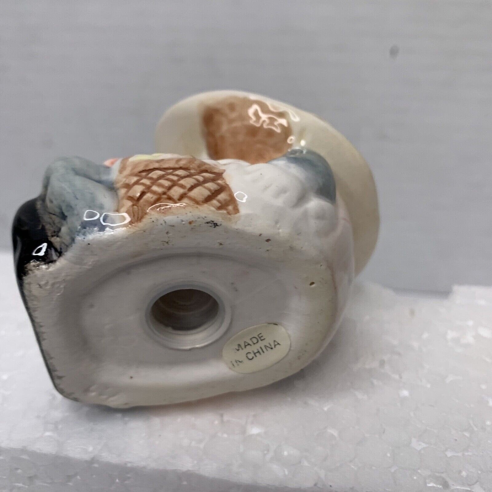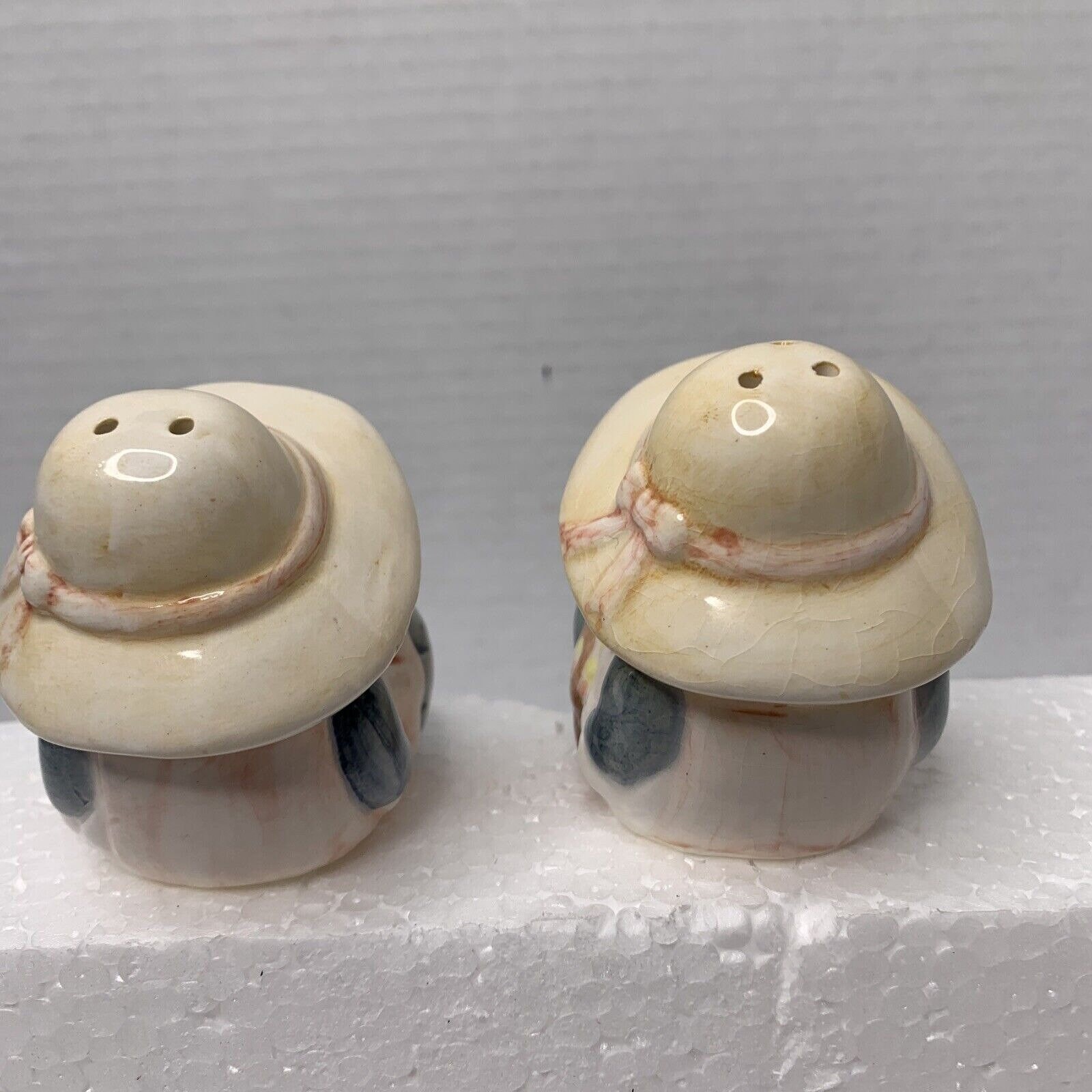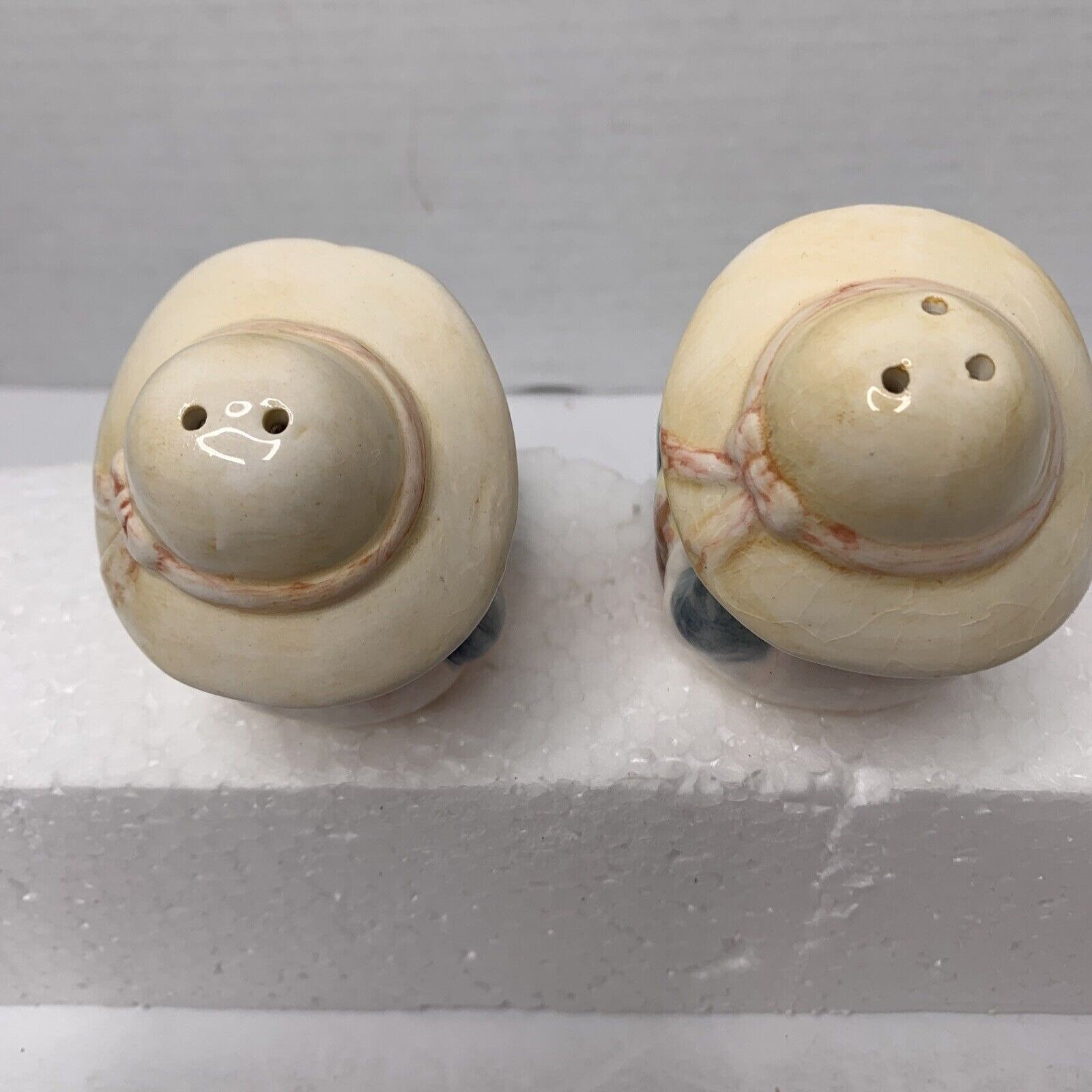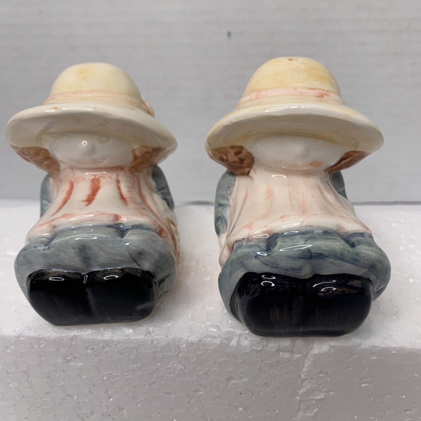 Vintage Ceramic Salt And Pepper Shakers Country Girl With Duck In Basket And A Big Hat