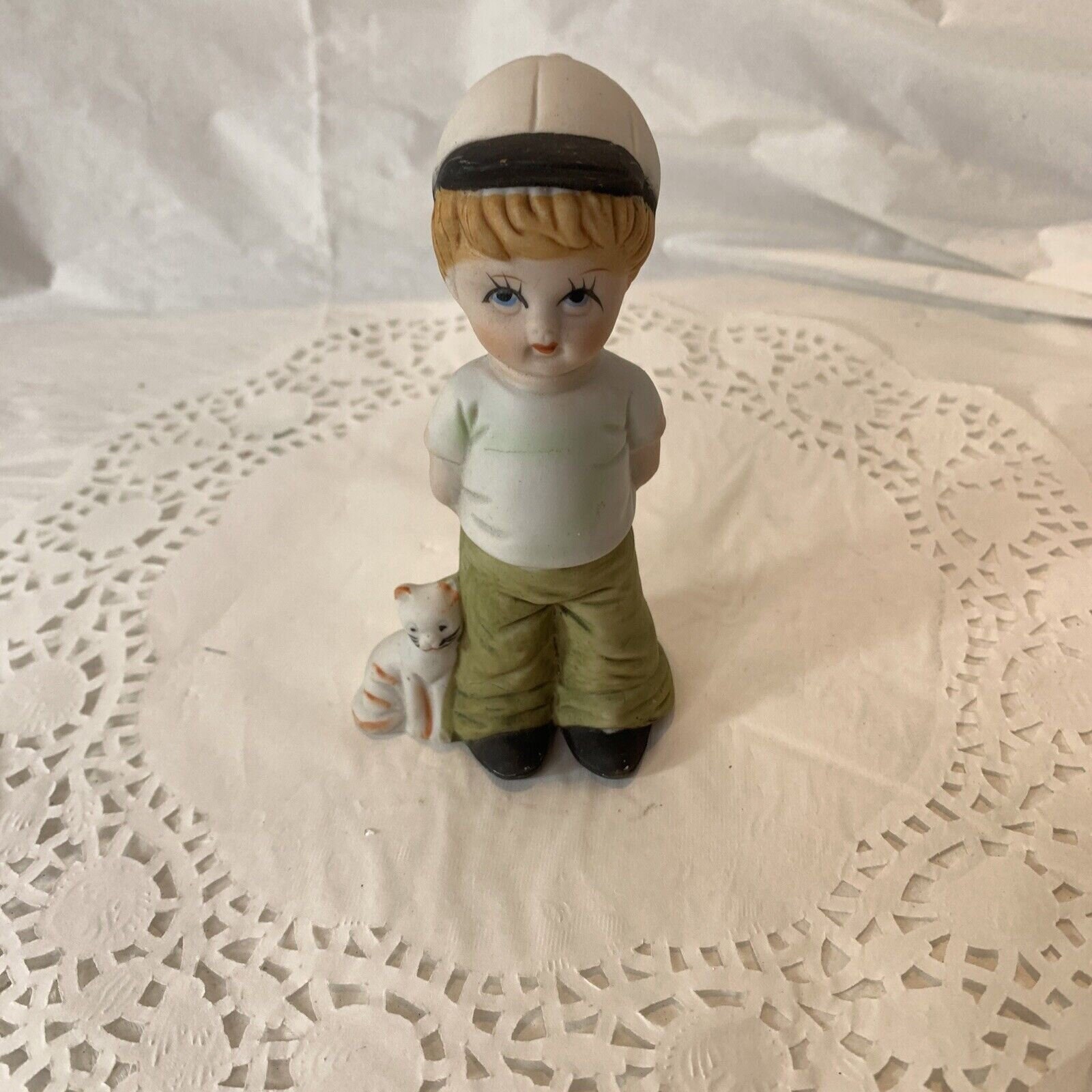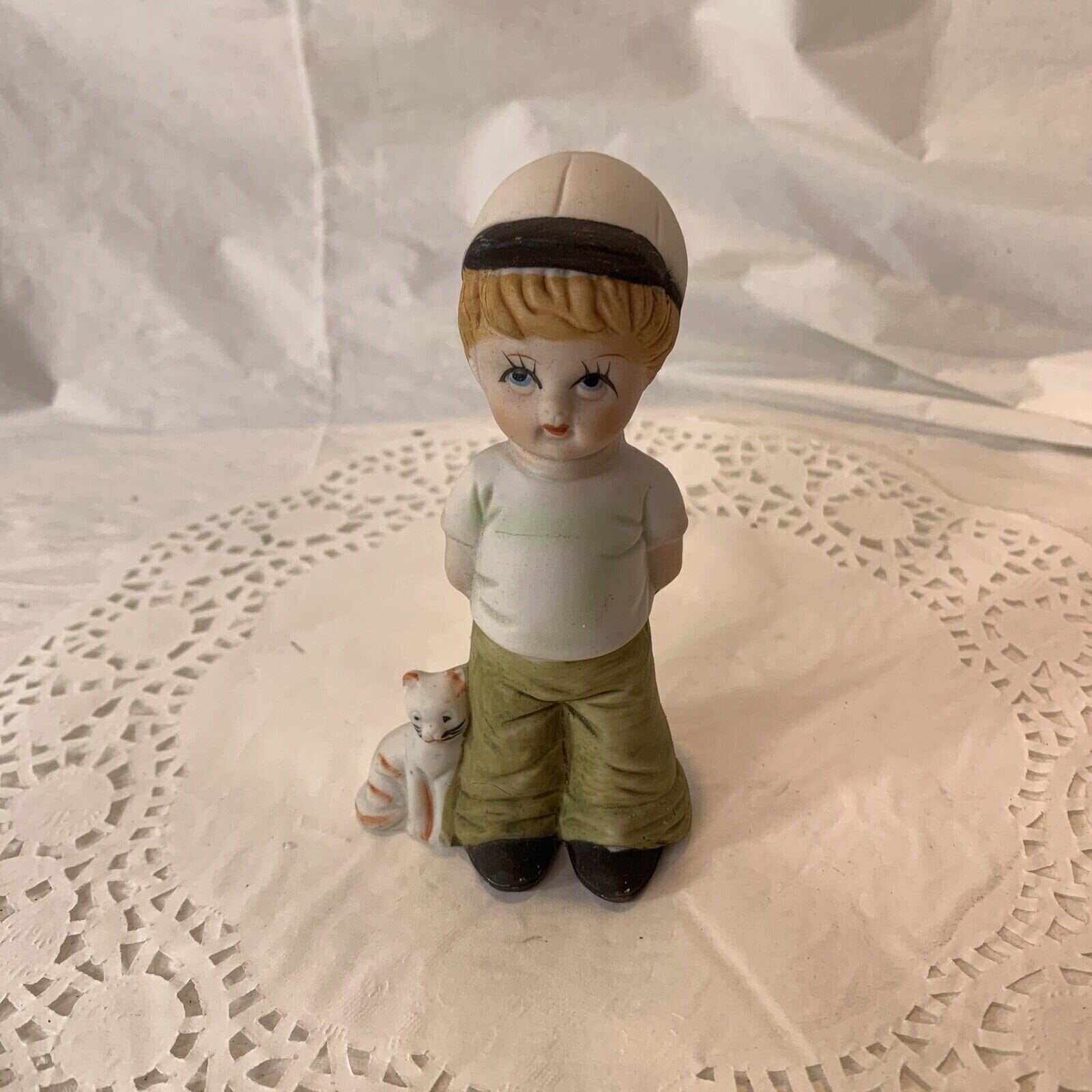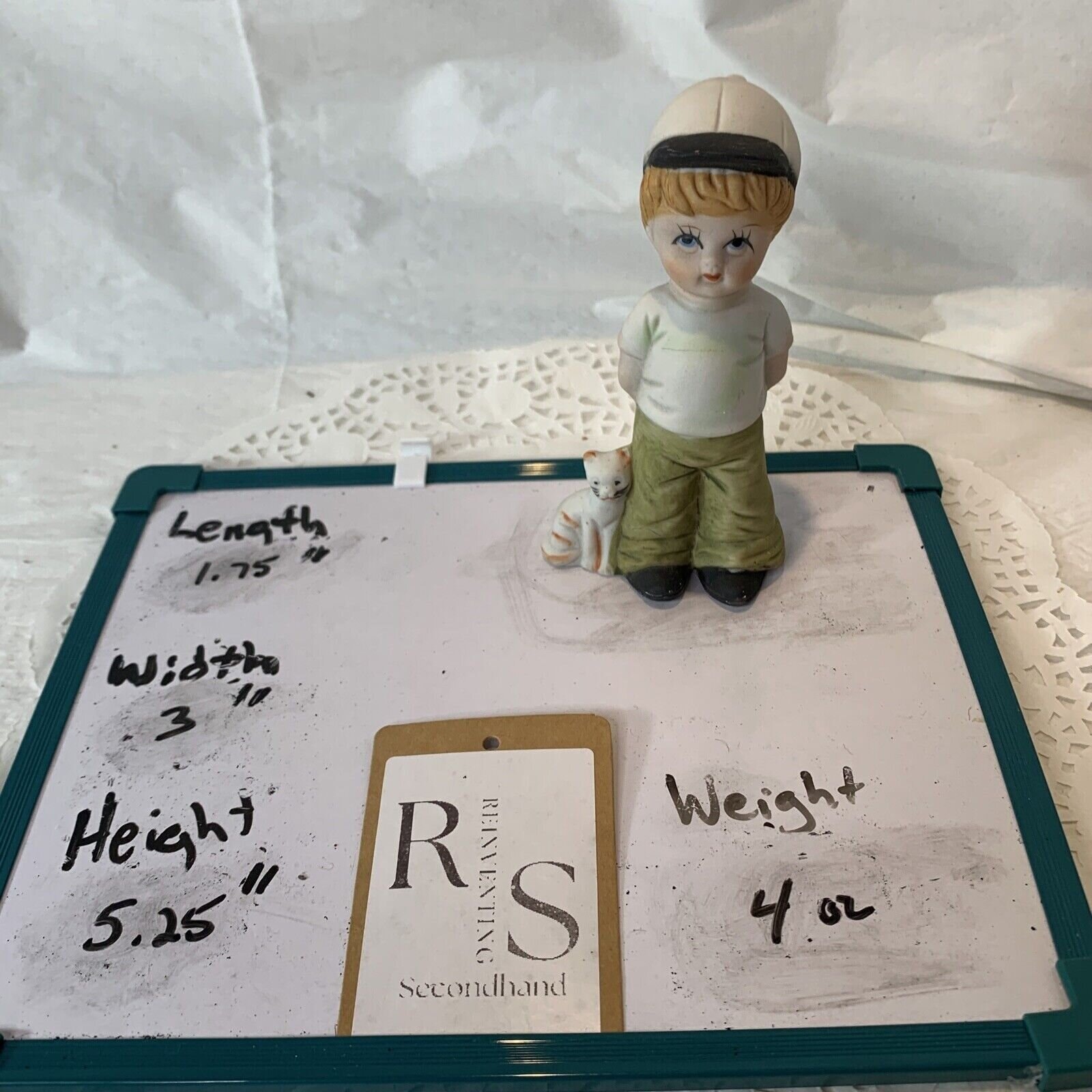 Vintage Ceramic Child With Cat Figurine By VCGC
