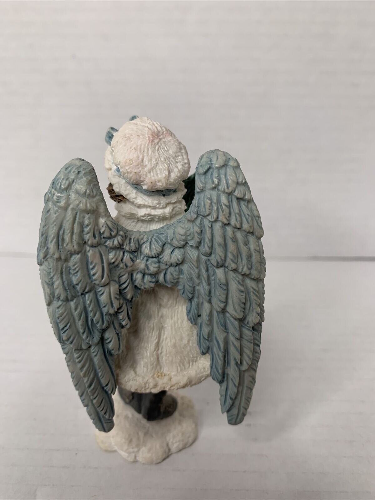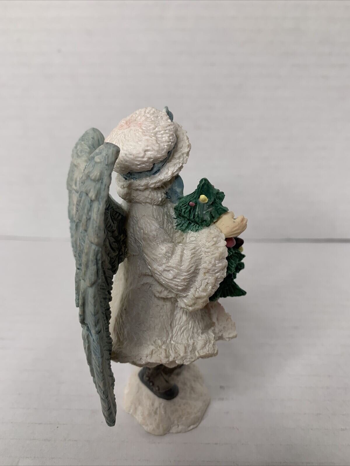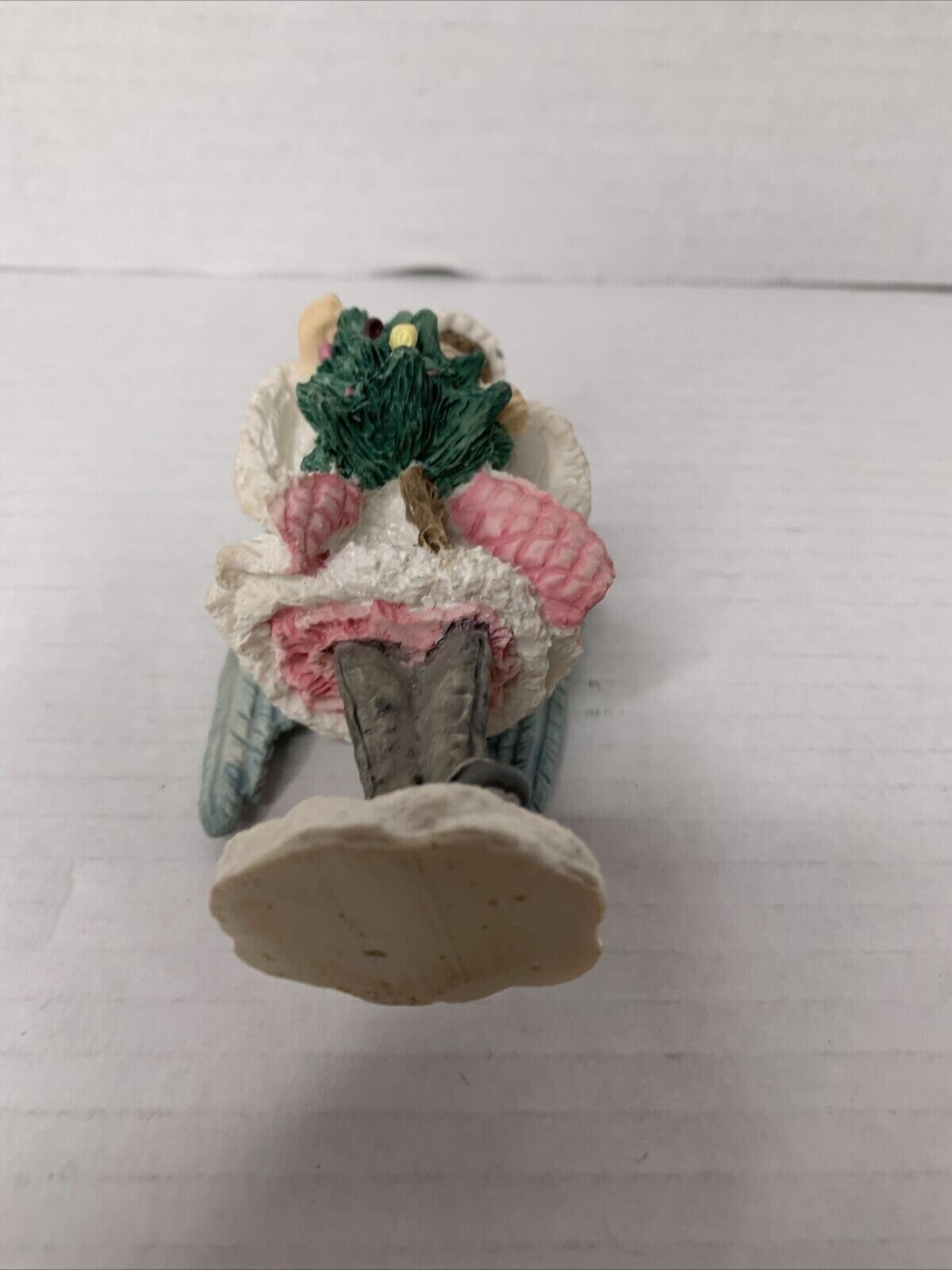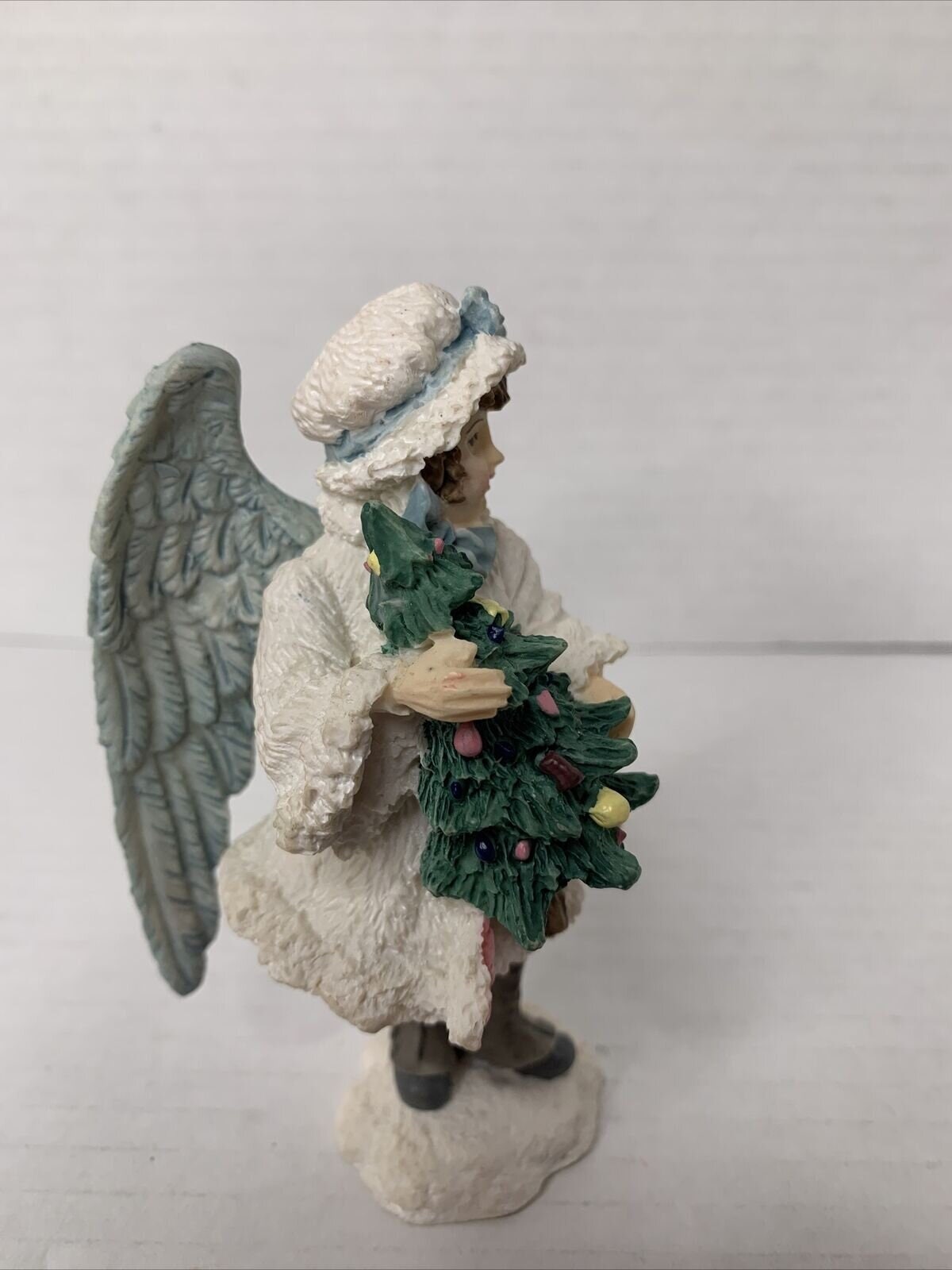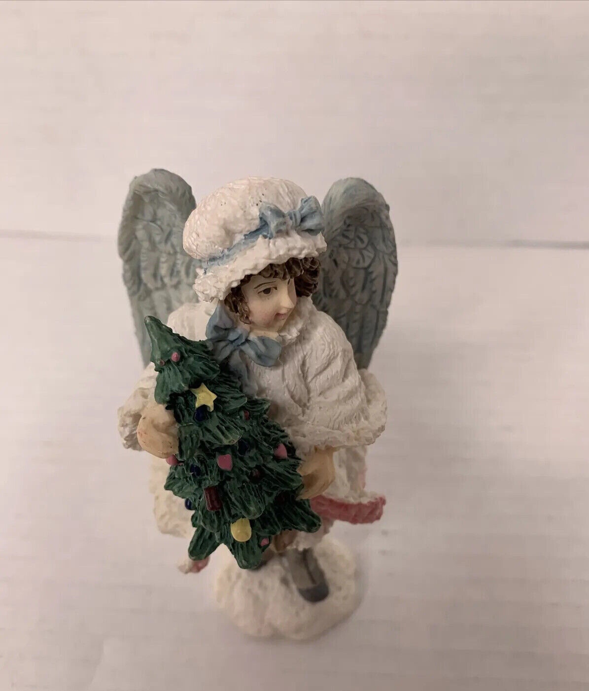 One is dressed in pink and holding a basket of flowers (unbranded but very similar in style to the other angel).