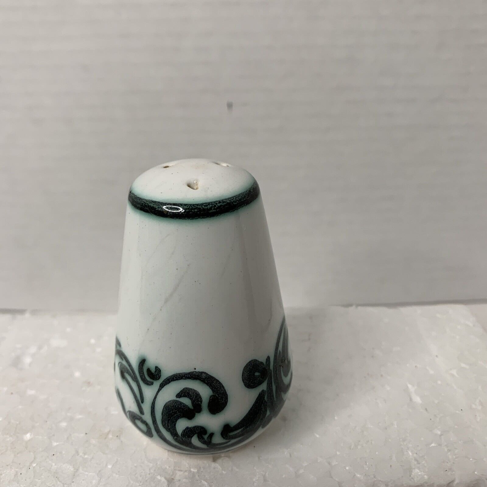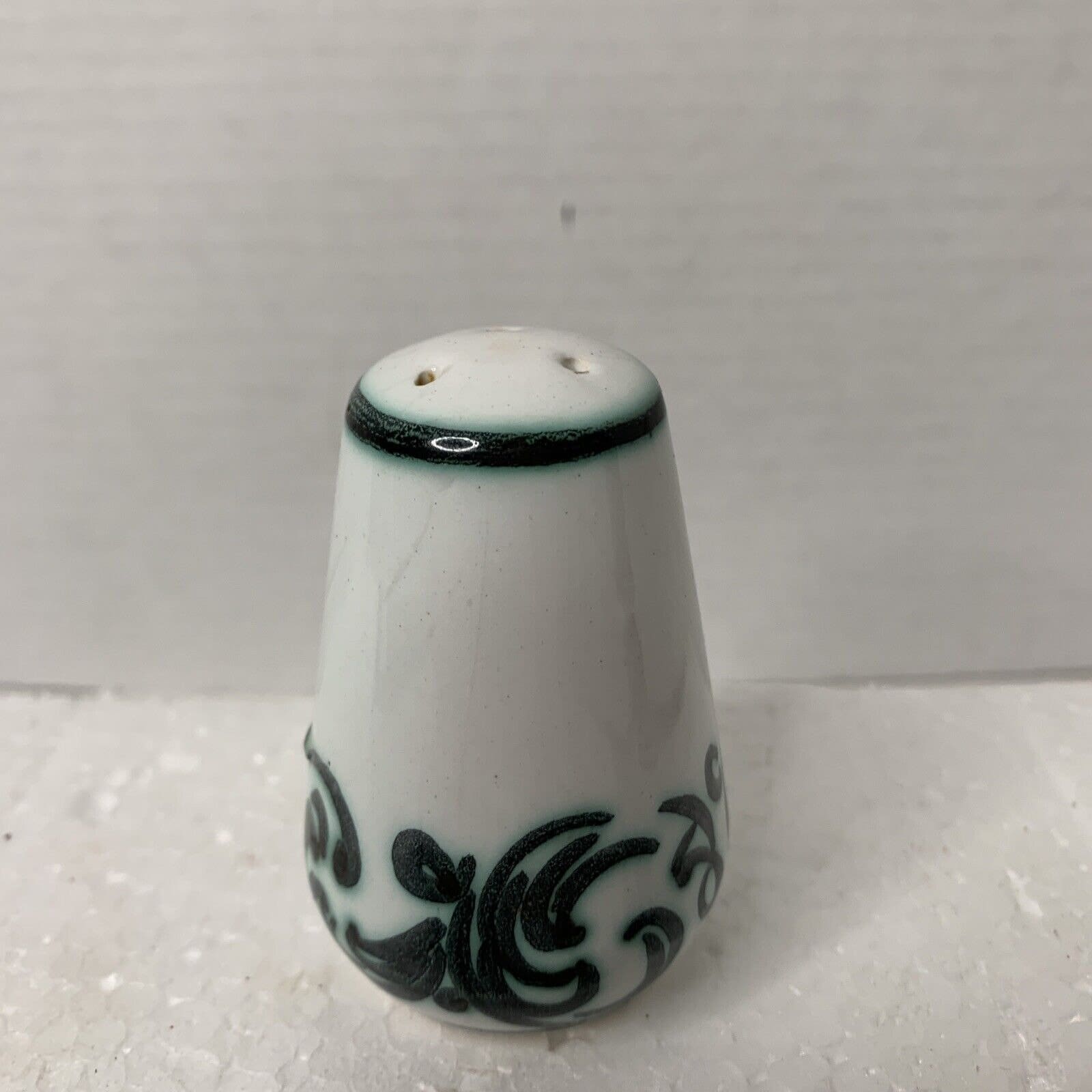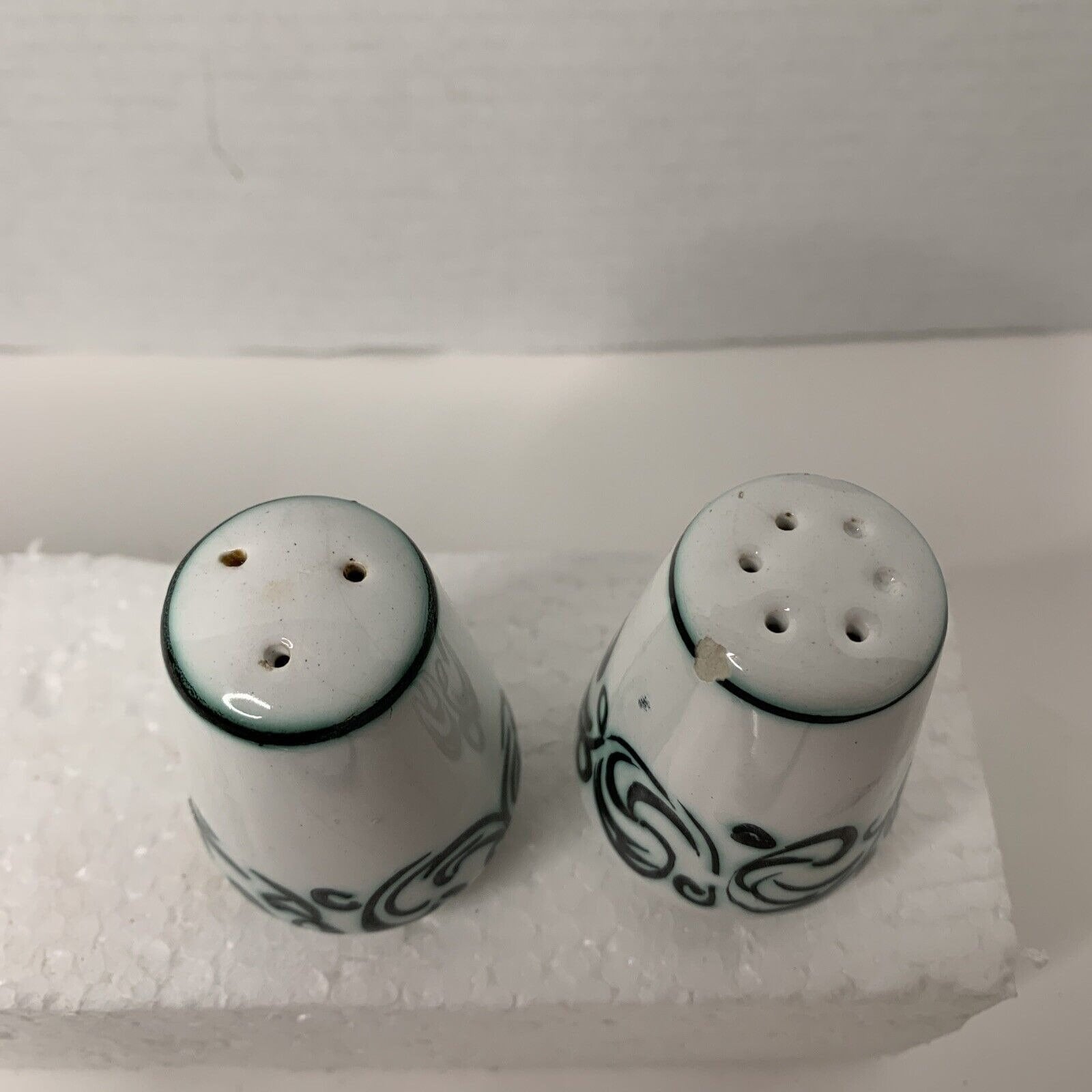 This is a vintage condition, pre-owned item that shows signs of wear. The overall condition is fair, with wear on the items. The three-hole shaker is in good shape, minus the stopper. The five-hole shaker has chips and a chipped bottom (see photos). Item does not come with original box or packaging. Please review all photos for signs of wear before purchasing. Photos are part of the description—ships from a smoke-free facility.