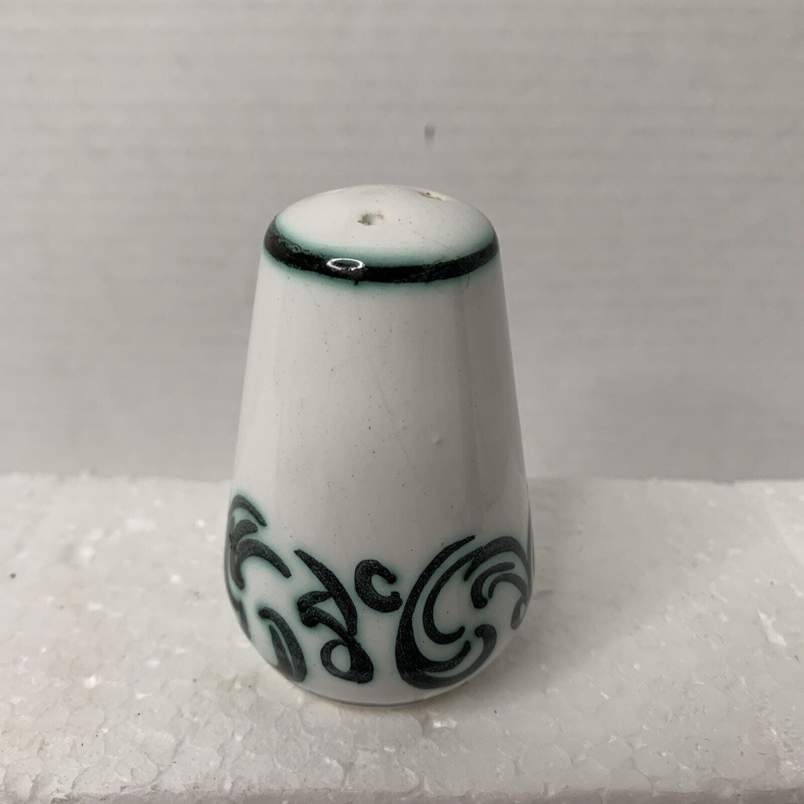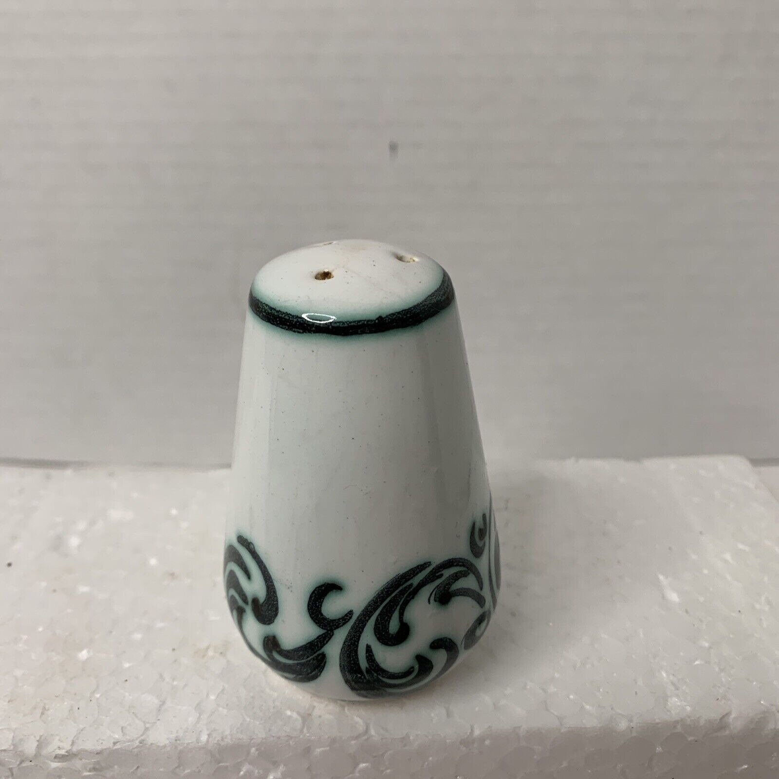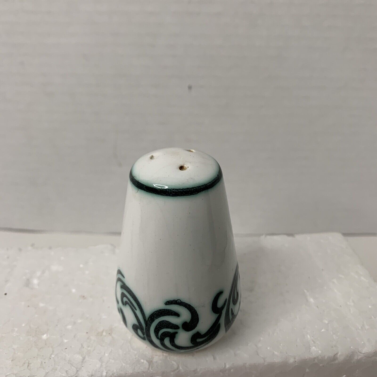 This is a vintage condition, pre-owned item that shows signs of wear. The overall condition is fair, with wear on the items. The three-hole shaker is in good shape, minus the stopper. The five-hole shaker has chips and a chipped bottom (see photos). Item does not come with original box or packaging. Please review all photos for signs of wear before purchasing. Photos are part of the description—ships from a smoke-free facility.