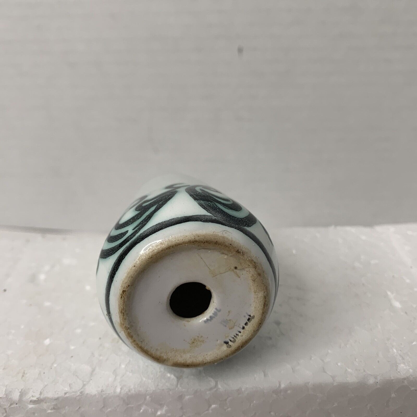 ~White with an artistic green swirl pattern