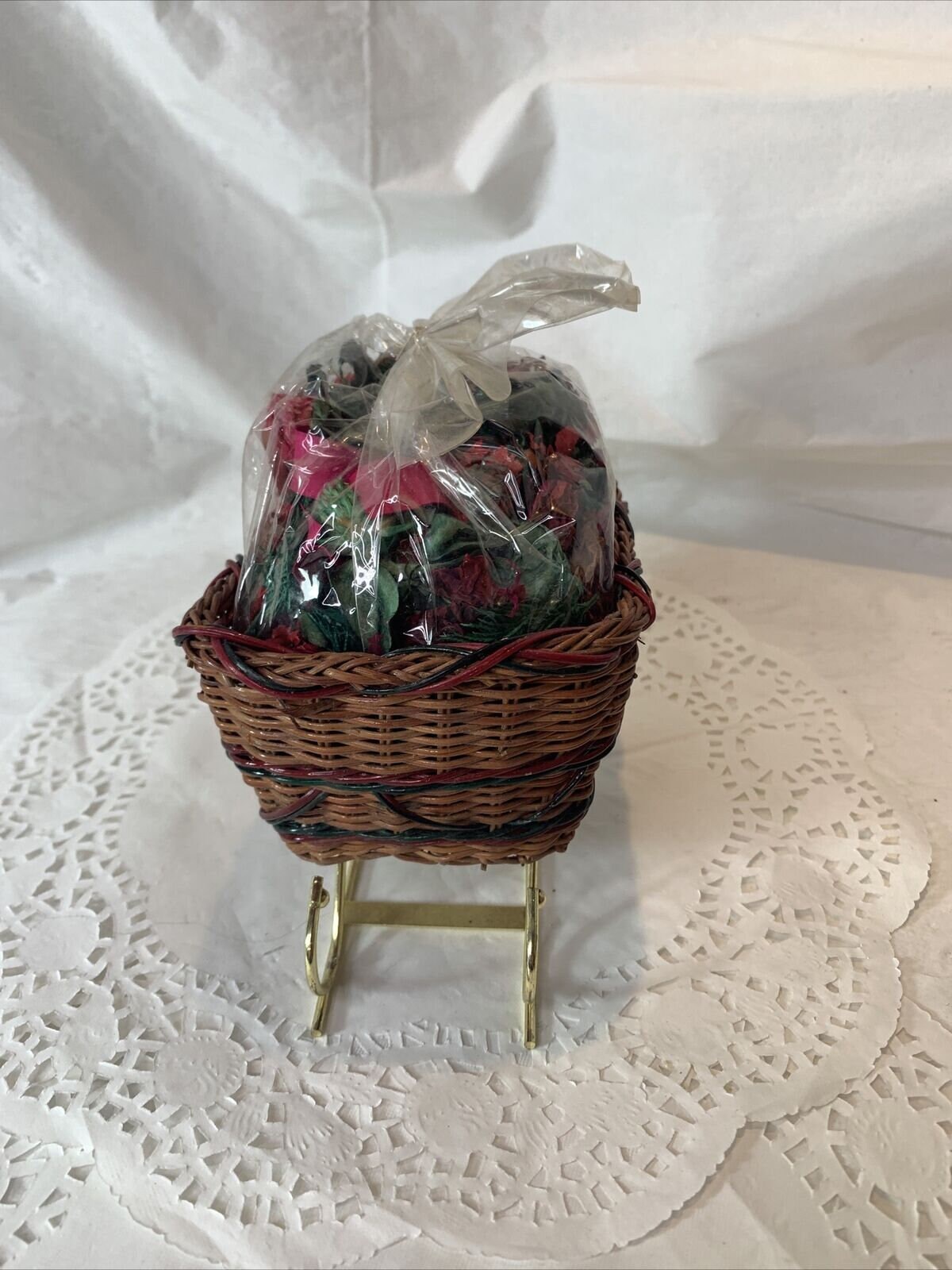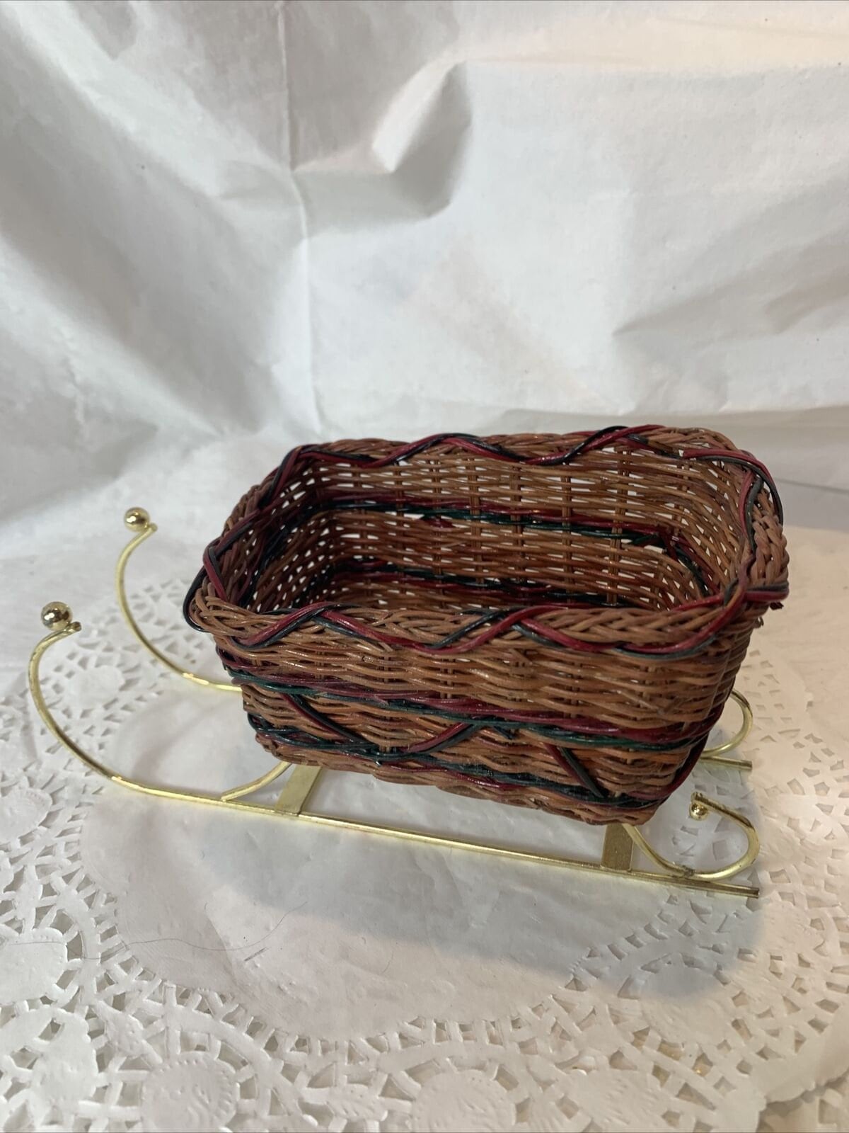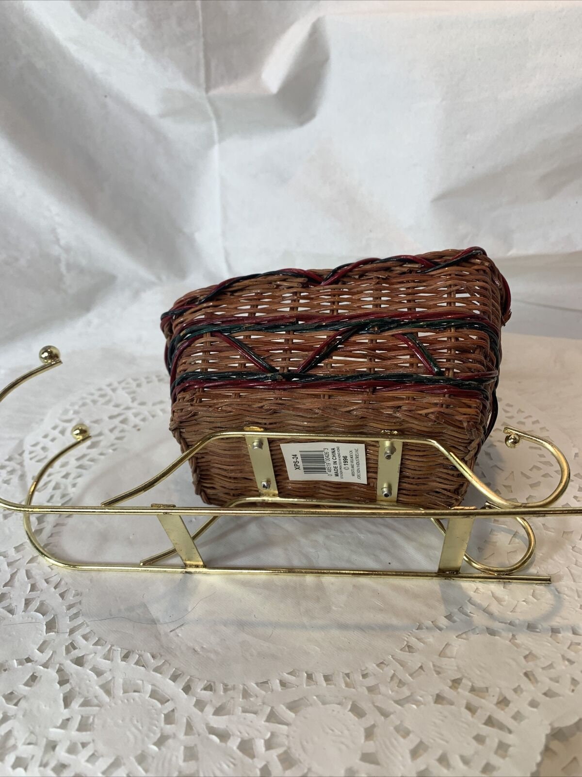 Vintage Wicker & Metal Sleigh Christmas Decoration By Joelson Industries
