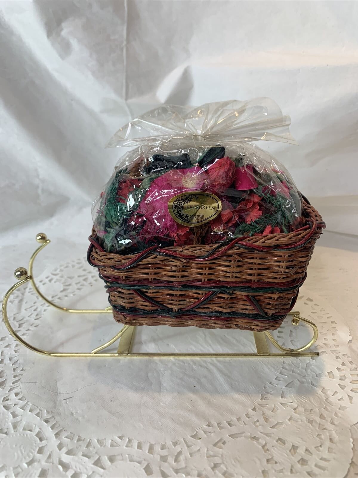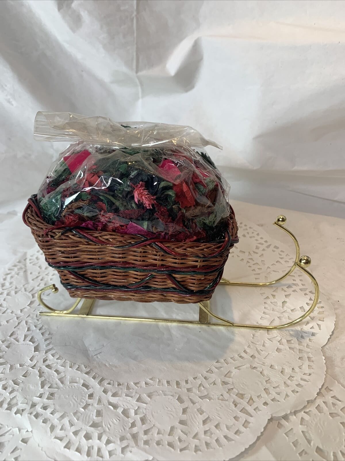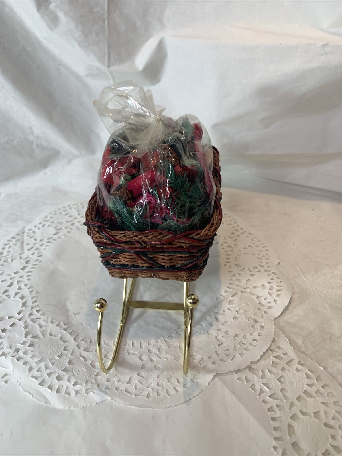 Vintage Wicker & Metal Sleigh Christmas Decoration By Joelson Industries