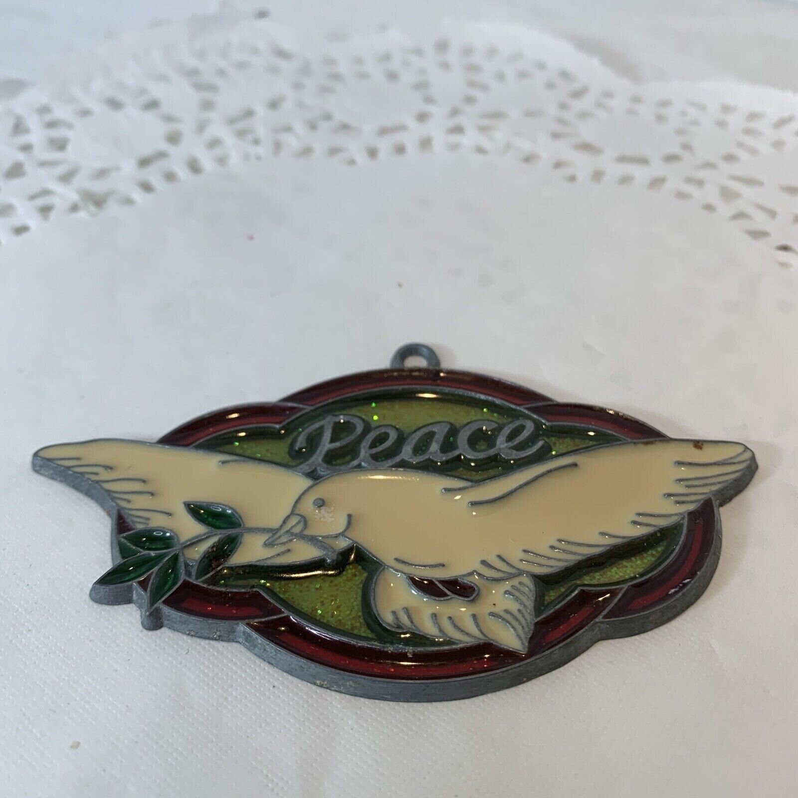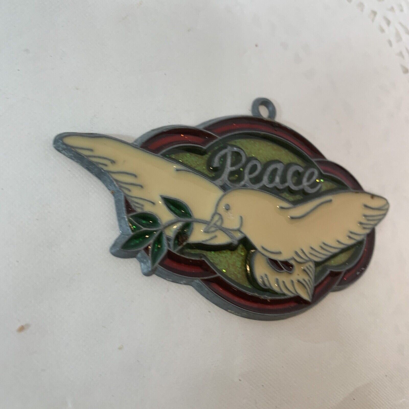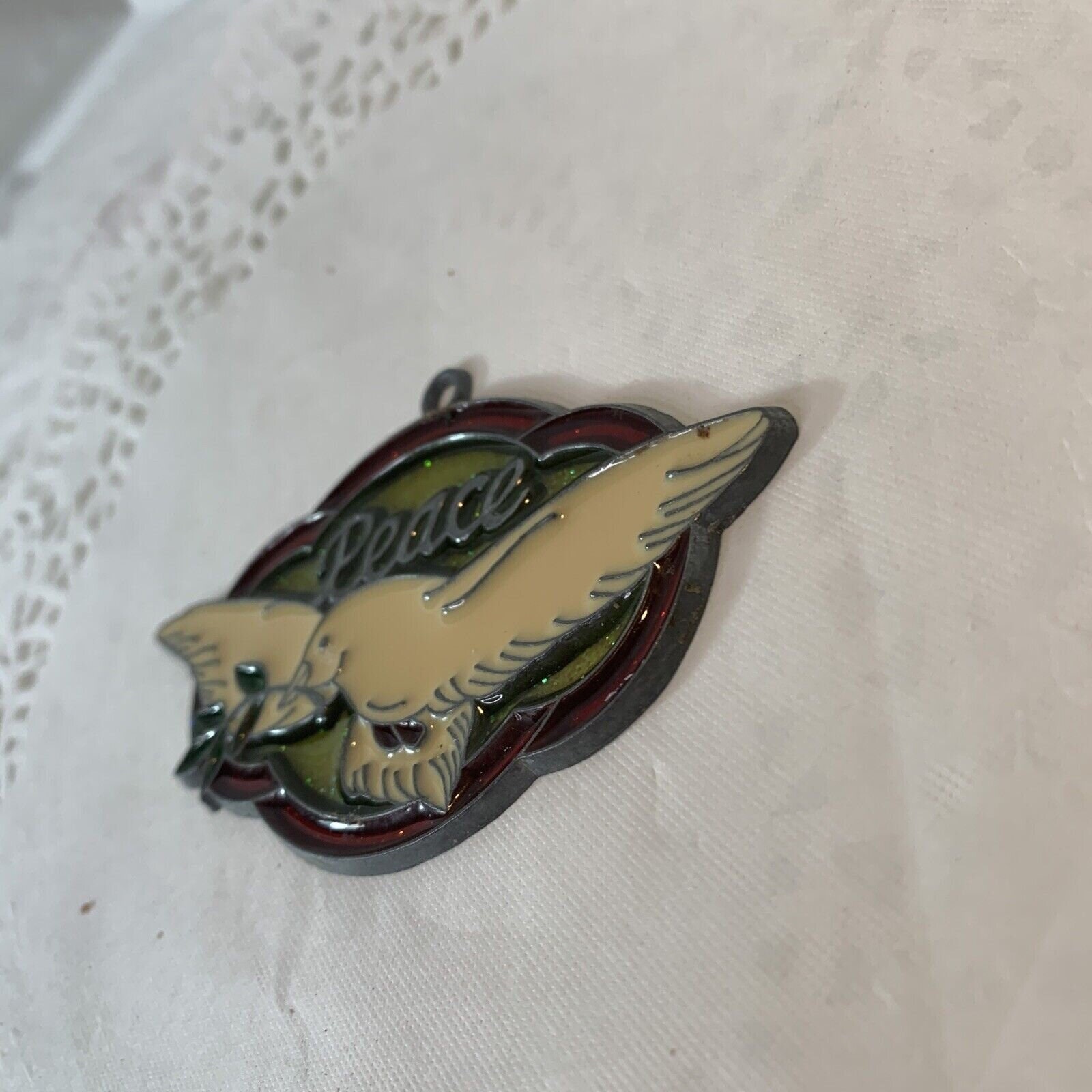 Vintage Metal Glass Sun Catcher Peace Dove Rainbow Ornament