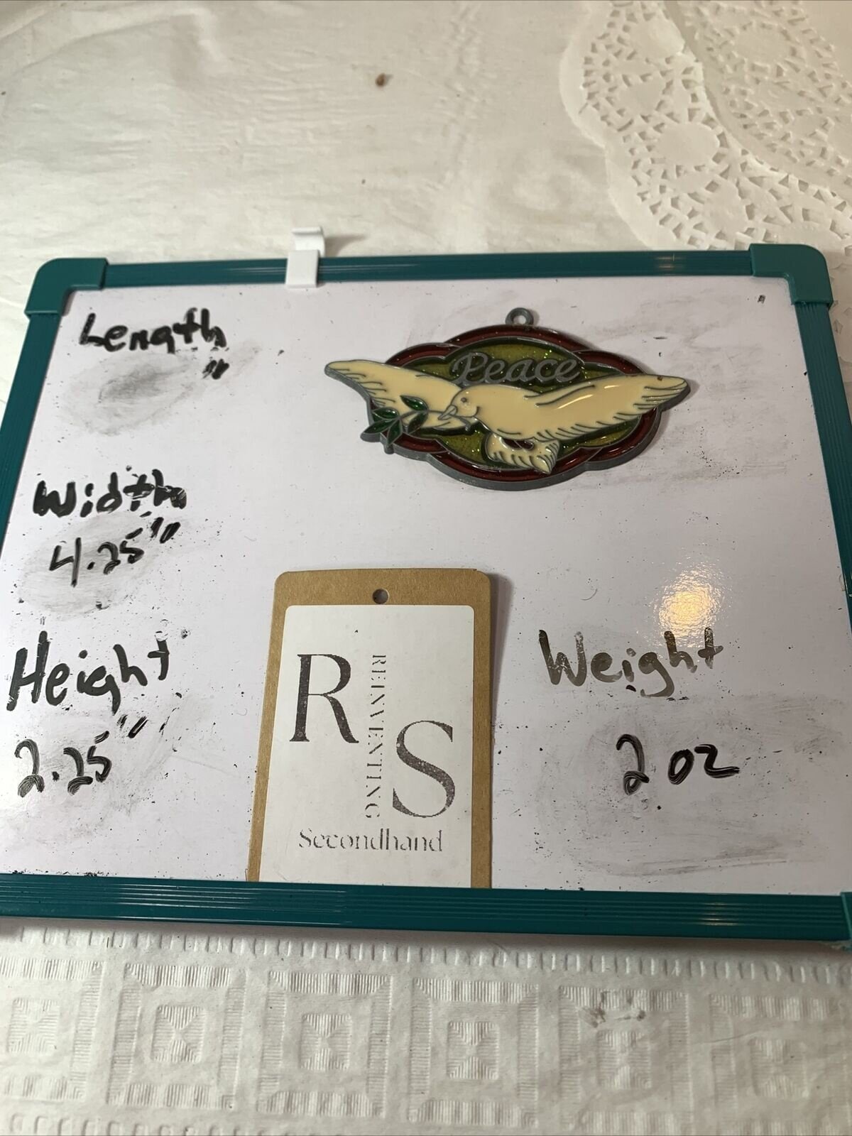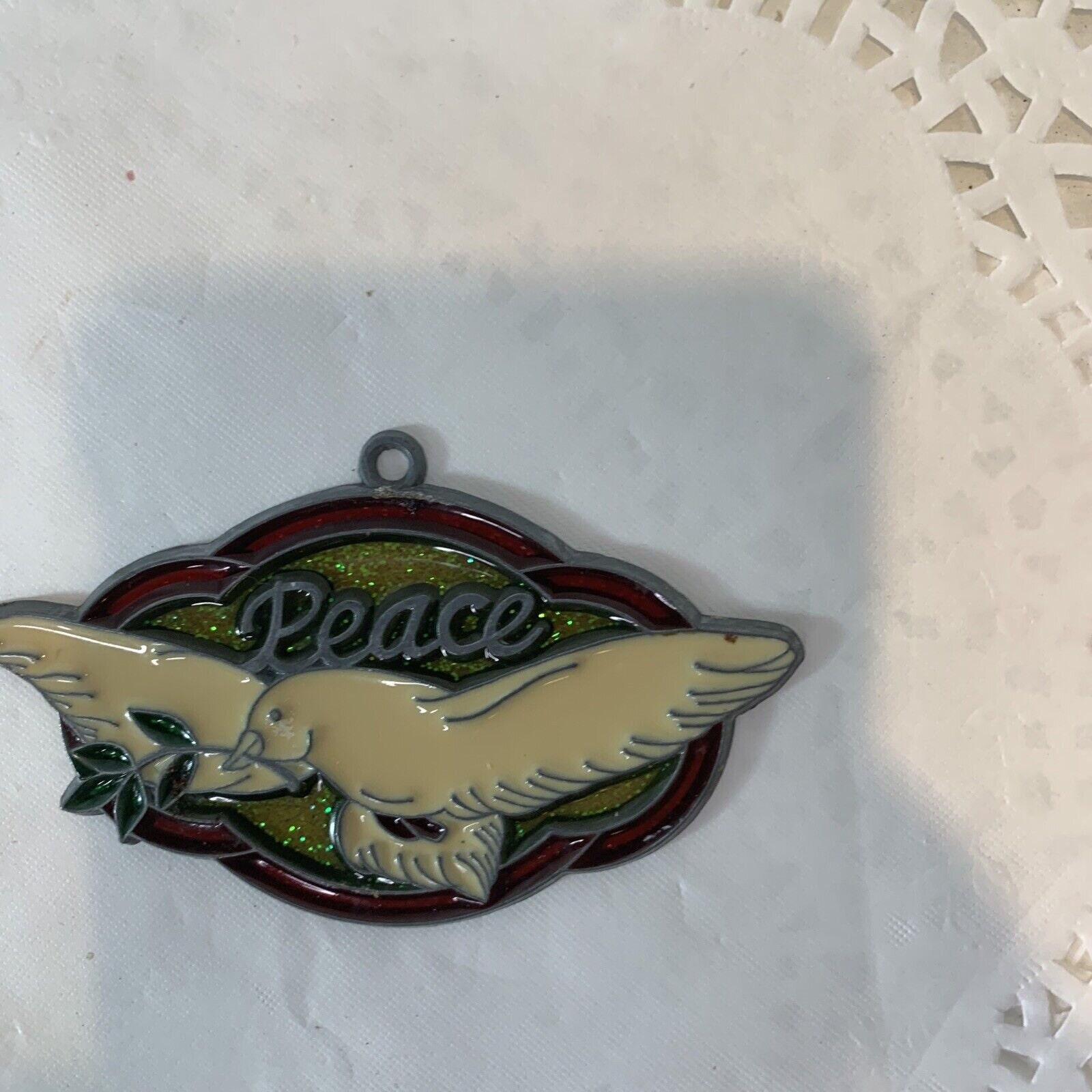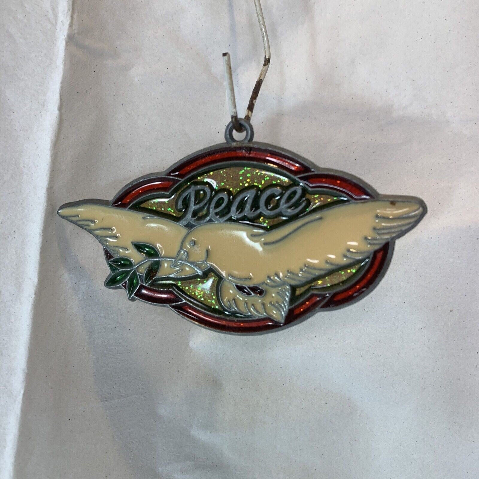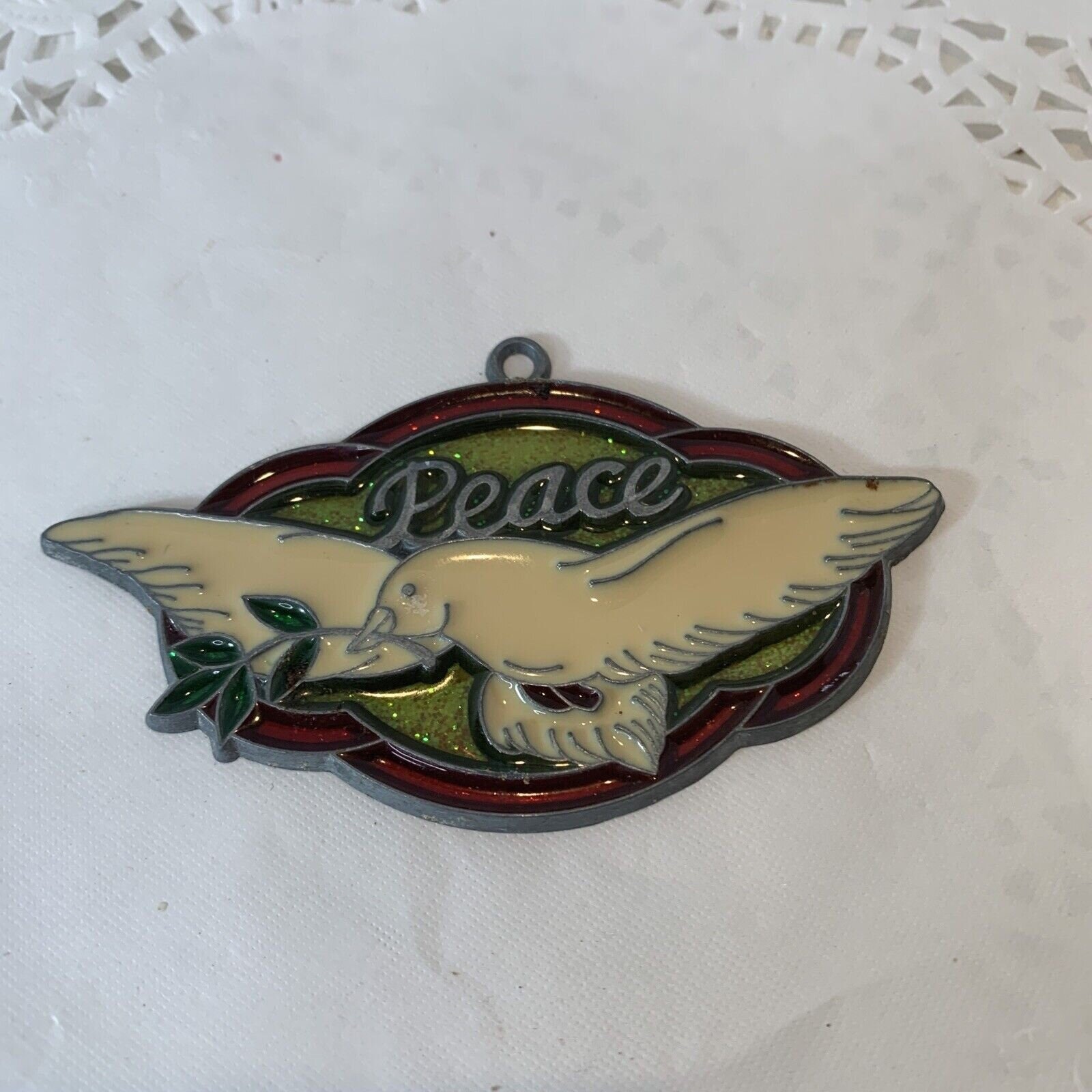 Vintage Metal Glass Sun Catcher Peace Dove Rainbow Ornament