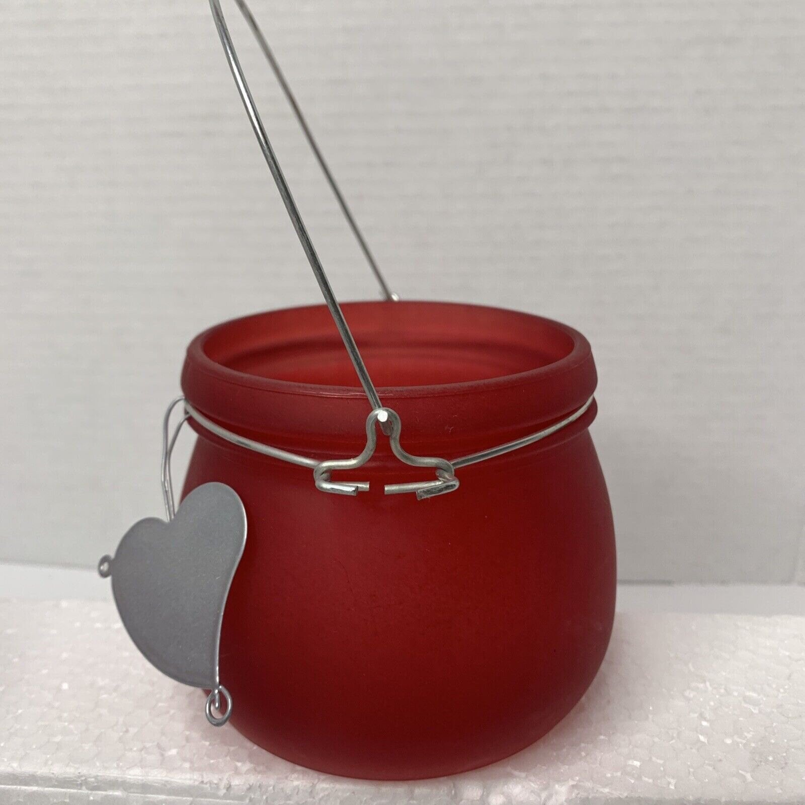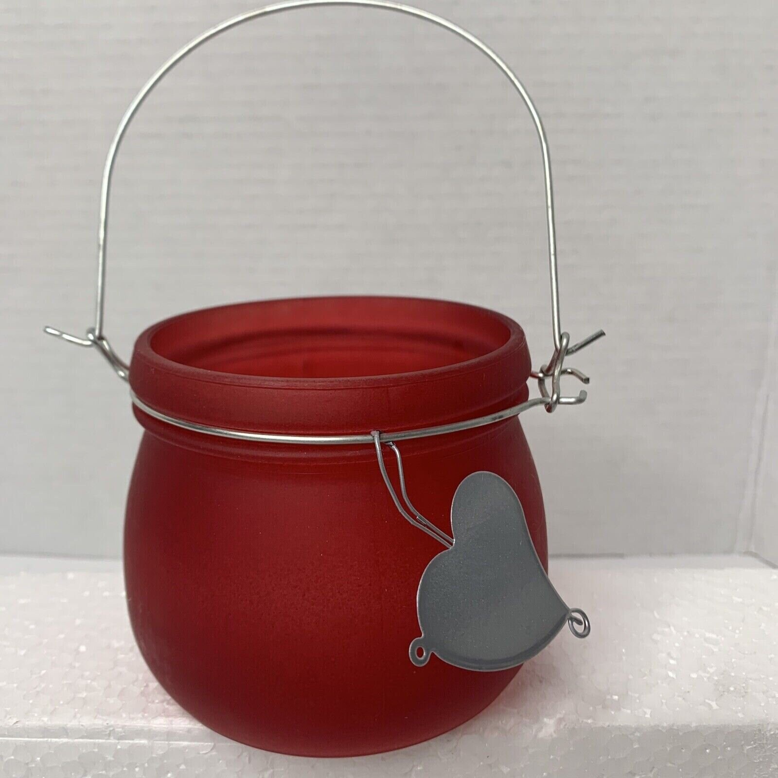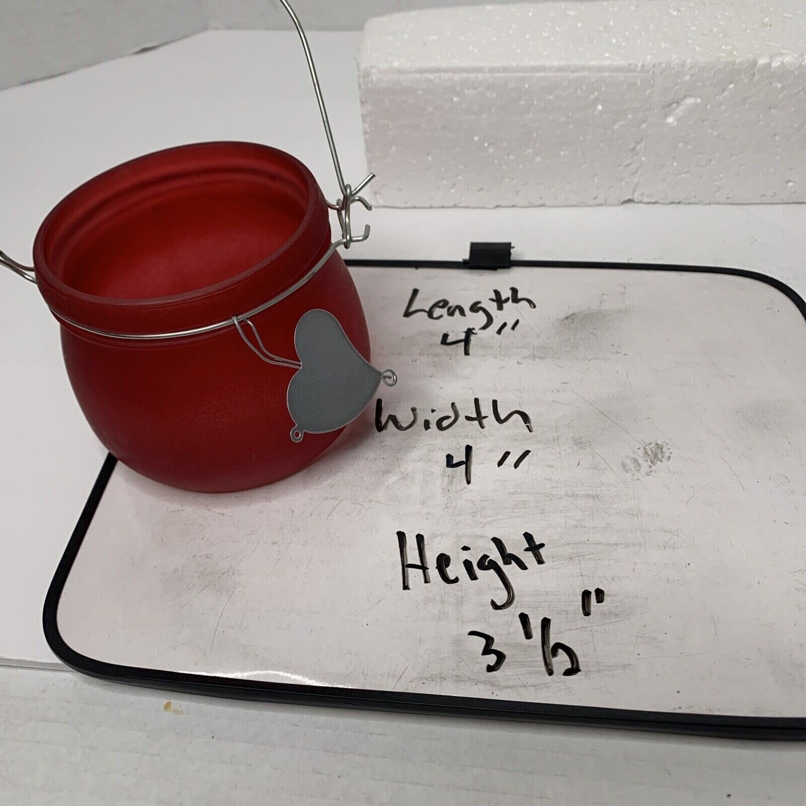 Red Frosted Glass Jar With Metal Handle Metal Heart Multipurpose Jar