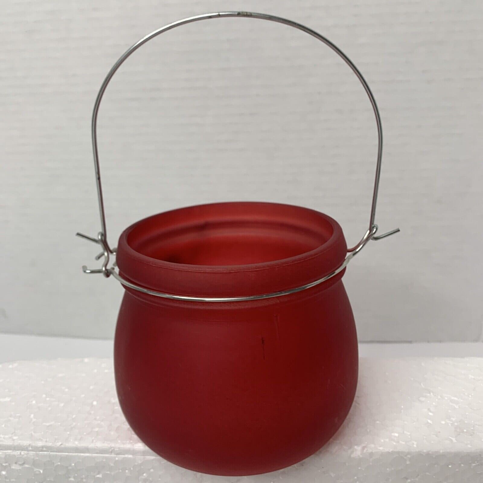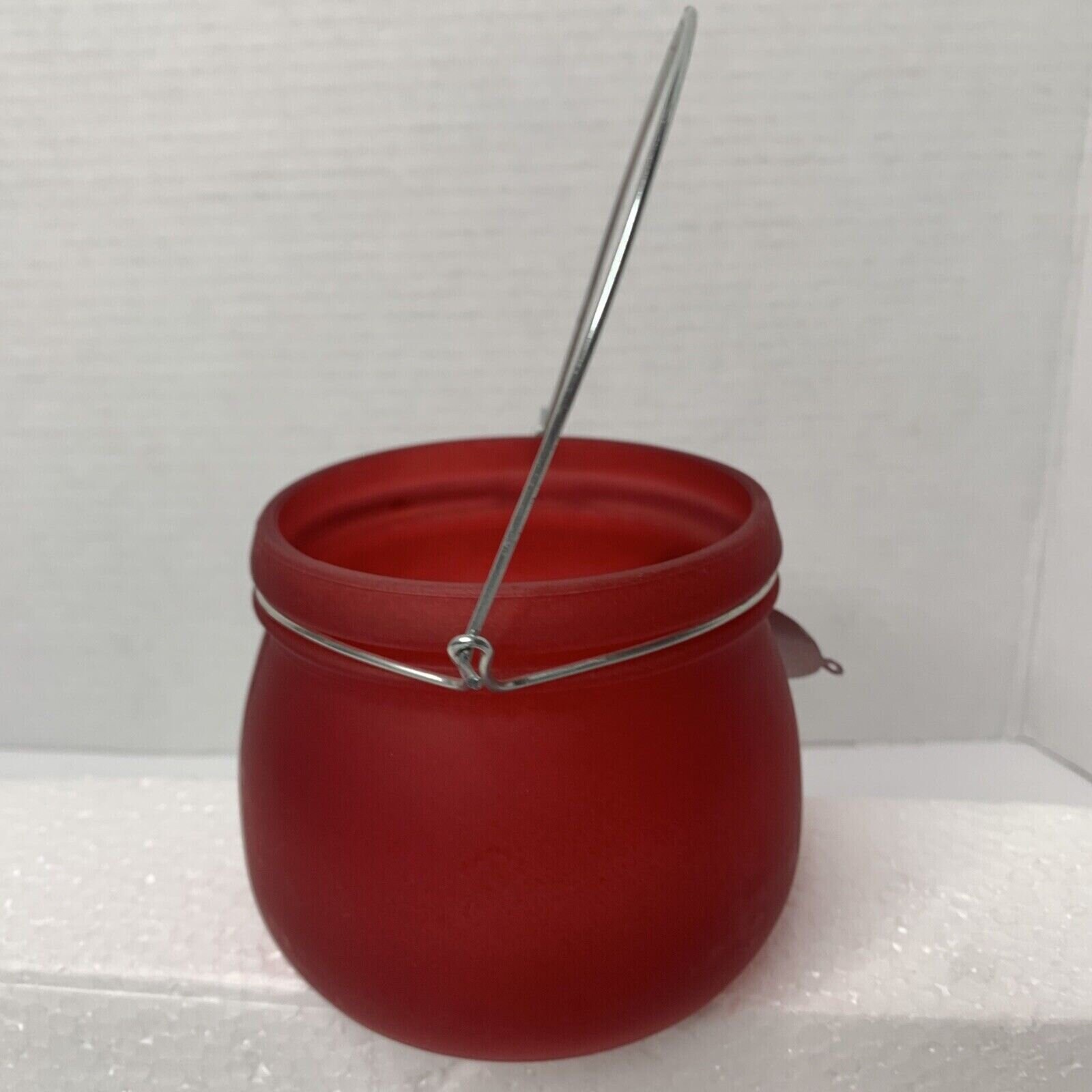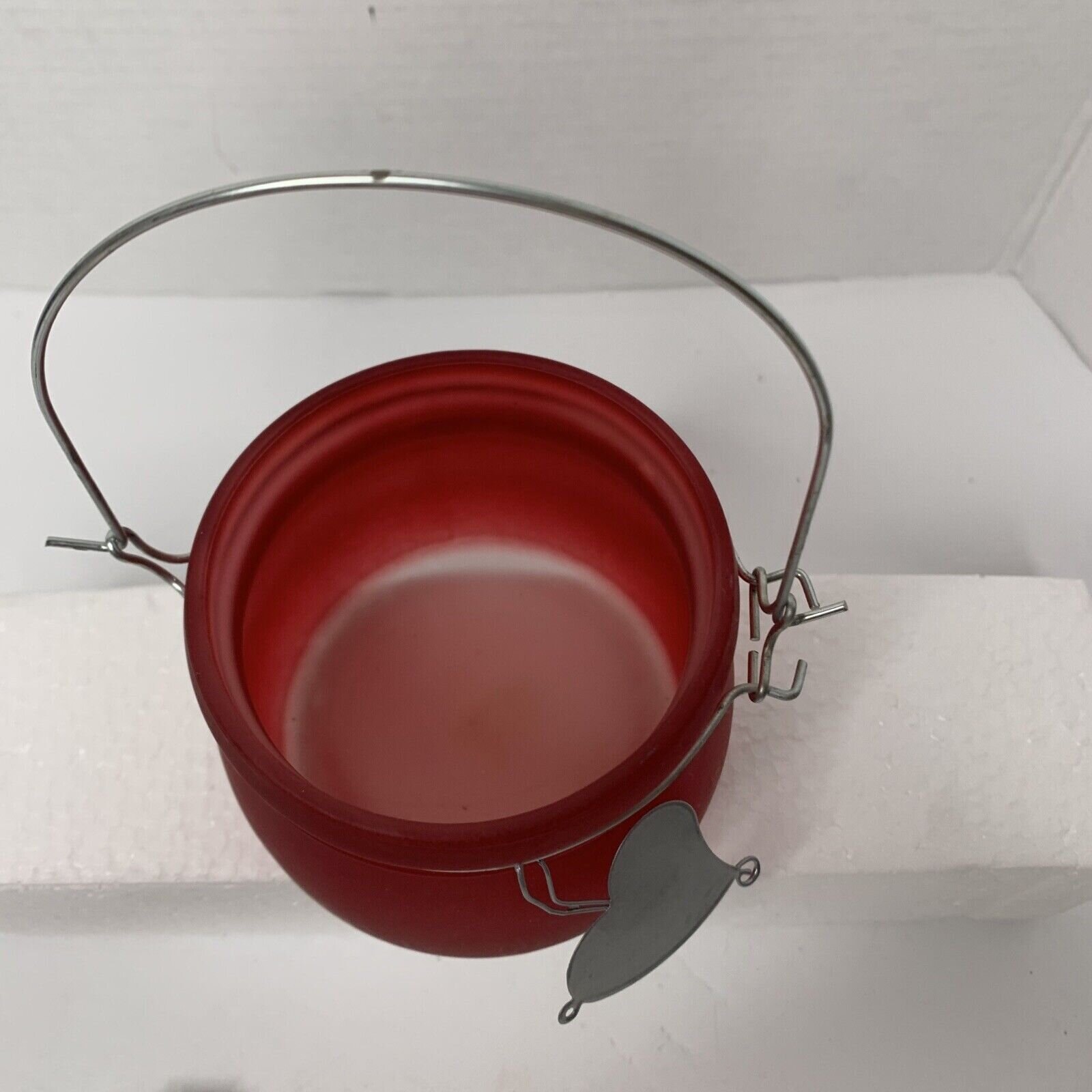 Red Frosted Glass Jar With Metal Handle Metal Heart Multipurpose Jar