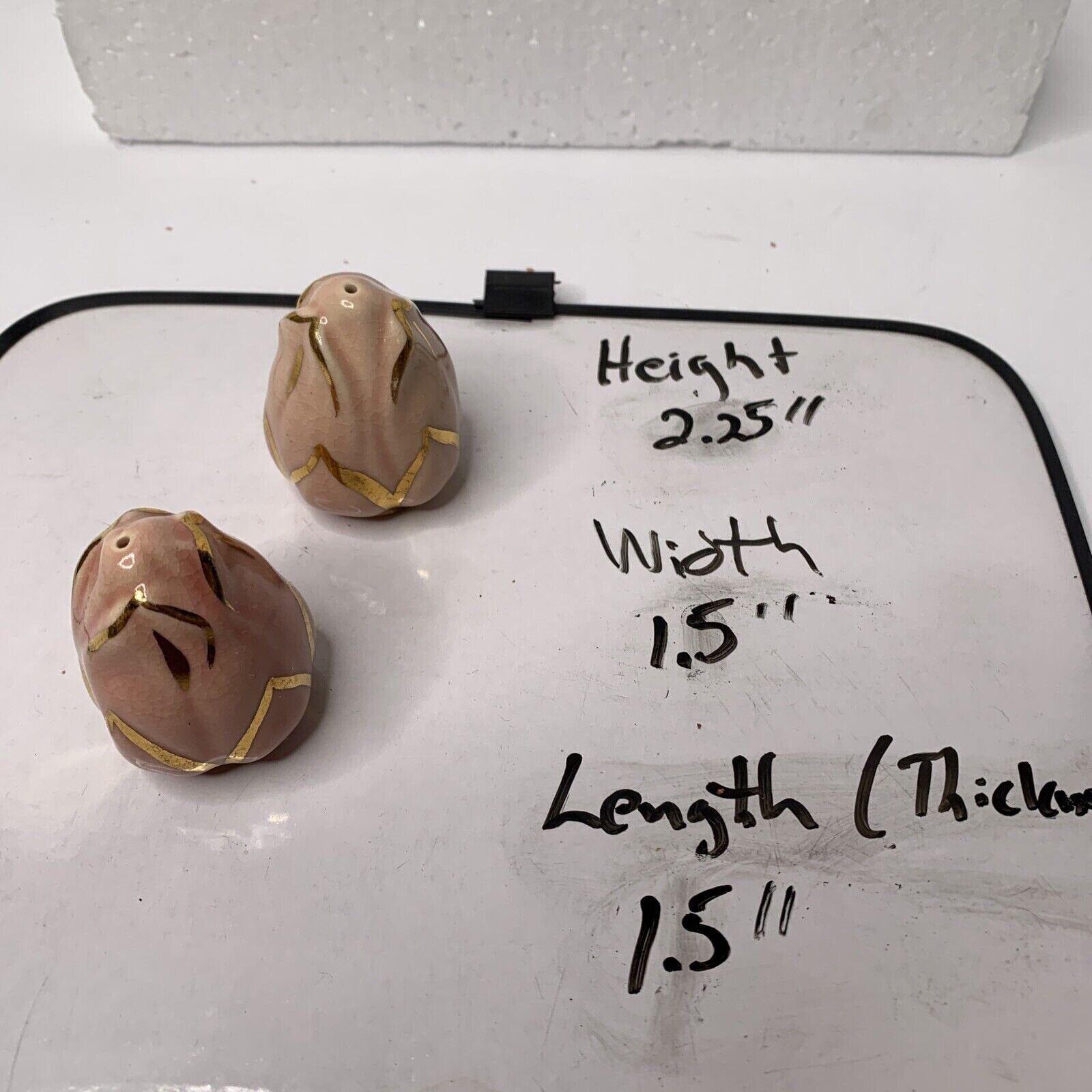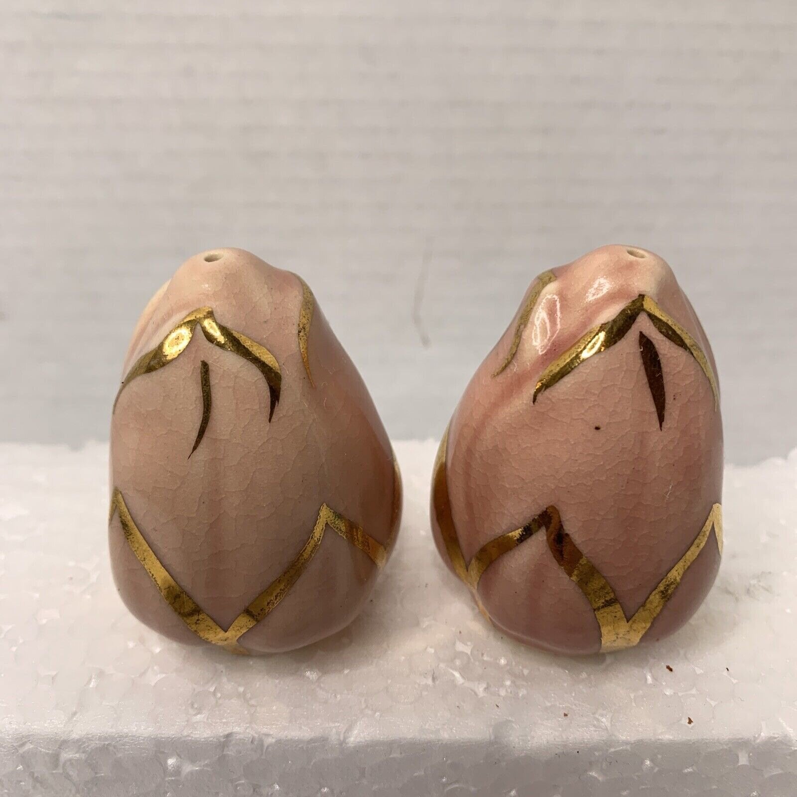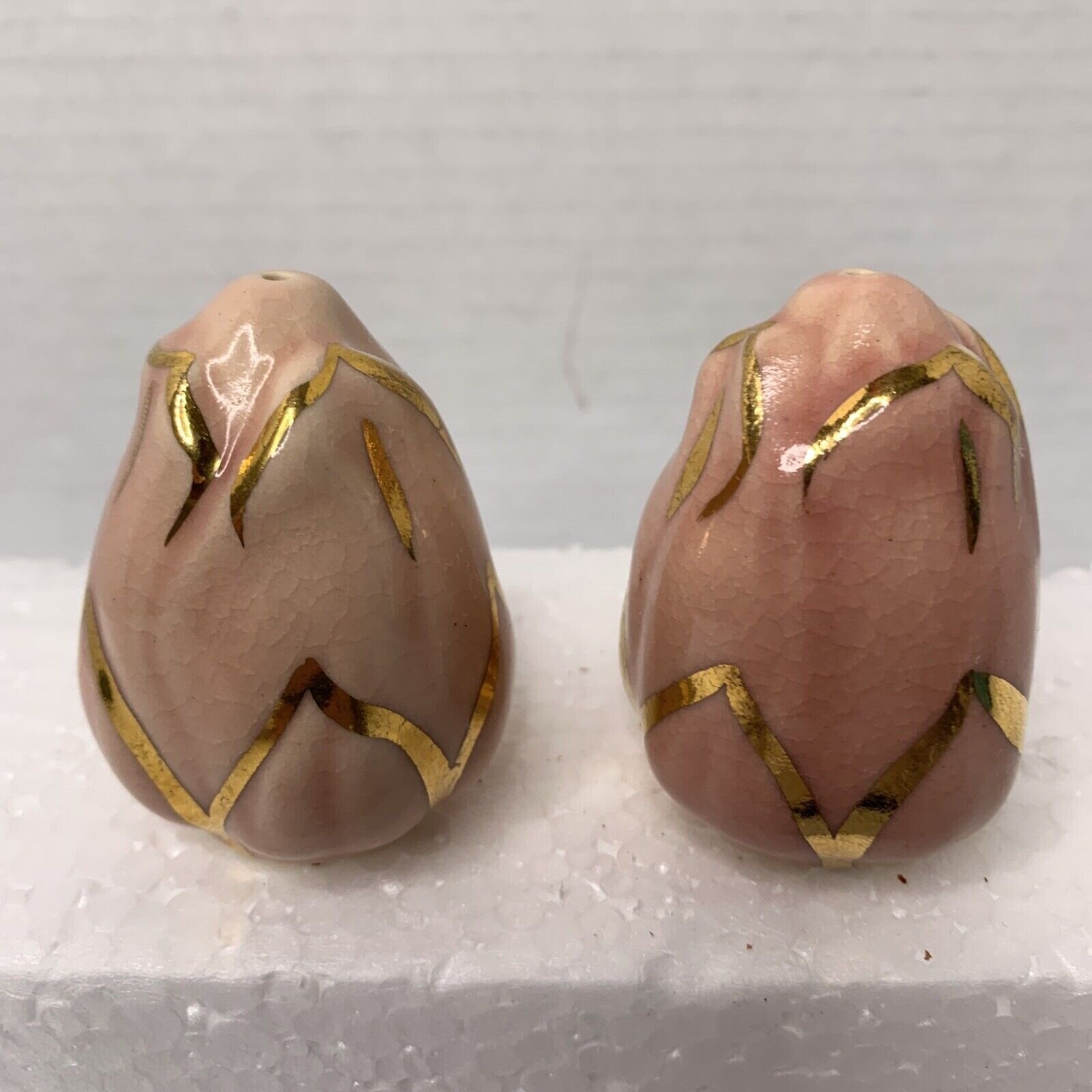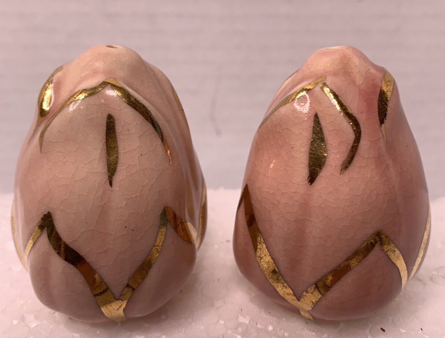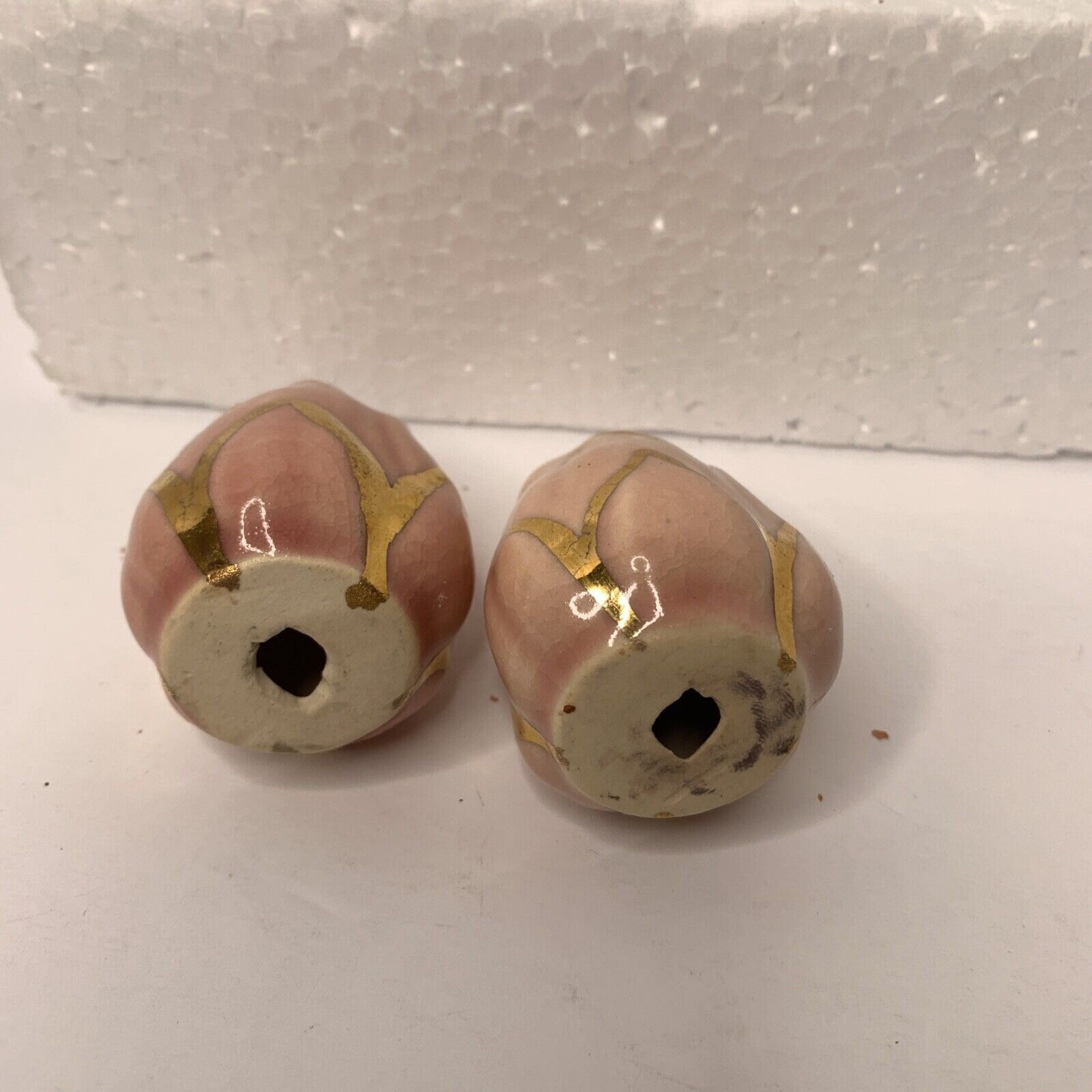 Vintage Mid-Century Modern Ceramic Pink And Gold Rosebud Salt And Pepper Shakers