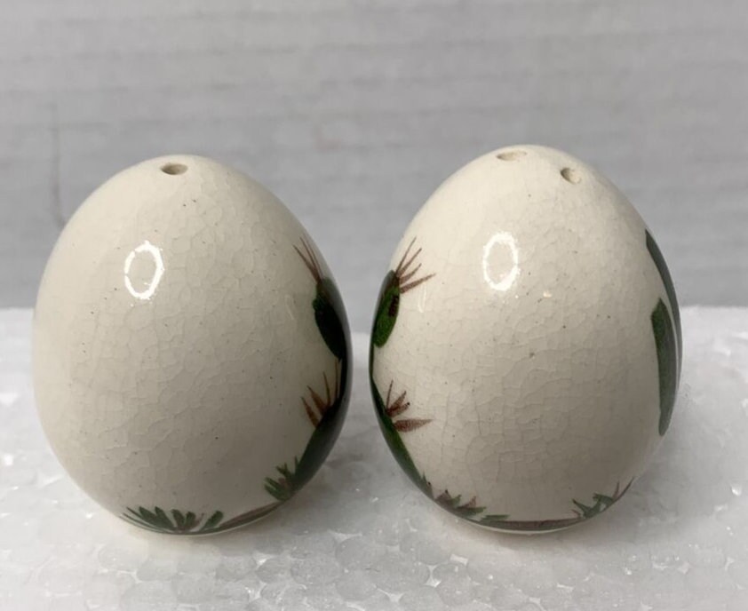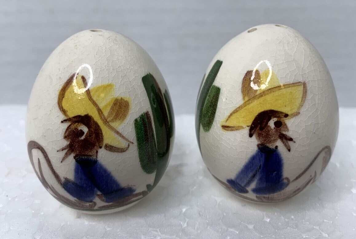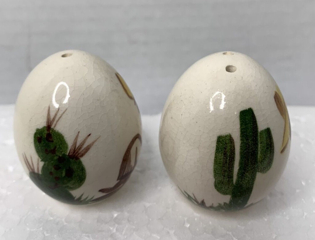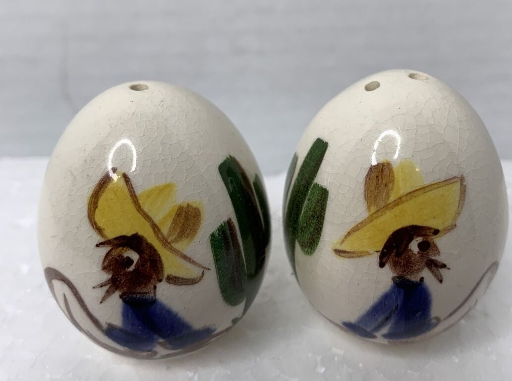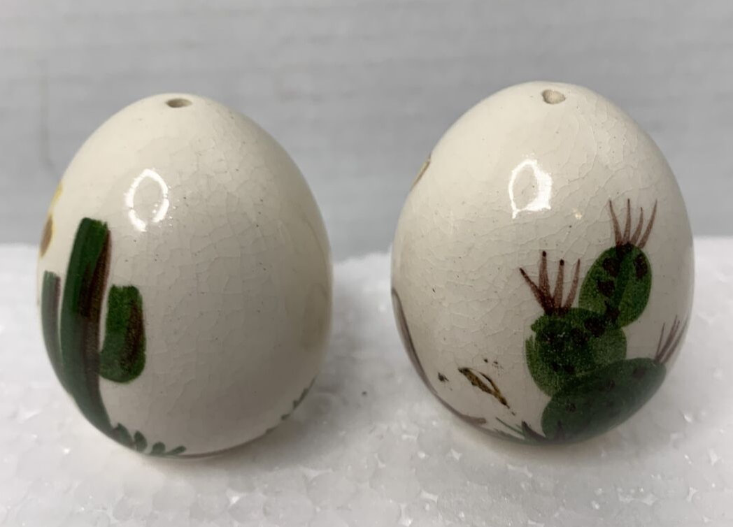 Vintage Ceramic Egg Shaped Salt and Pepper Shakers By Southwest Desert Folk Art