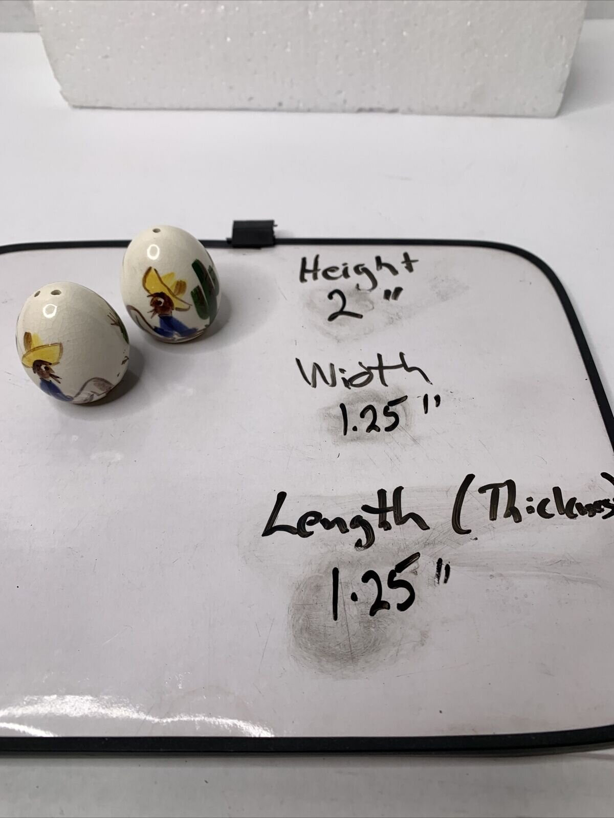 Southwest-themed shakers with a figure wearing a sombrero on each. It would make a great addition to your collection or your southwest-style tablescape!