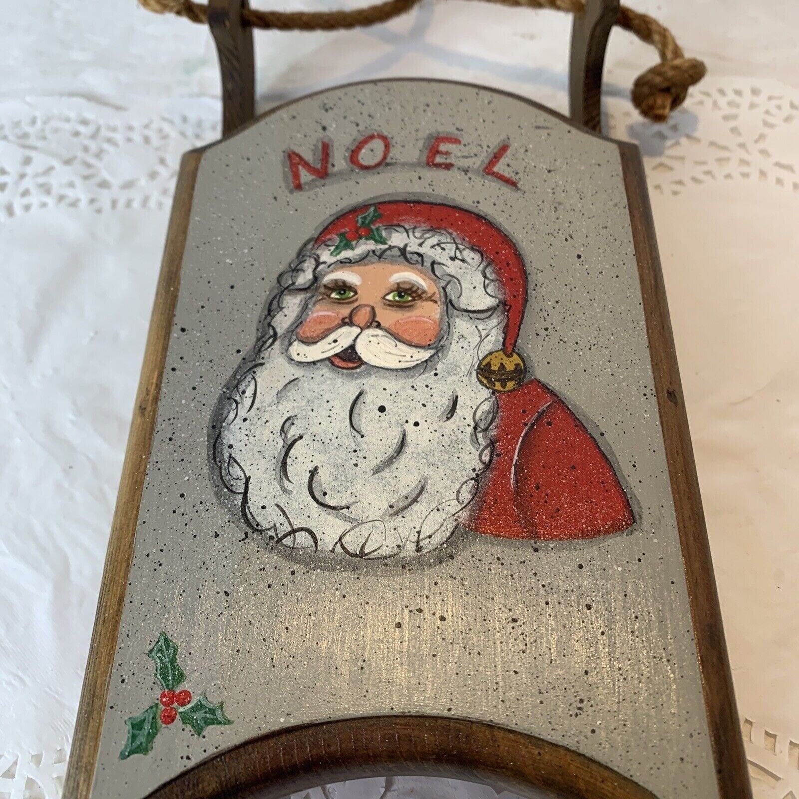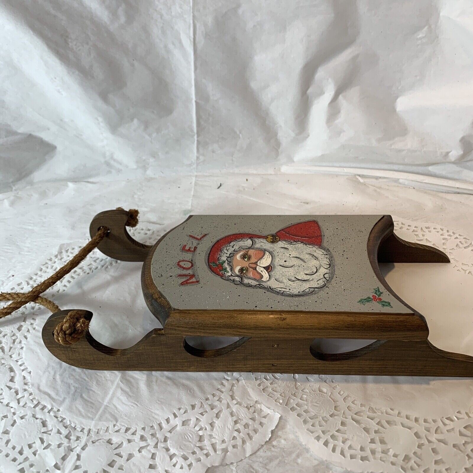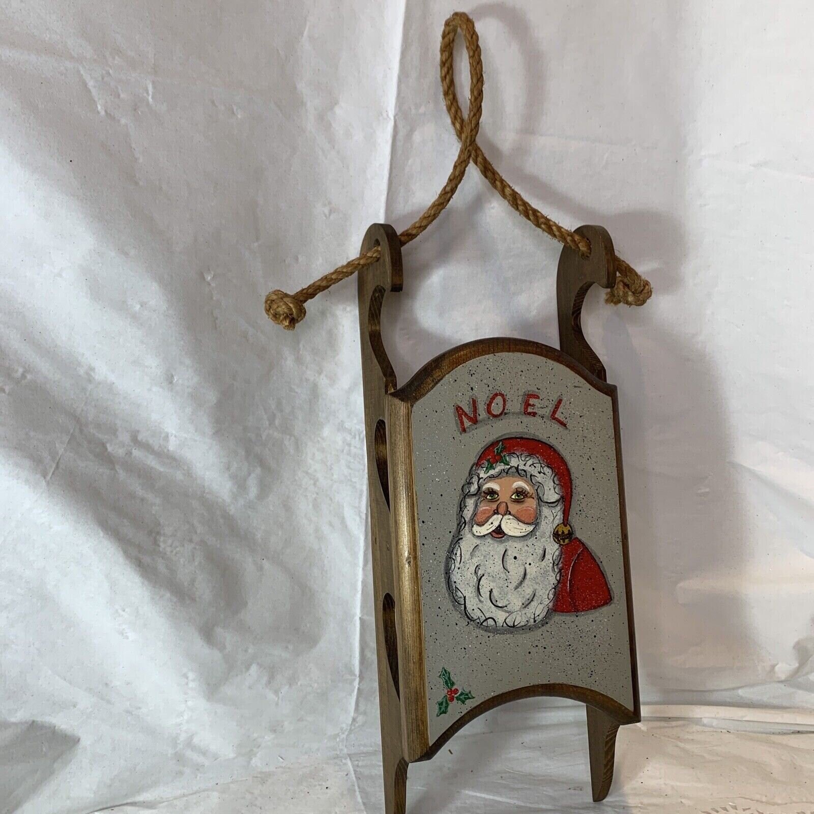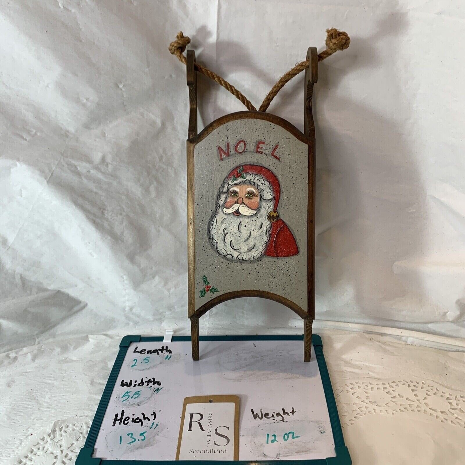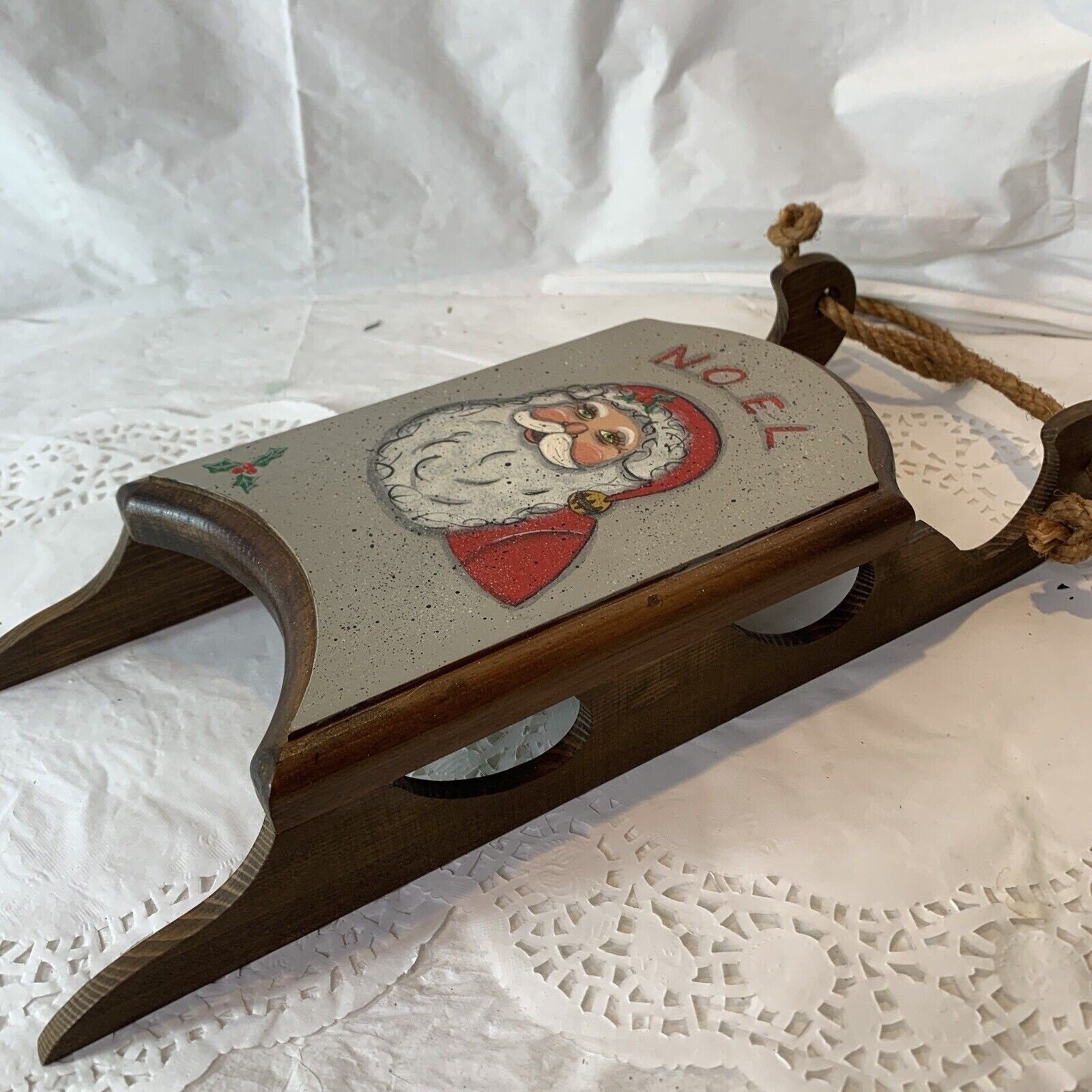 Vintage Handmade Wooden Sled Santa Wall Hanging
