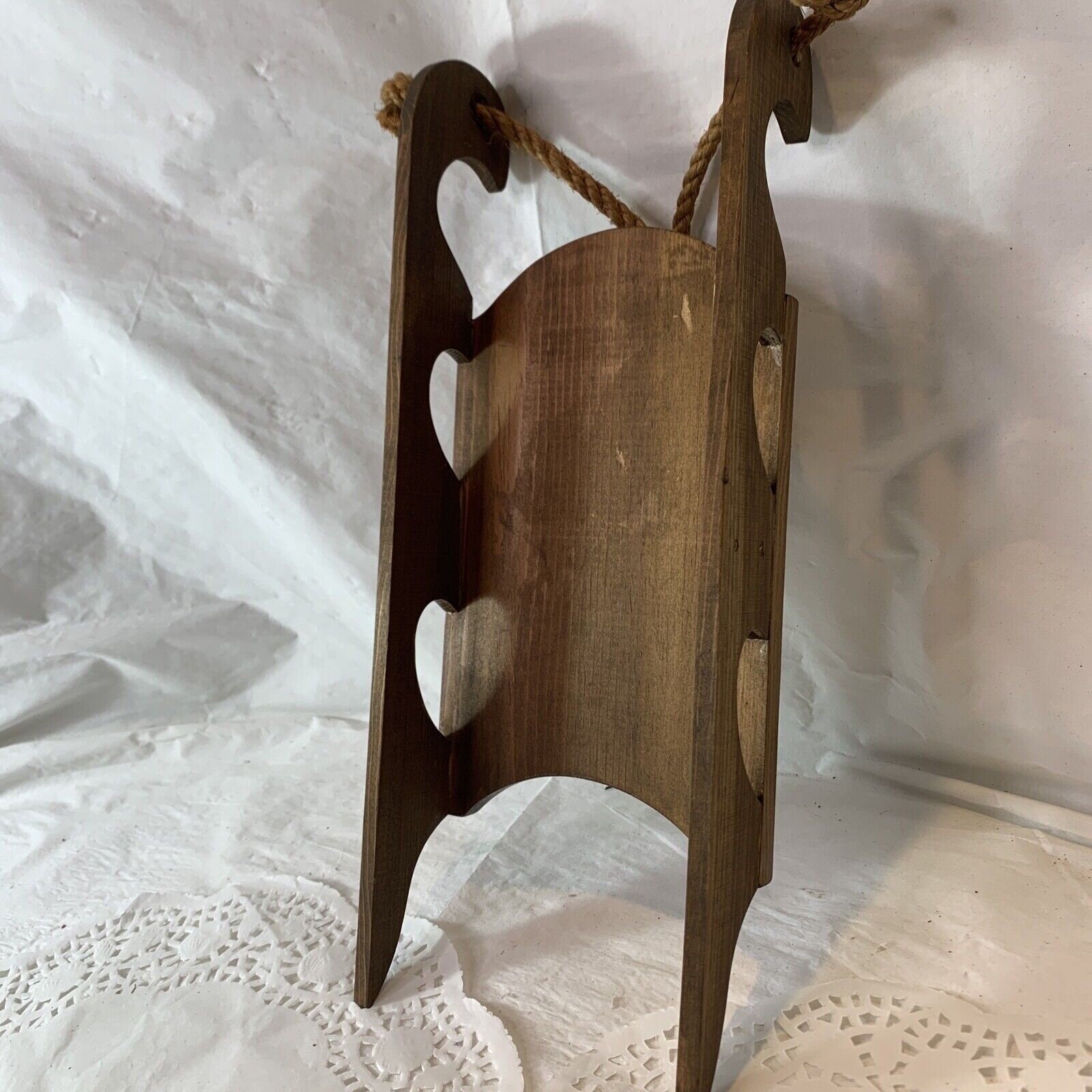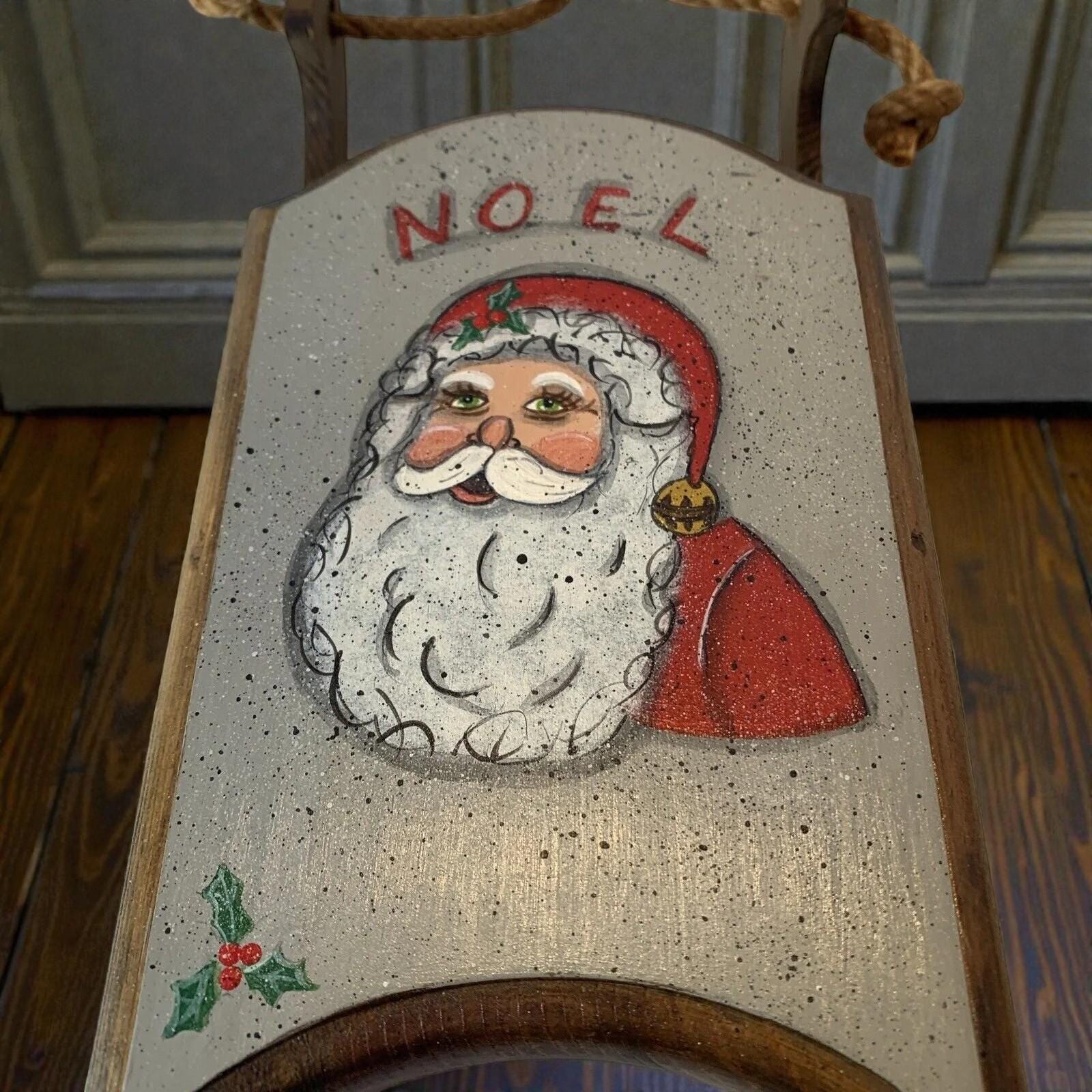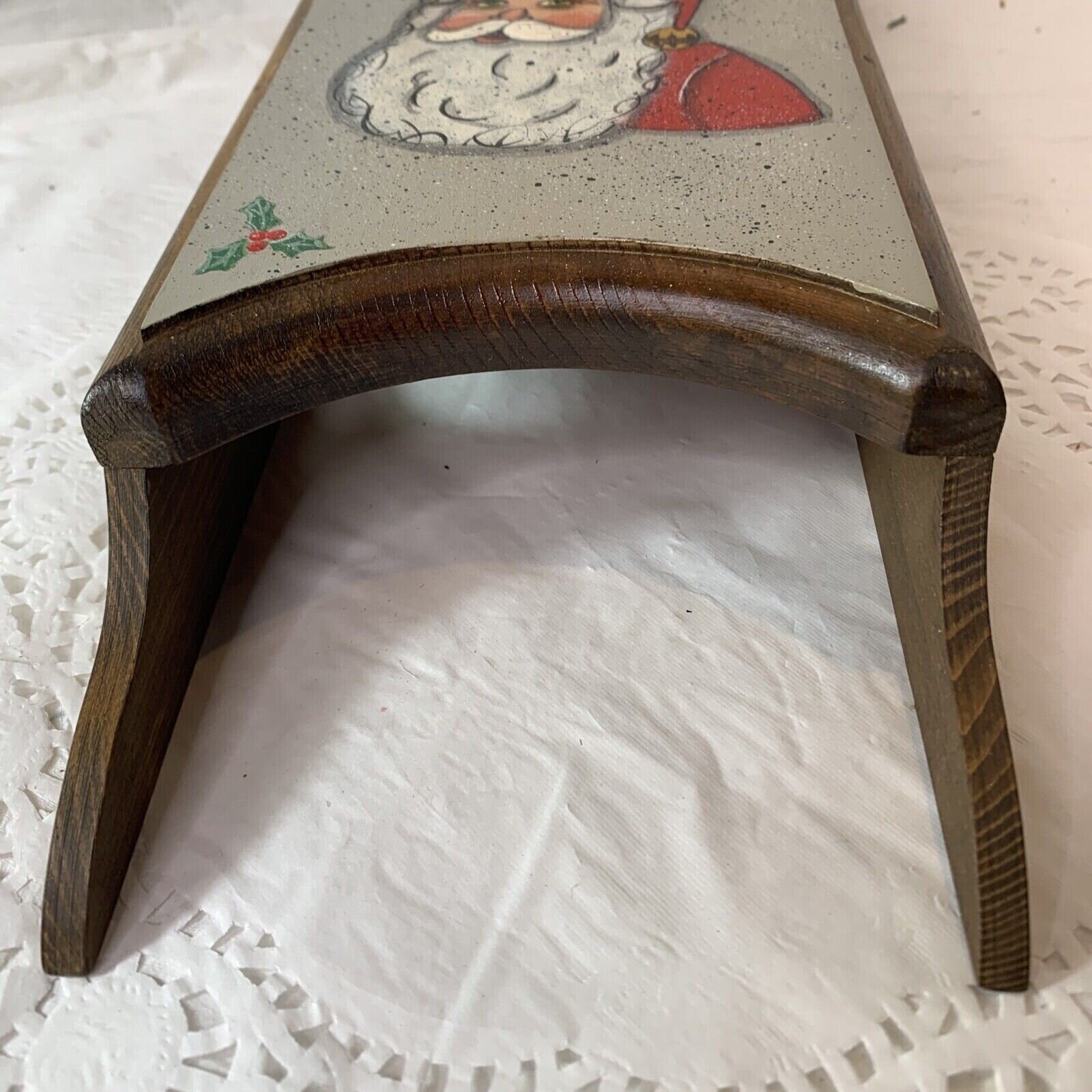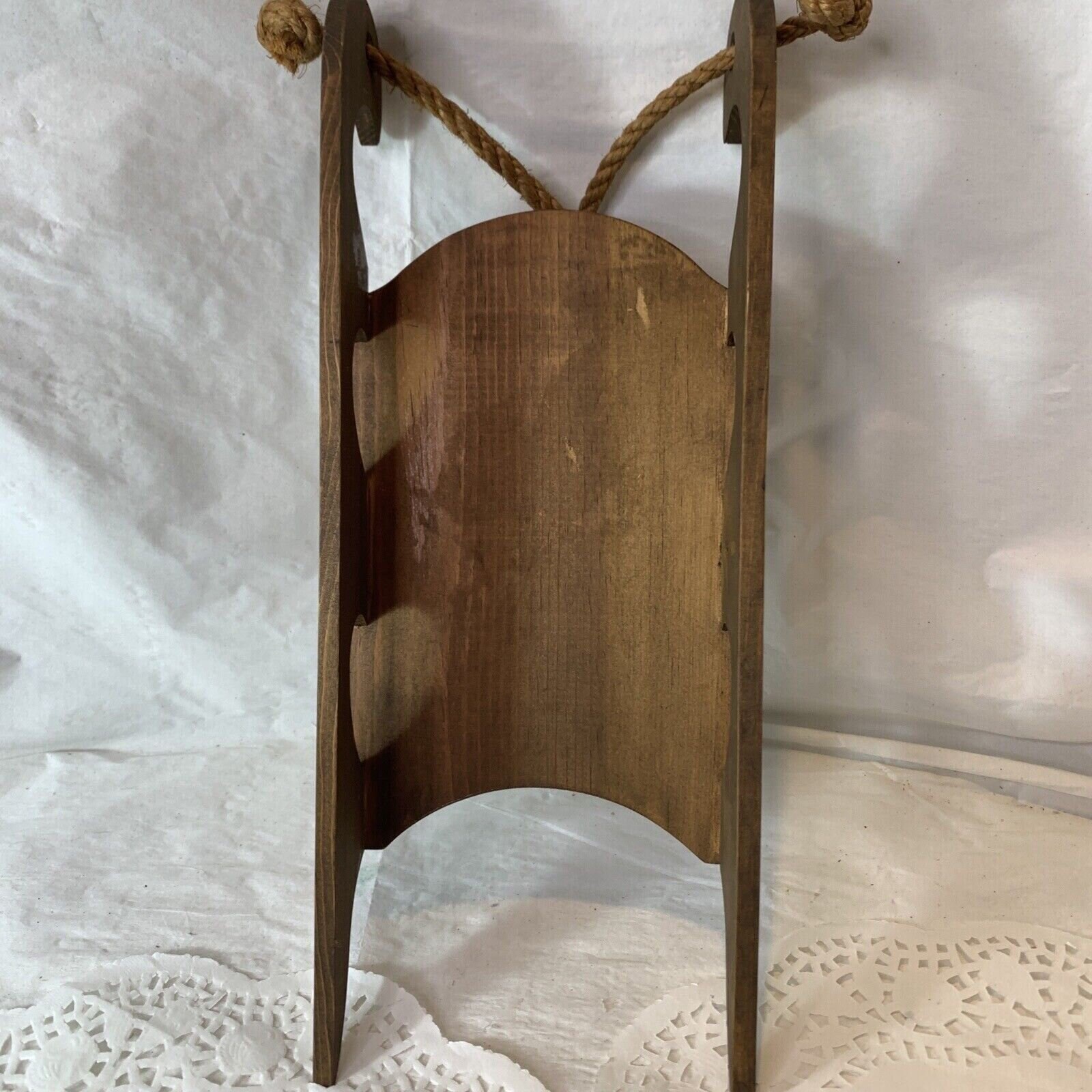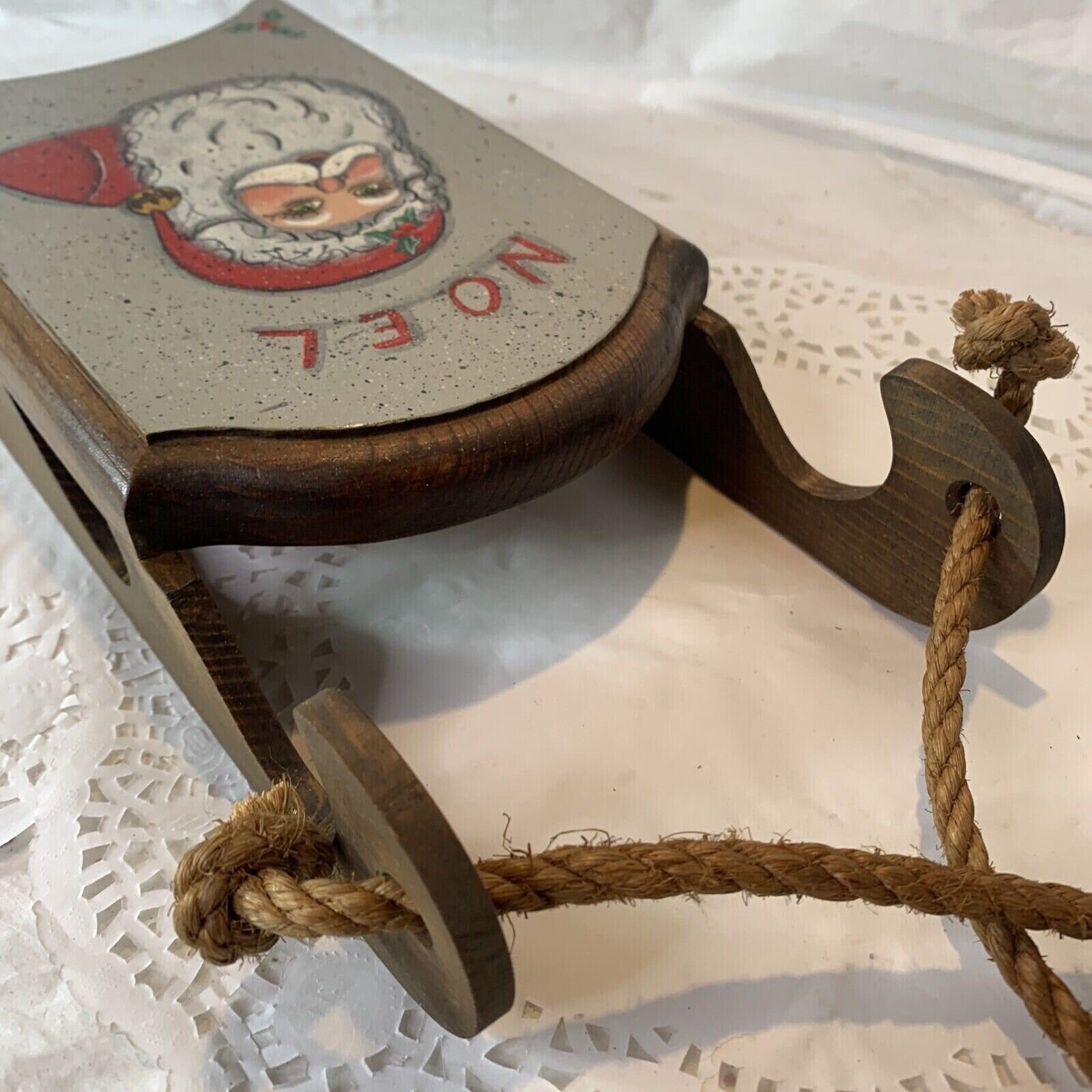 Vintage Handmade Wooden Sled Santa Wall Hanging