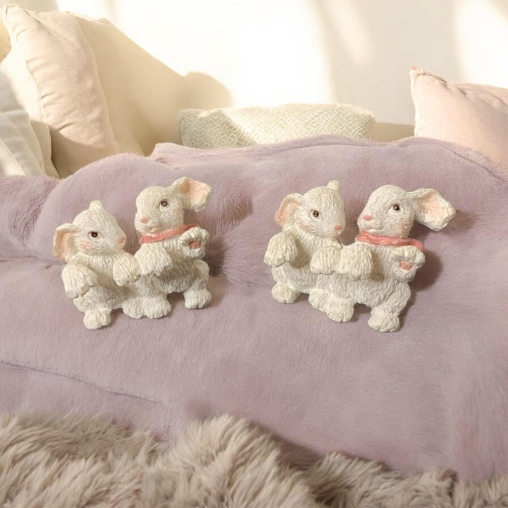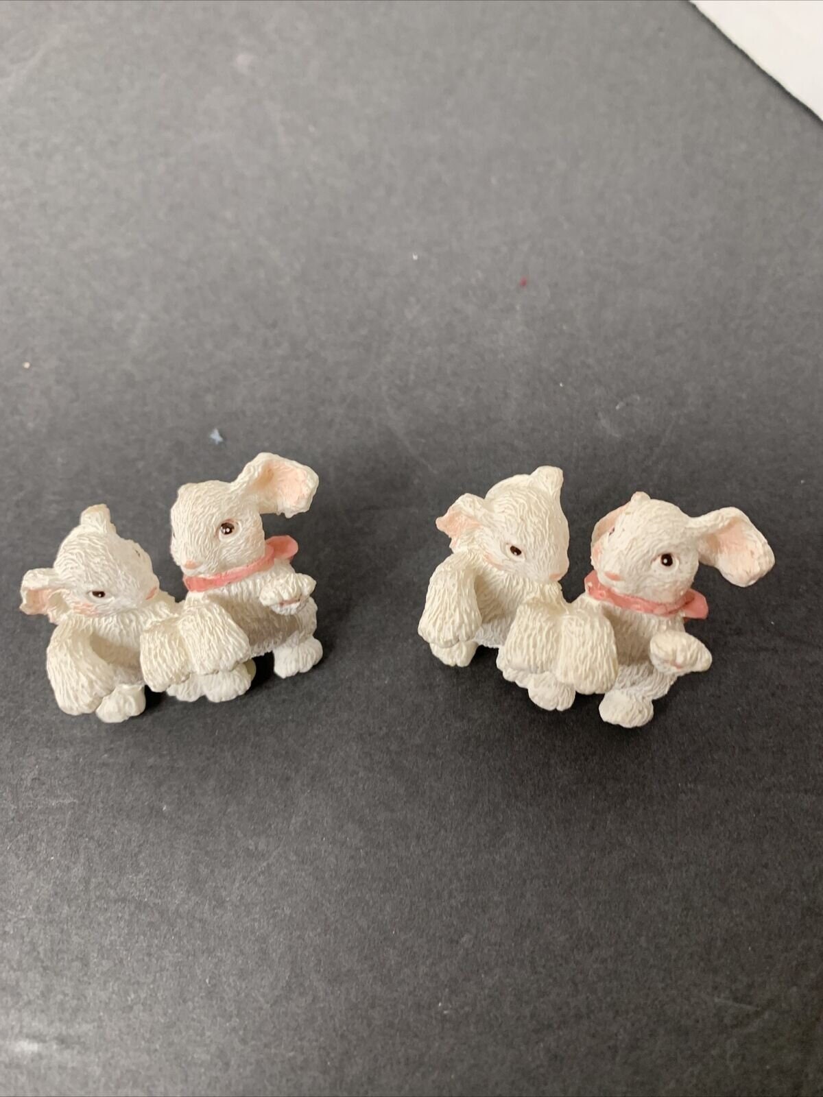 Vintage Miniature Pair Of White Bunny Rabbits Figurines Lot of 2