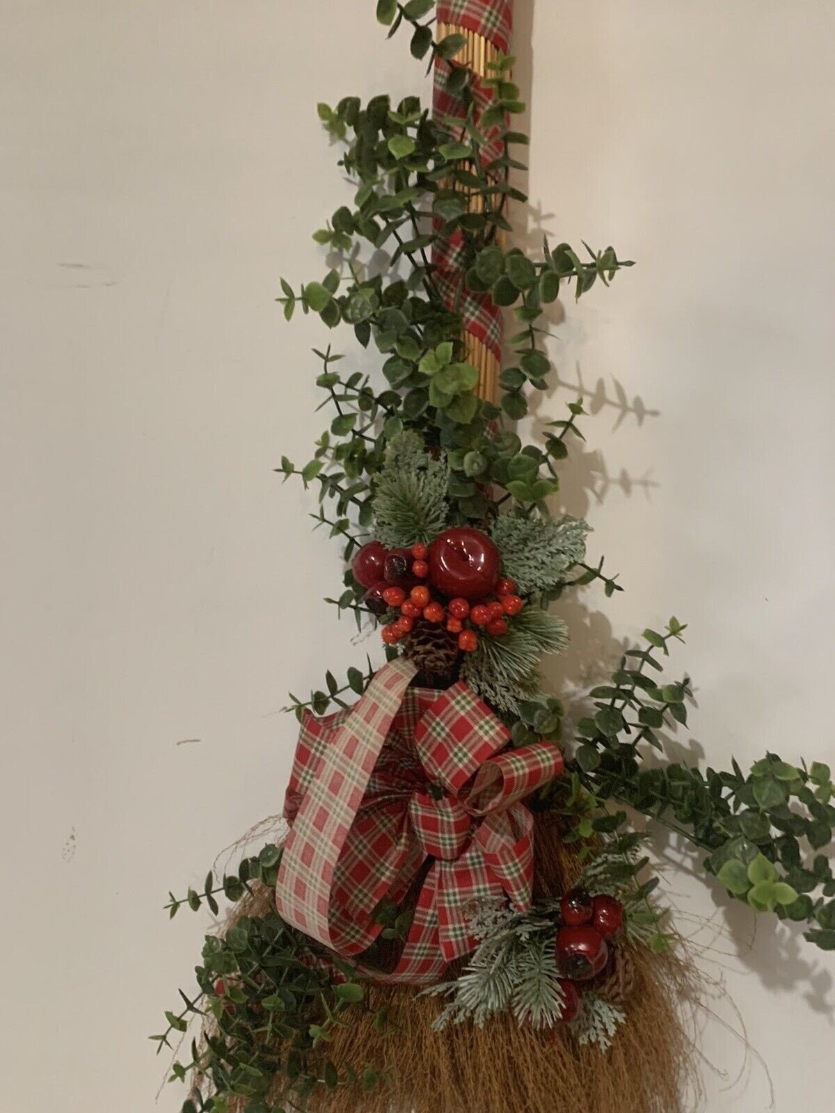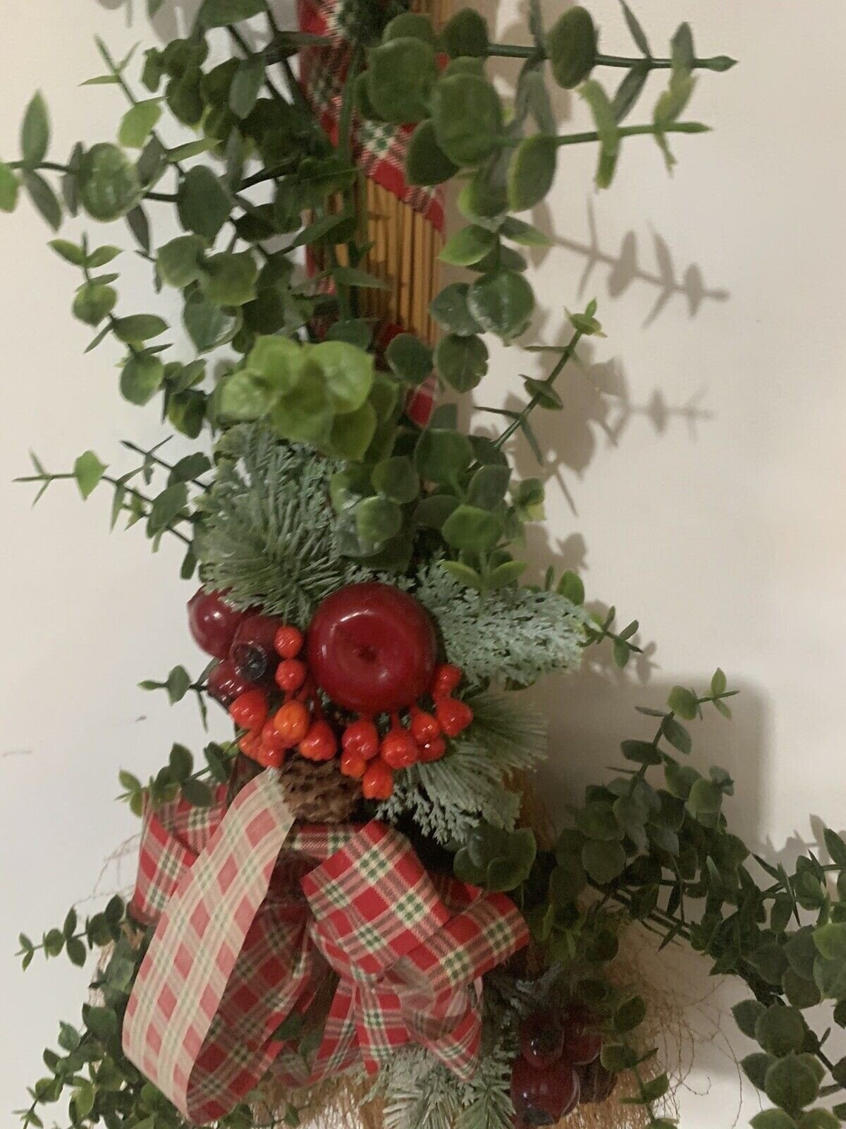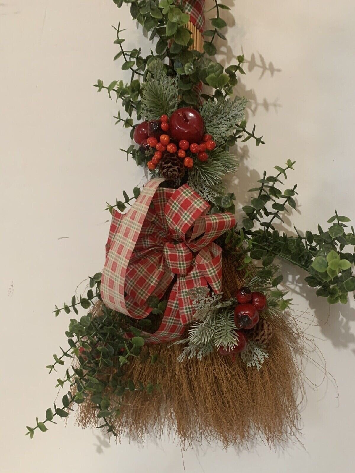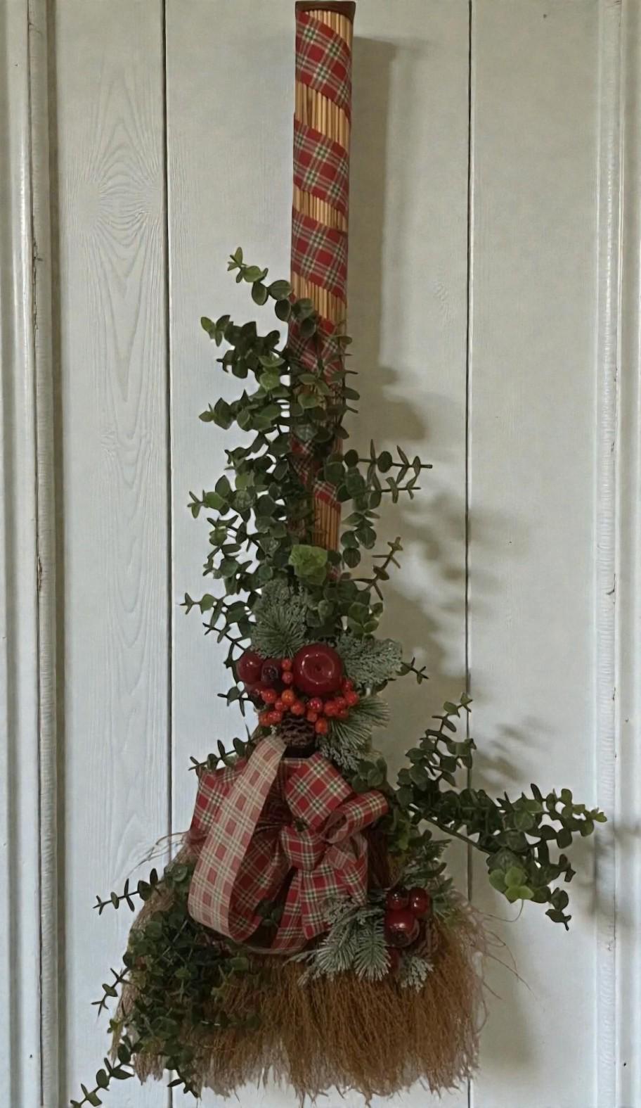 Vintage Christmas Broom Wall or Door Decoration Wreath 32 Inch Tall Handmade