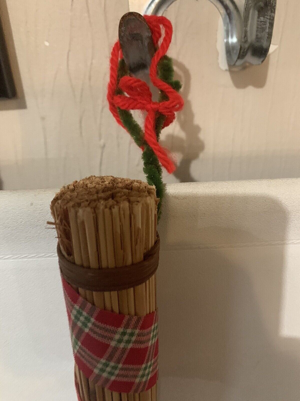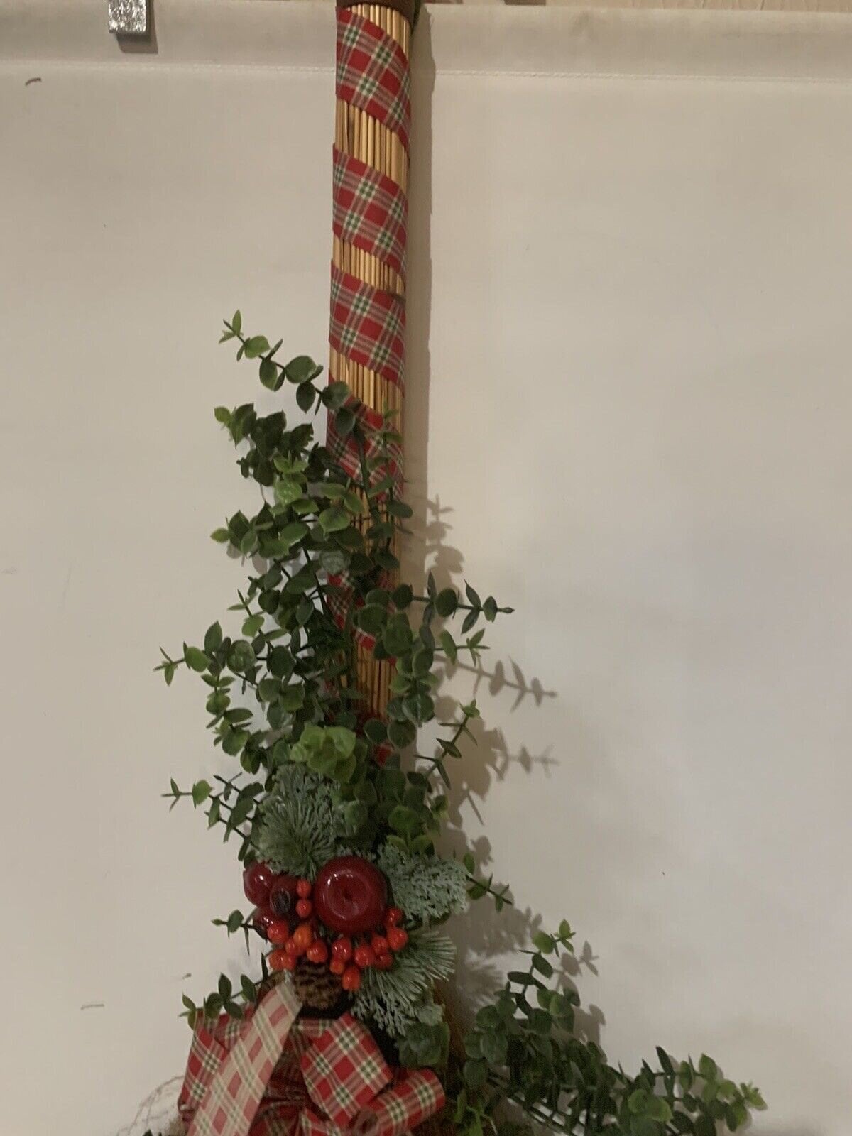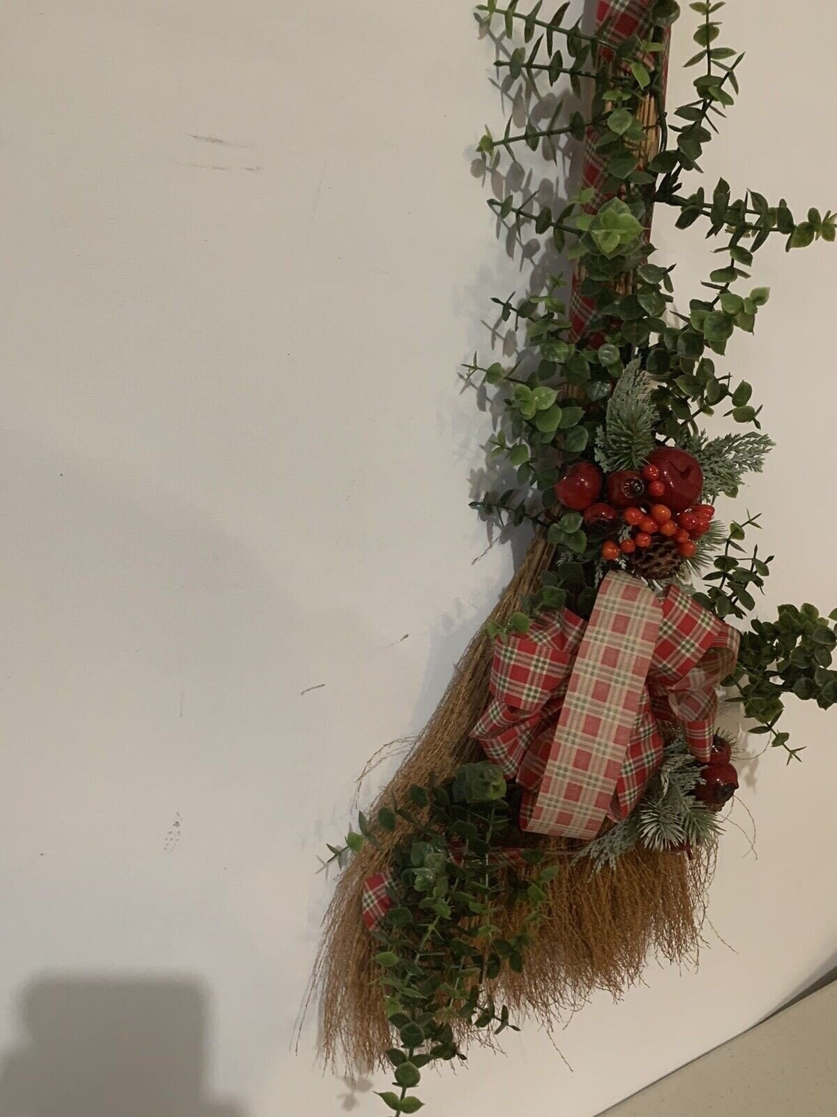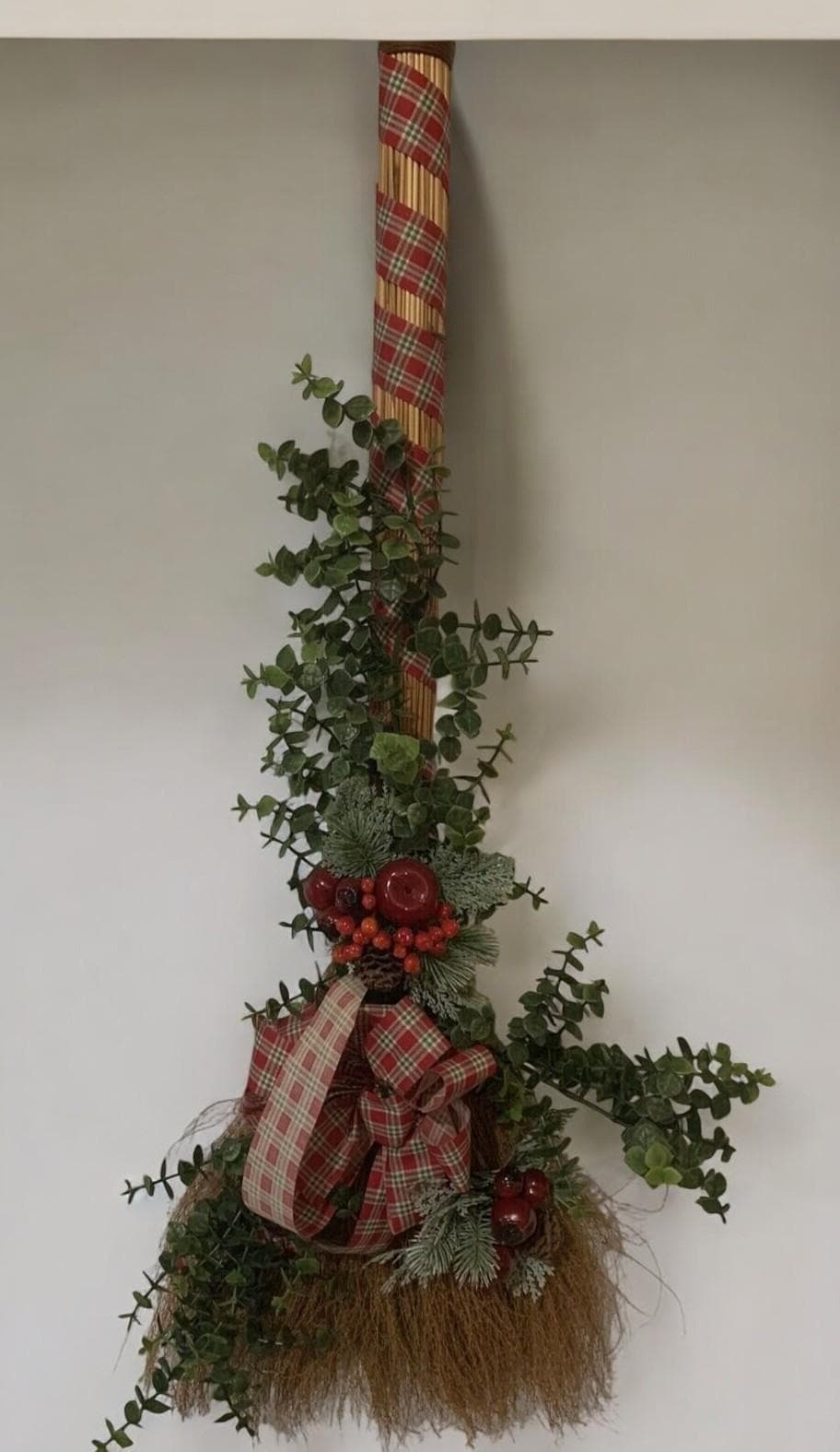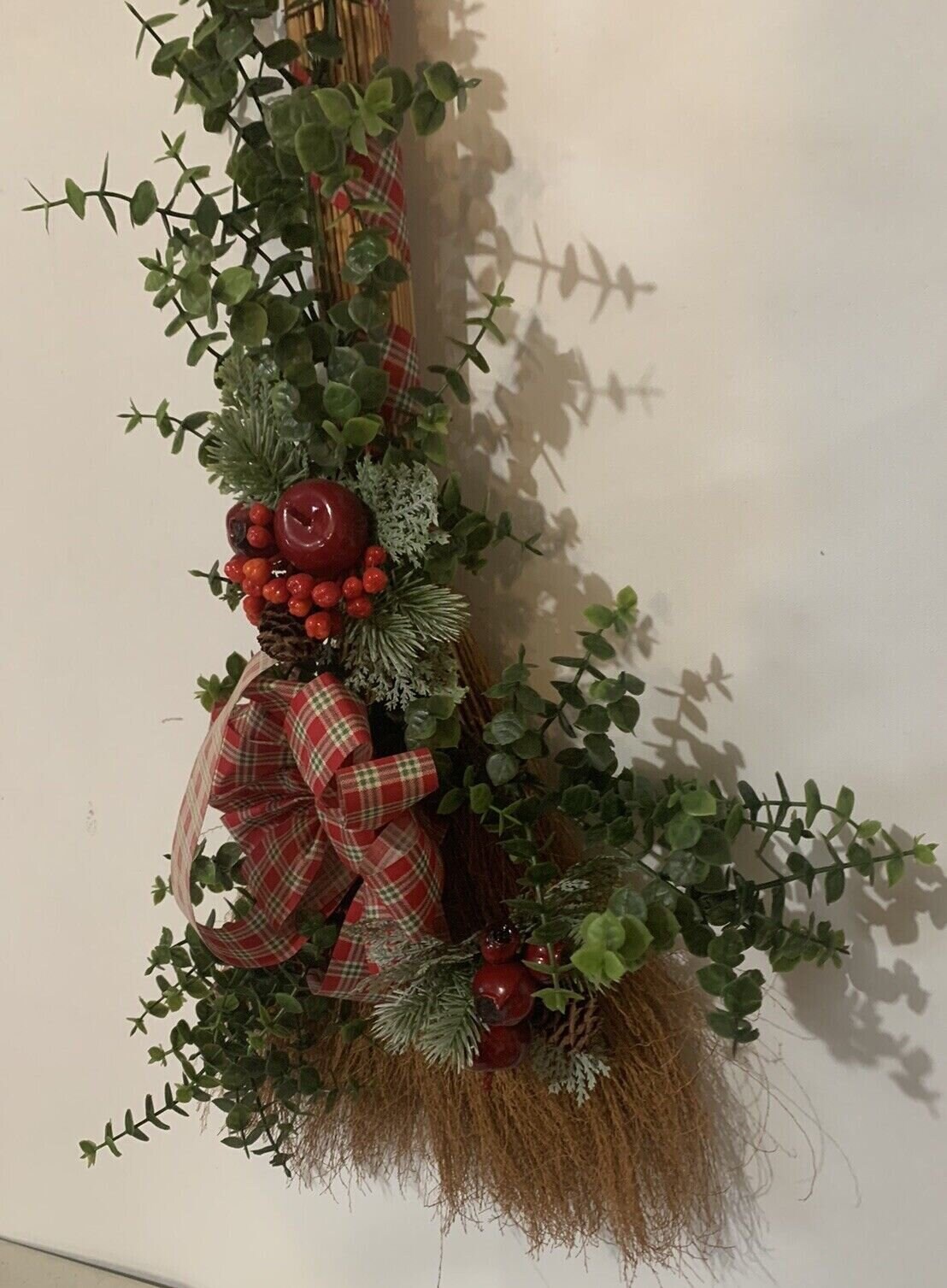 Vintage Christmas Broom Wall or Door Decoration Wreath 32 Inch Tall Handmade