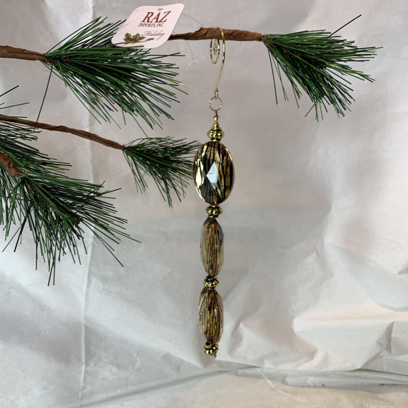 New Tiger Stripe Dangle Beads Christmas Ornament With Chrome Spiral By Raz Imports