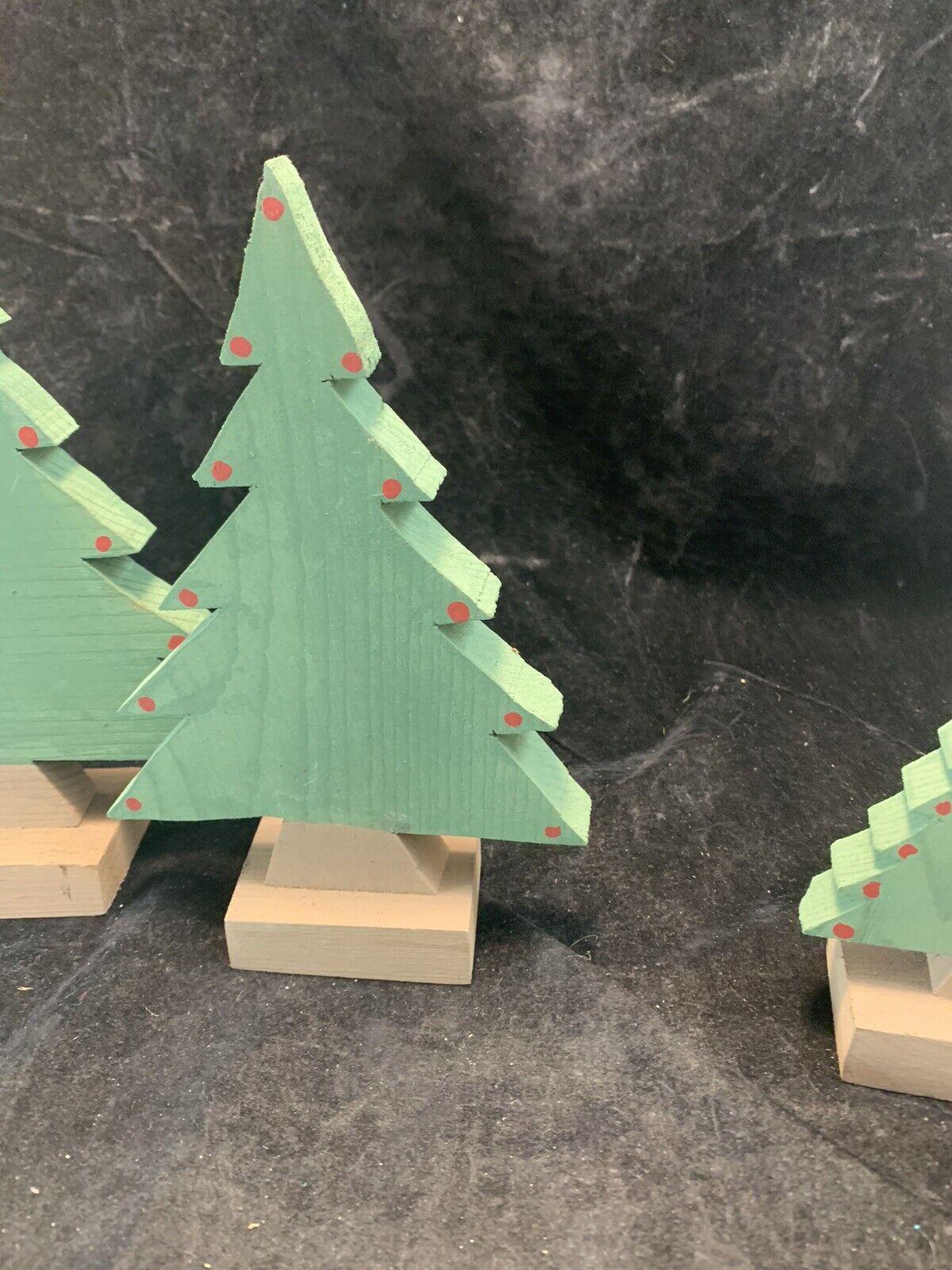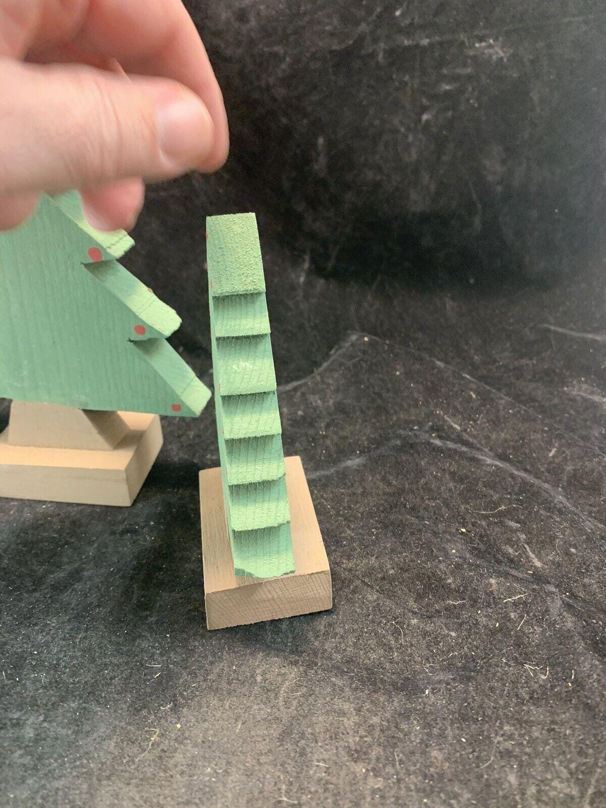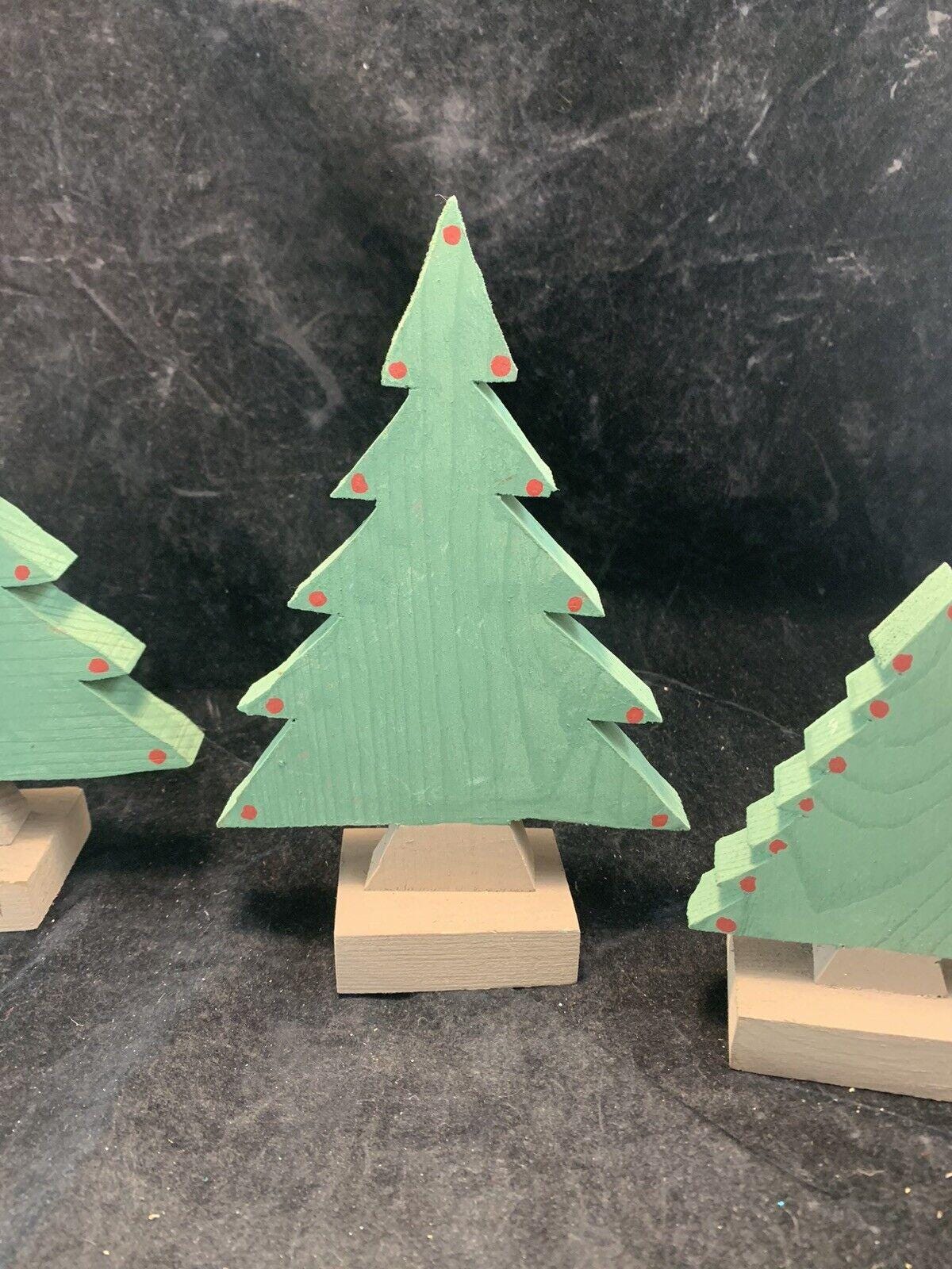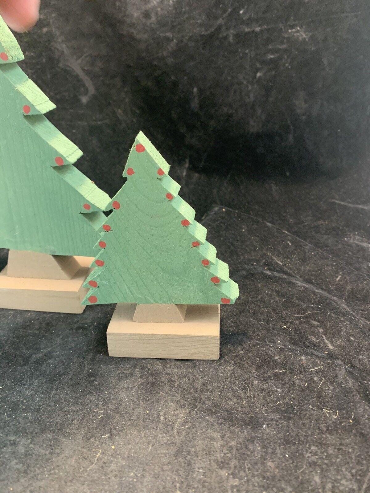 Vintage Handmade Wood Christmas Trees Set Of 3 For Village Display