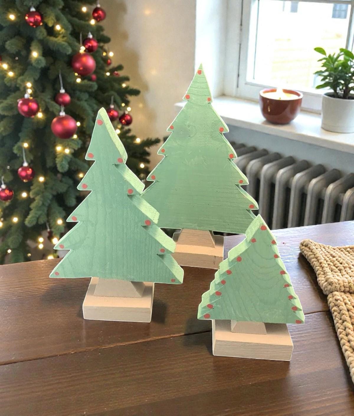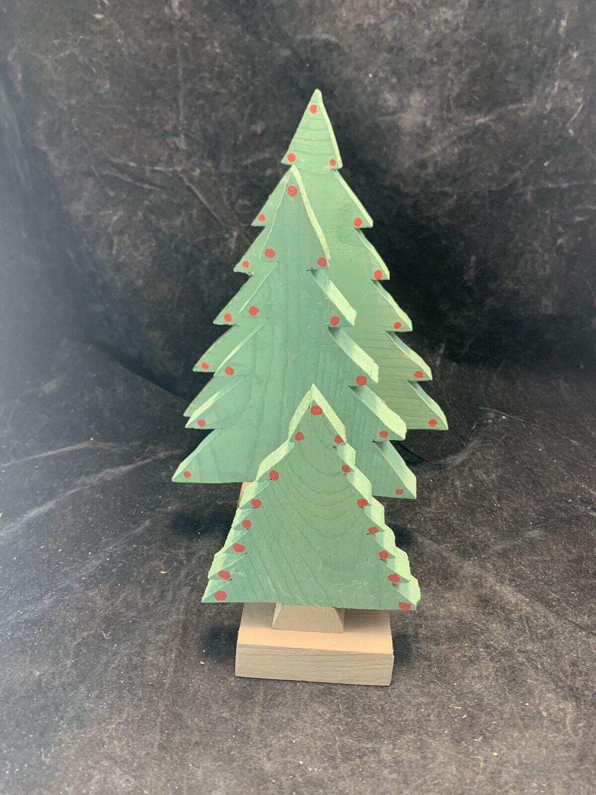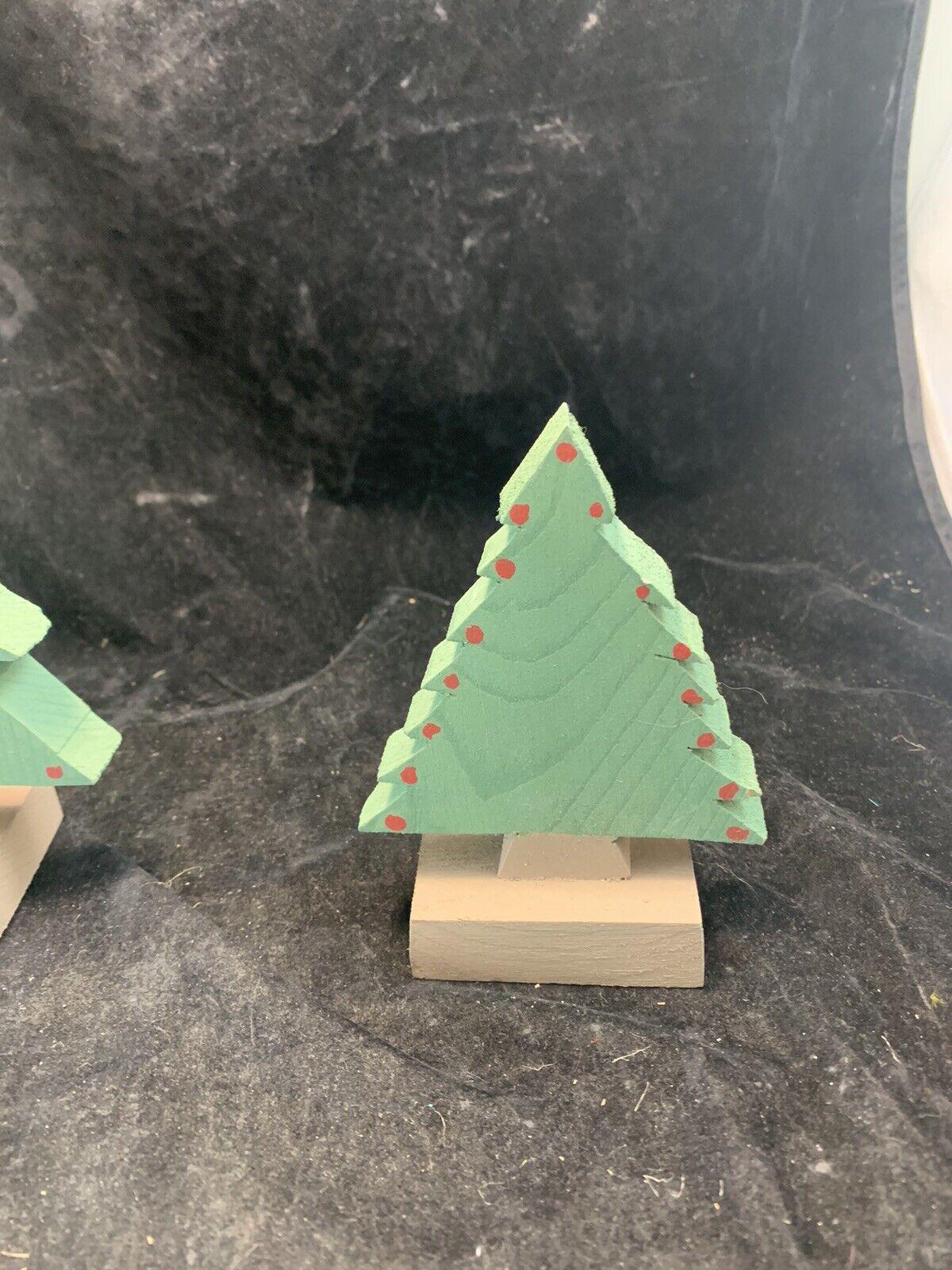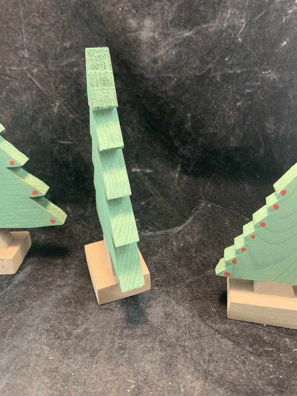 Vintage Handmade Wood Christmas Trees Set Of 3 For Village Display