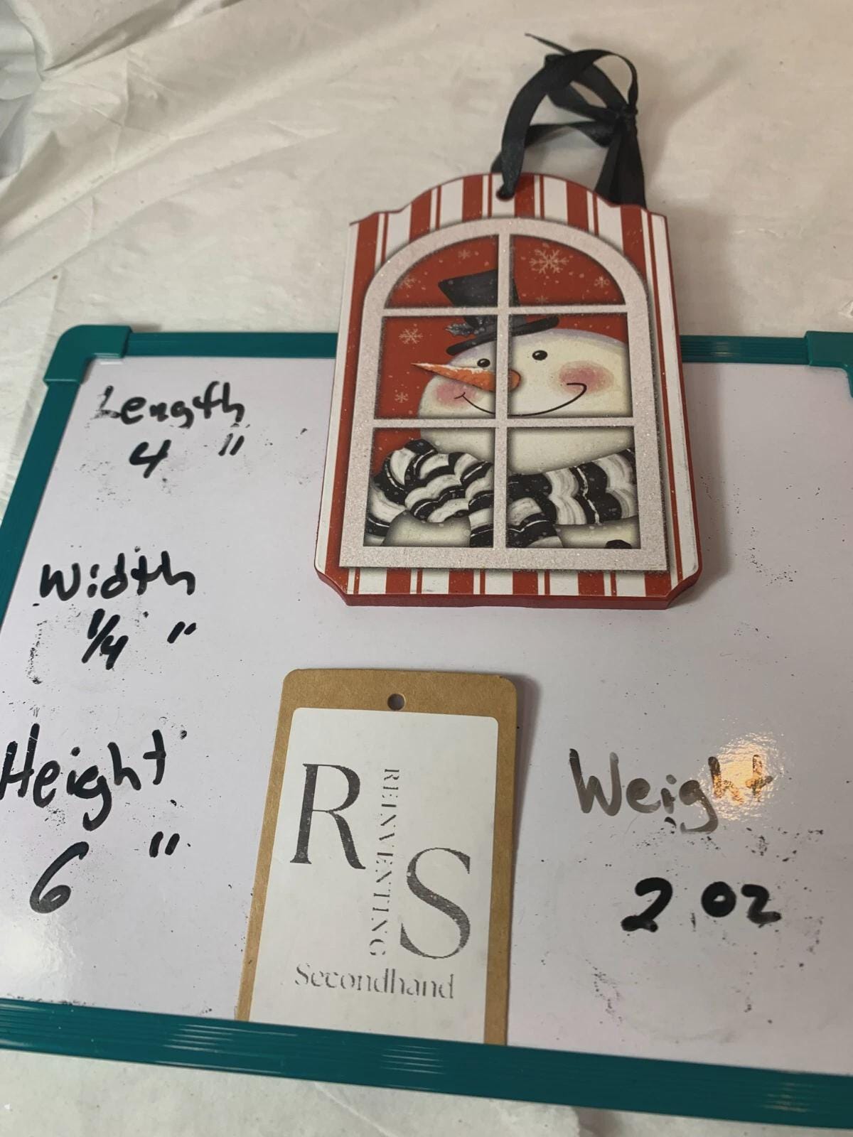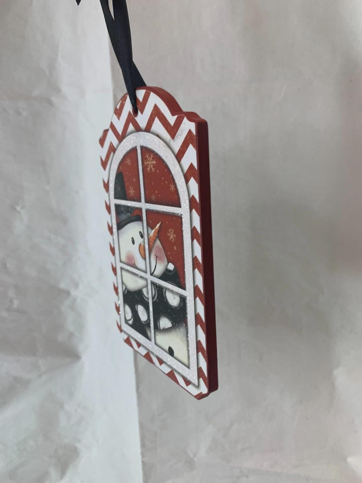 ~Snowman at the window with a red-striped background (one available)