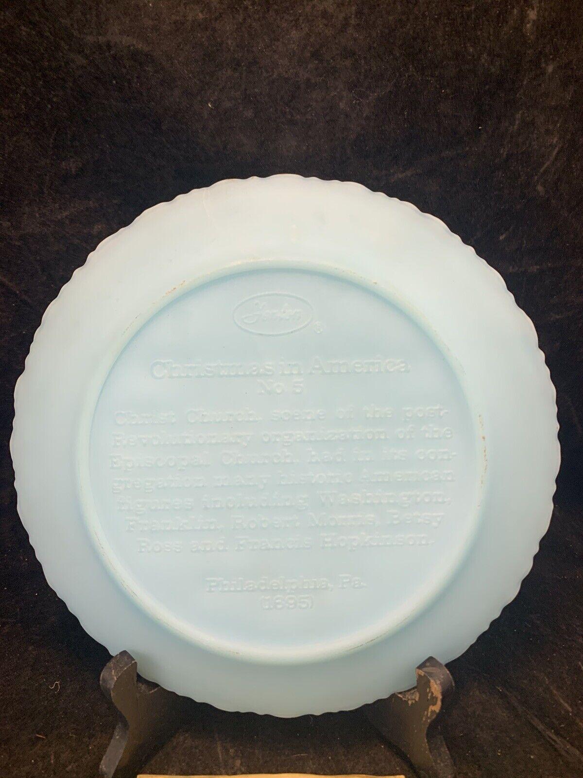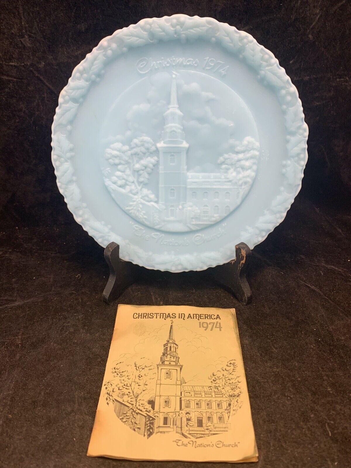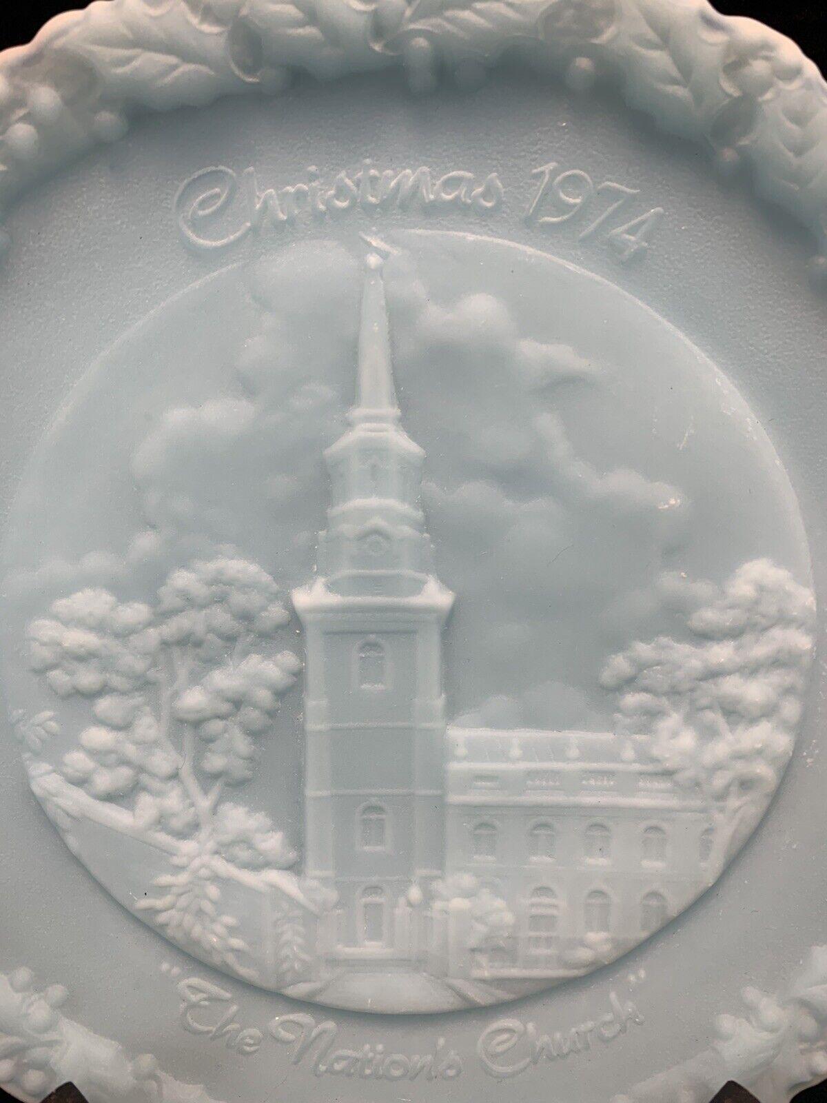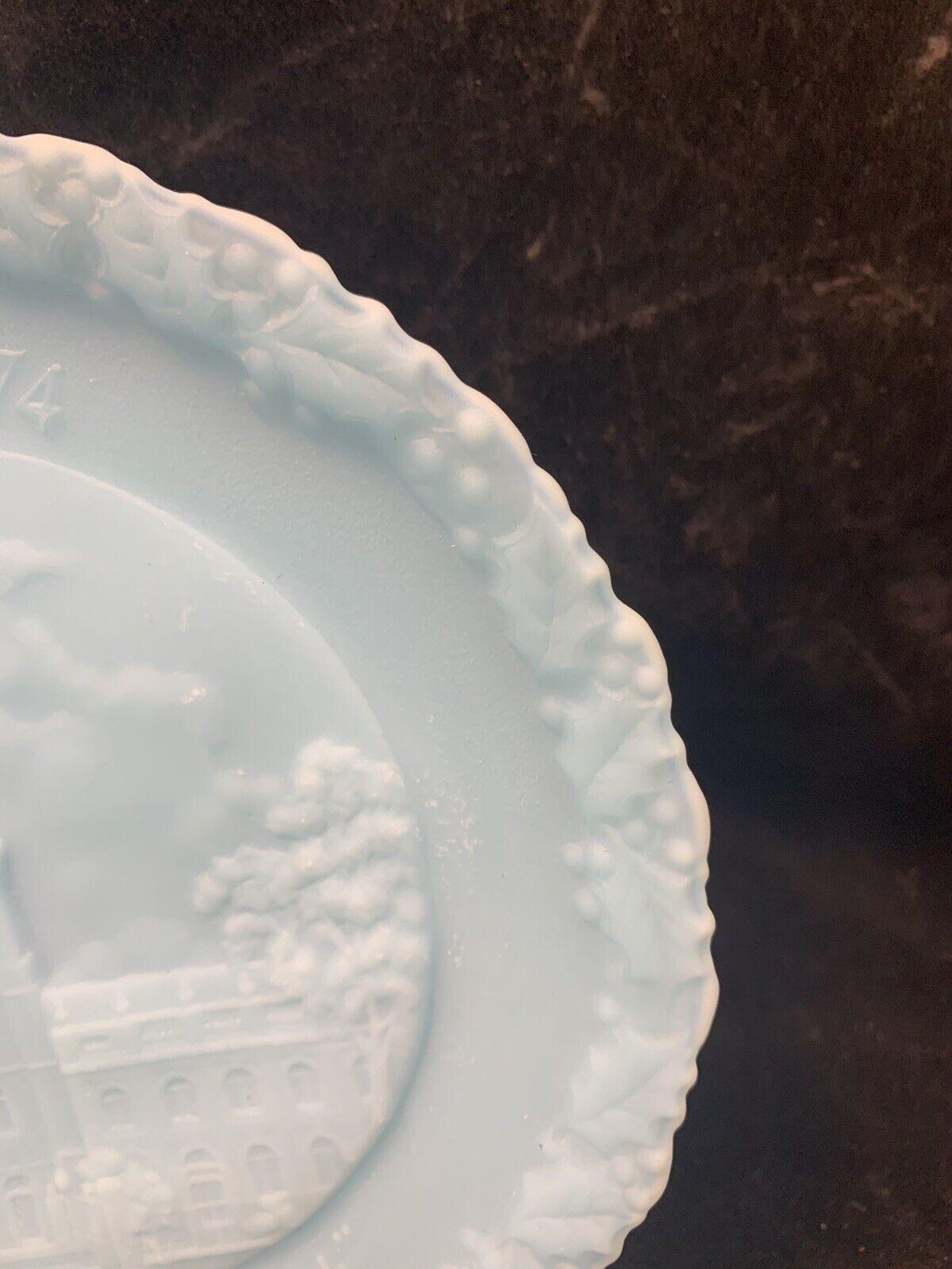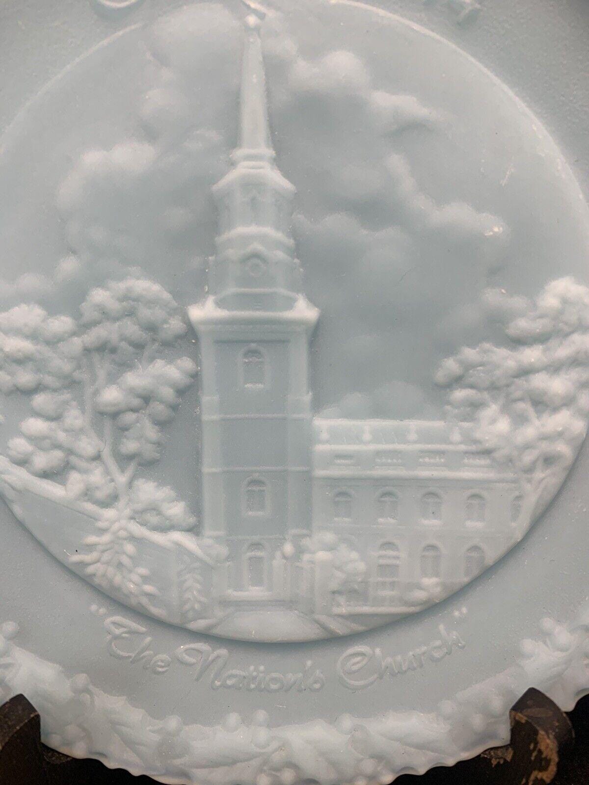 Vintage Fenton Blue Milk Glass Christmas in America #4 The Nation's Church Collector Plate - Made in the USA