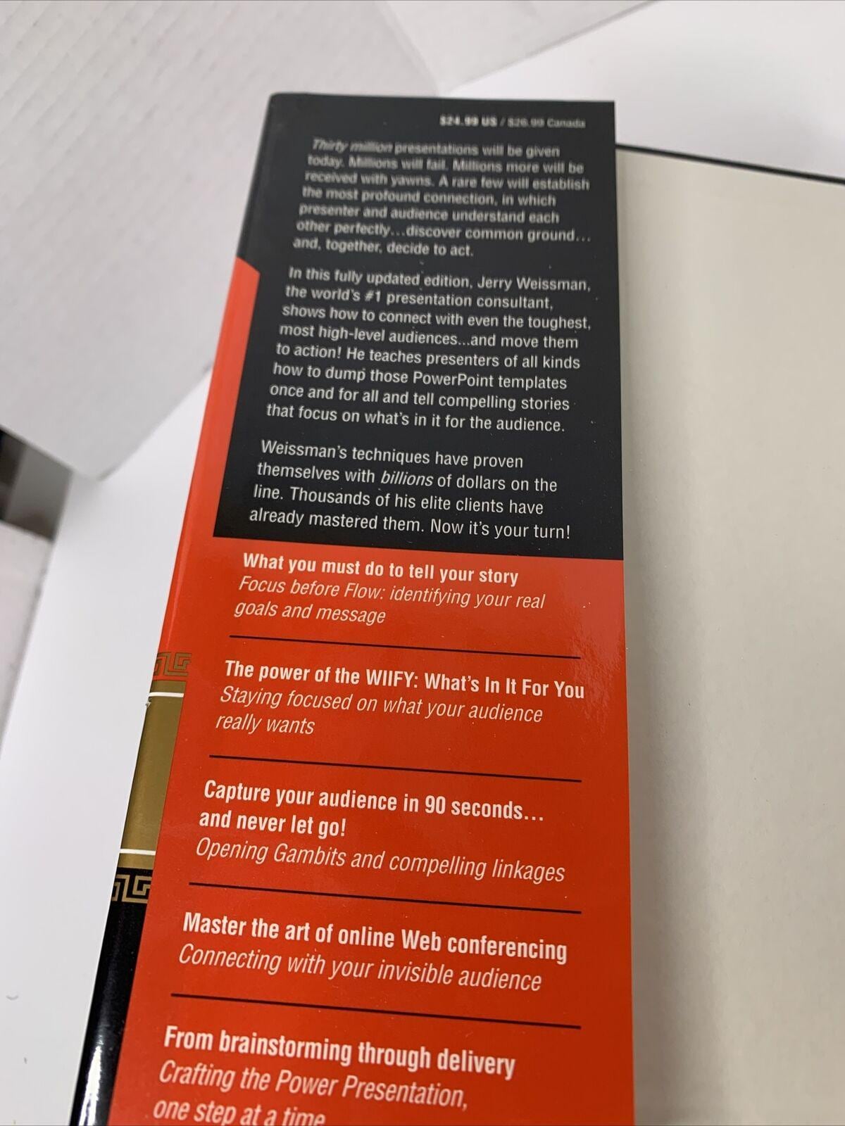 Thirty million presentations will be given today. Millions will fail. Millions more will be received with yawns. A rare few will establish the most profound connection, in which the presenter and audience understand each other perfectly, discover common ground, and, together, decide to act. In this fully updated edition, Jerry Weissman, the world's #1 presentation consultant, shows how to connect with even the most challenging, high-level audiences...and move them to the action! He teaches presenters of all kinds how to dump those PowerPoint templates once and for all and tell compelling stories that focus on what's in it for the audience. Weissman's techniques have proven themselves with billions of dollars on the line. Thousands of his elite clients have already mastered them. Now it's your turn! What you must do to tell your story Focus before Flow: identifying your real goals and message The power of the WIIFY: What's In It For You Staying focused on what your audience wants to Capture your audience in 90 seconds and never let go! Opening Gambits and compelling linkages Master the art of online Web conferencing Connecting with your invisible audience From brainstorming through delivery Crafting the Power Presentation, one step at a time Named by FORTUNE Magazine as a "Must-Read" "Jerry Weissman makes the challenge of producing and delivering effective presentations delightfully simple. Read it and benefit!" Tim Koogle, Founding CEO of Yahoo!, is an excellent read for everyone who has ever struggled with any aspect of our public speaking skills.
