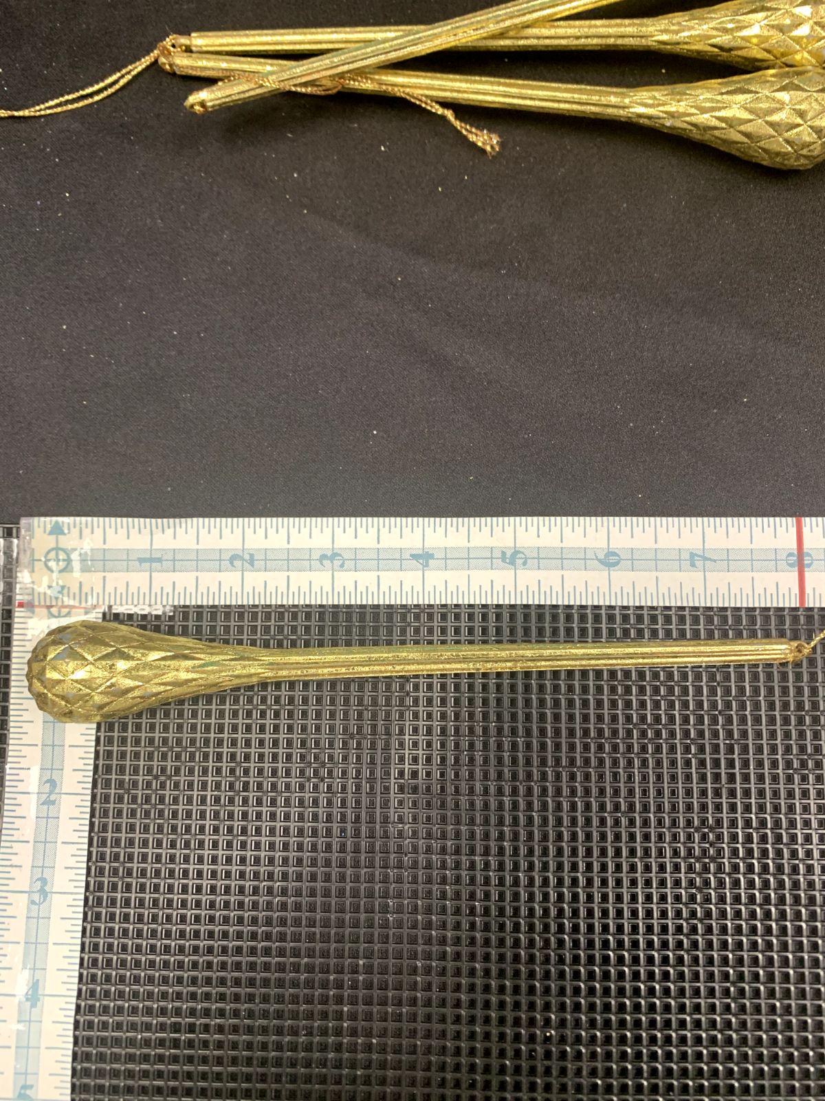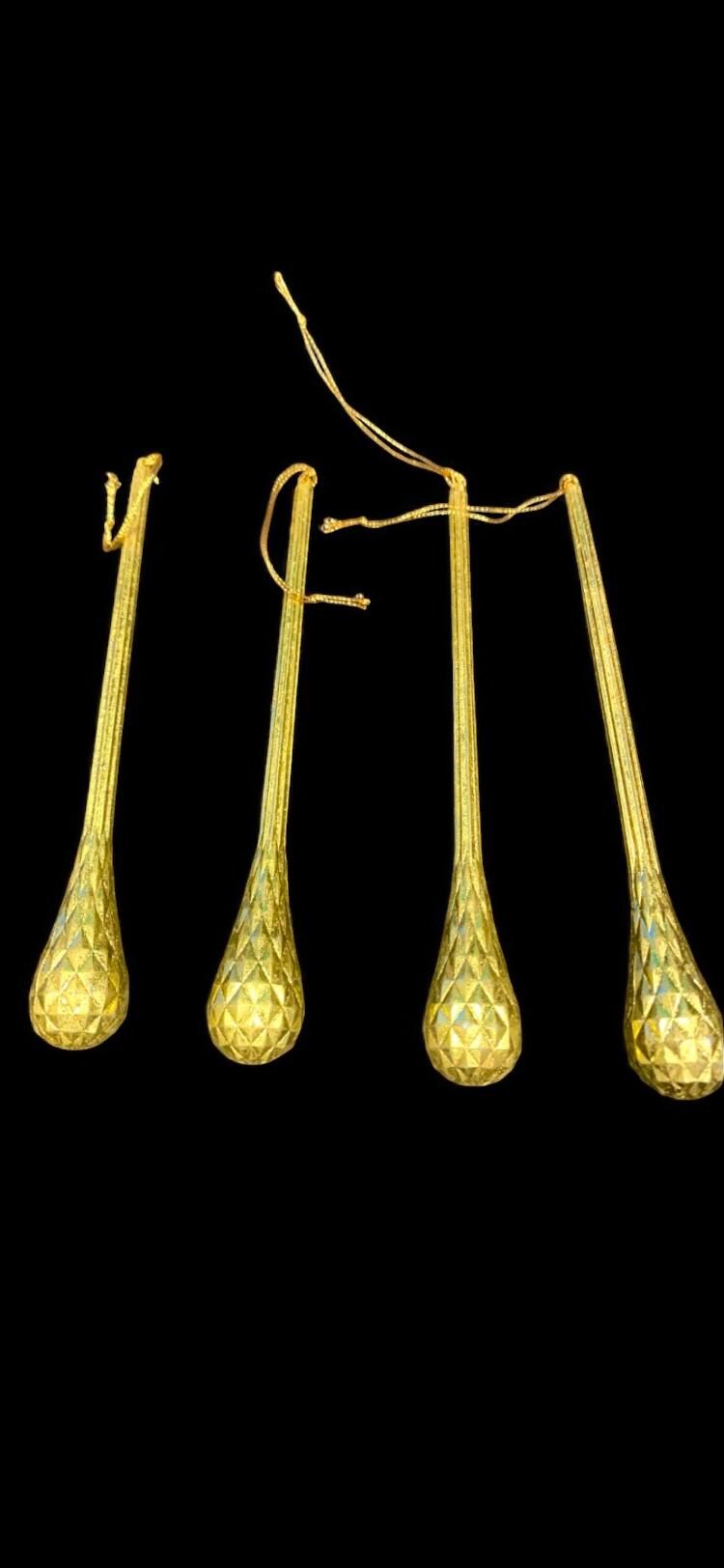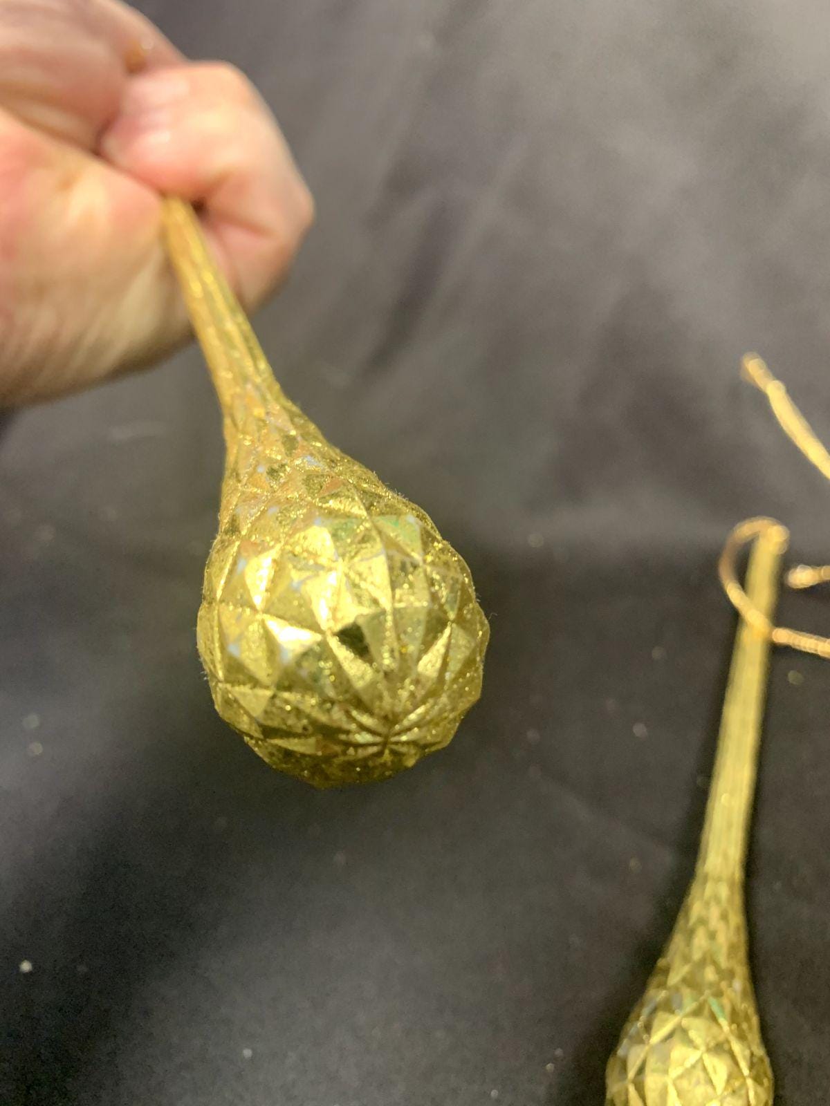 Vintage Gold Tone Plastic, 8 Inch Long Teadrop Christmas Ornaments Lot of 4