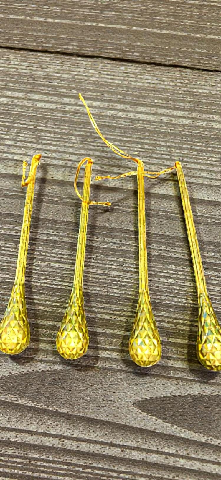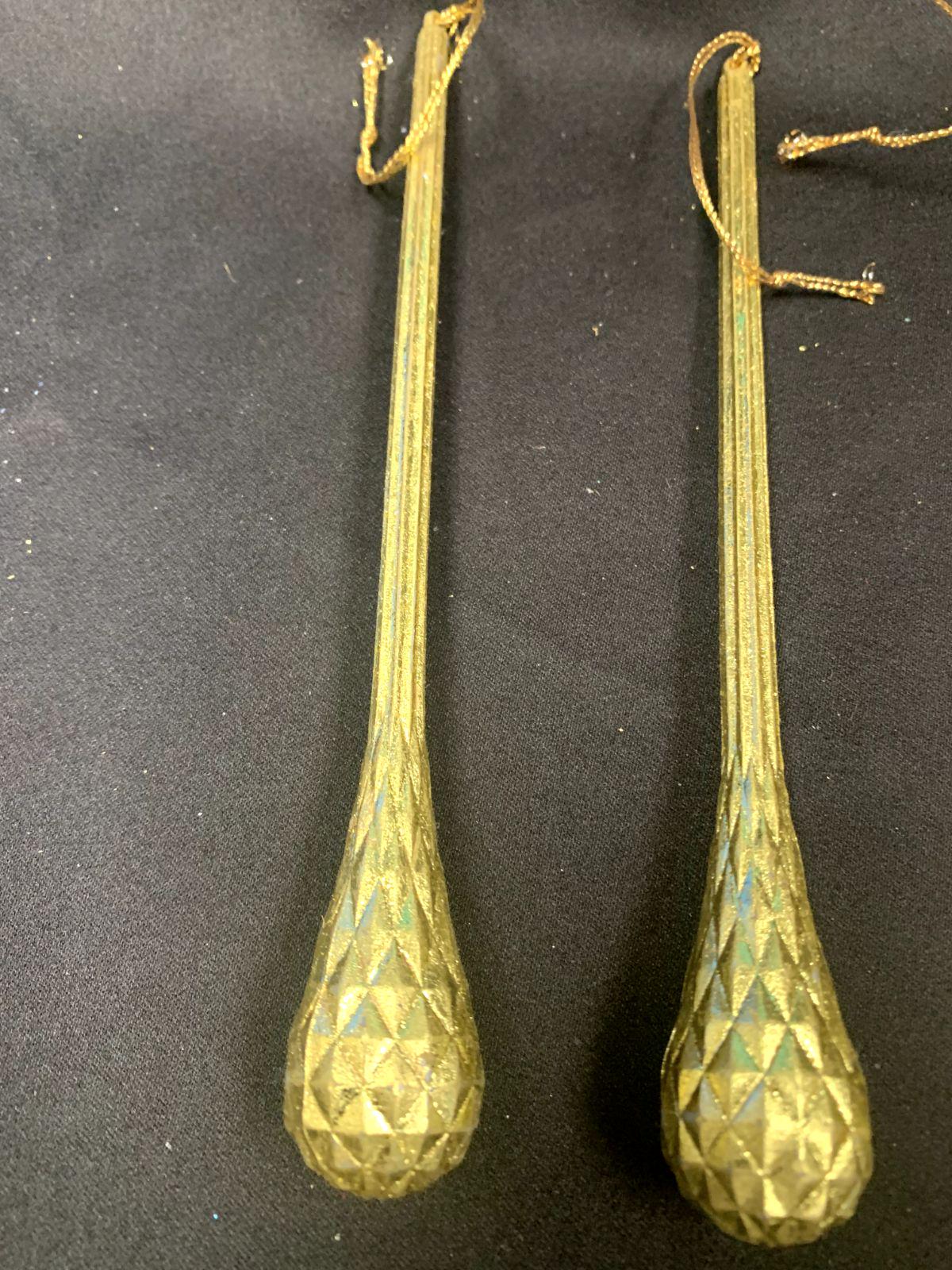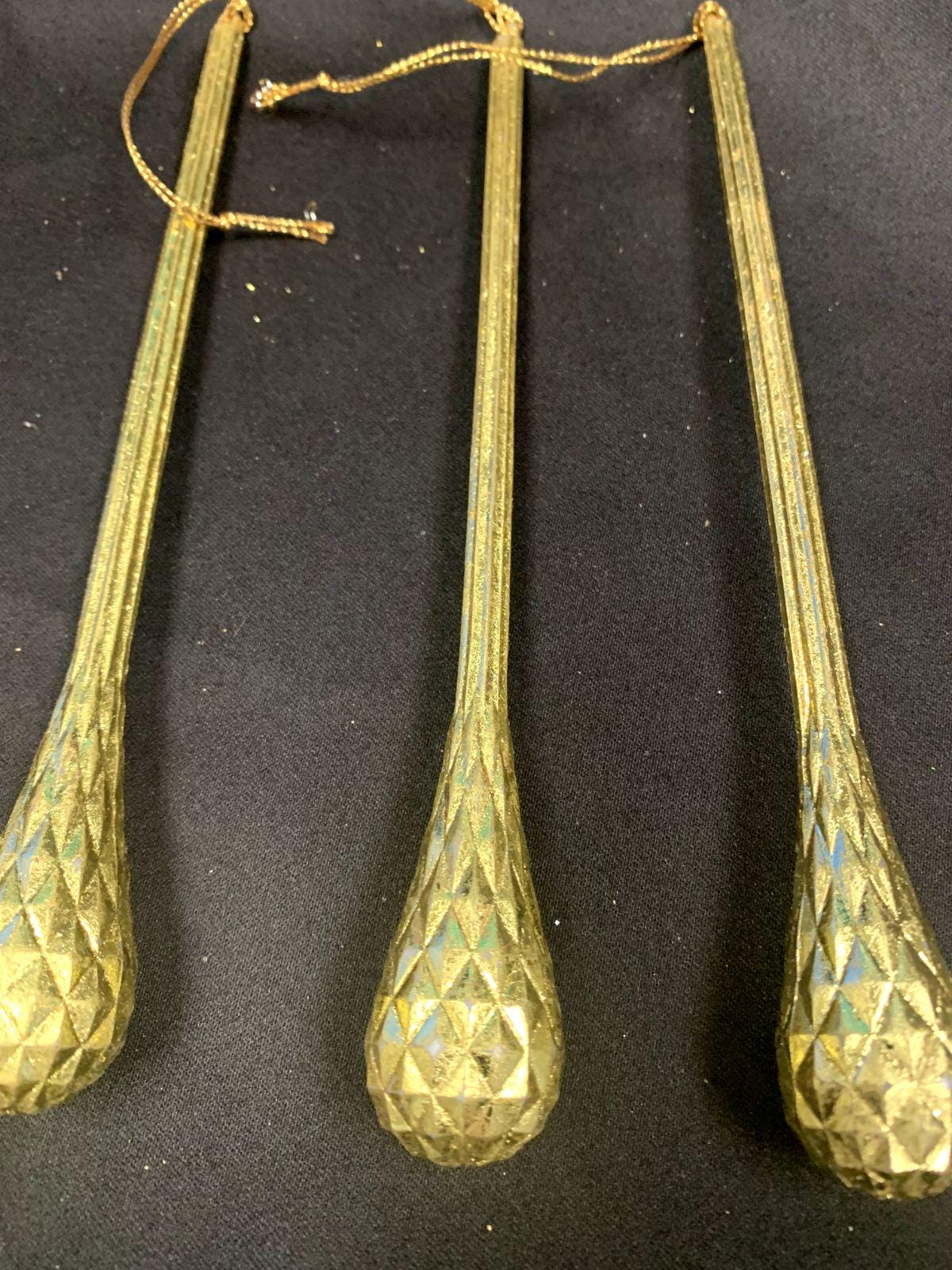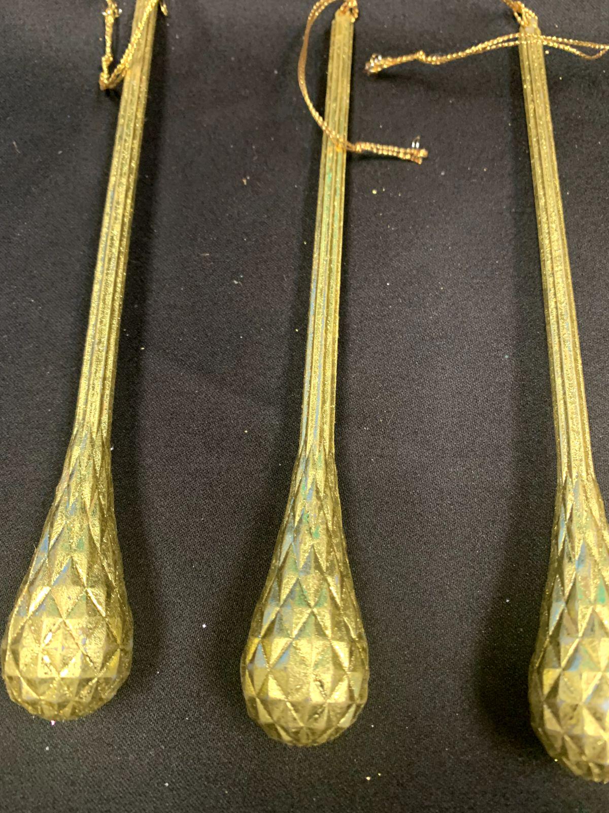 Vintage Gold Tone Plastic, 8 Inch Long Teadrop Christmas Ornaments Lot of 4