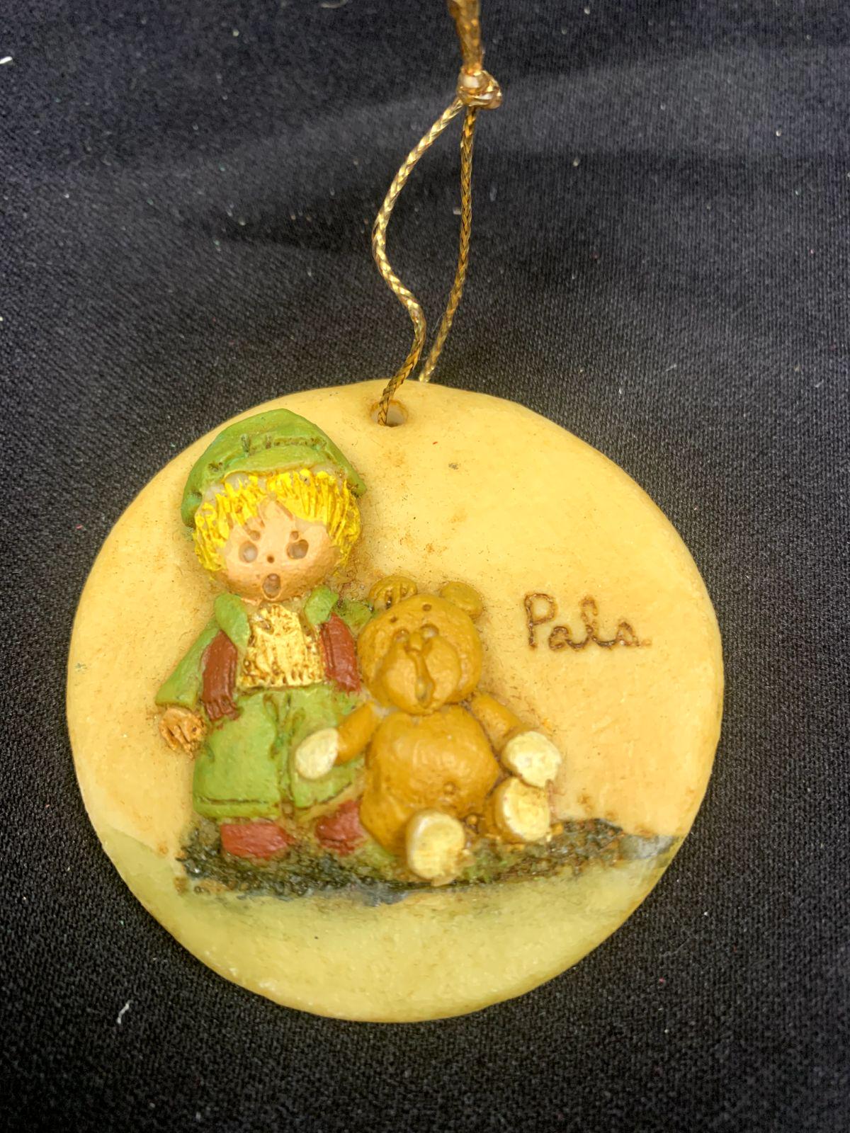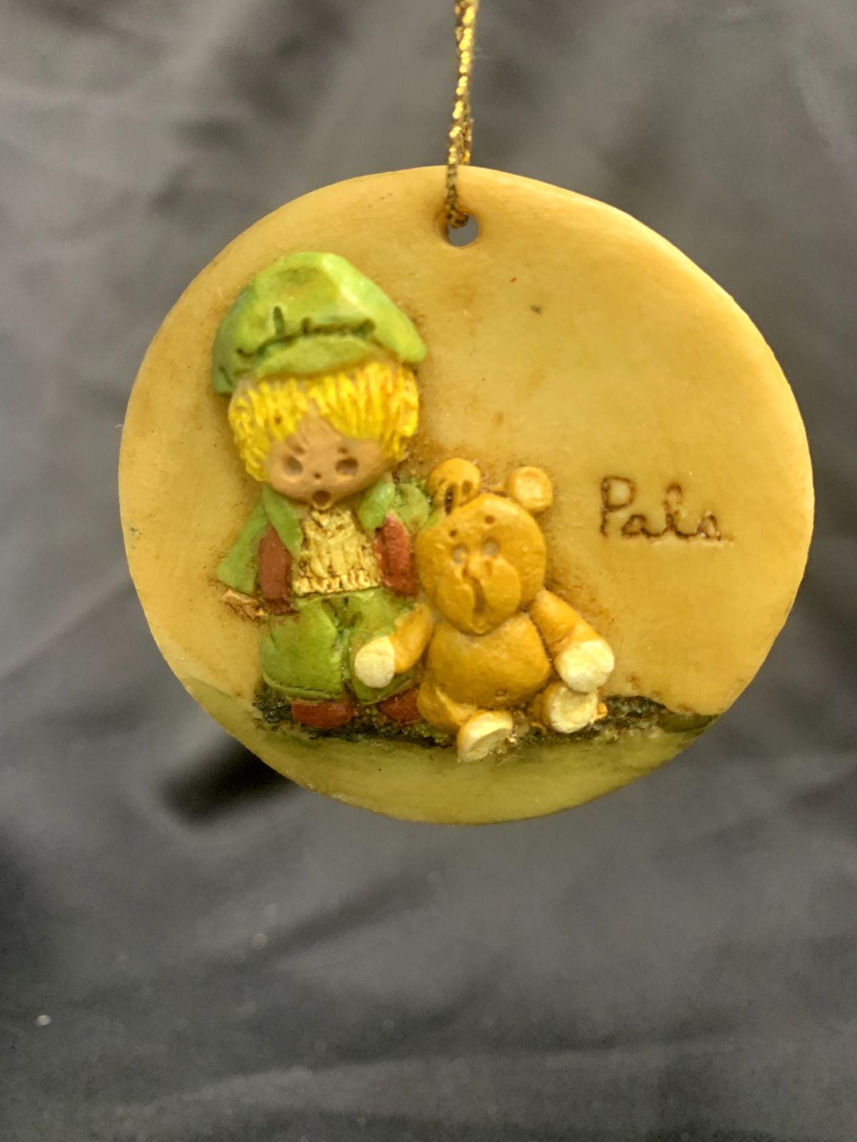 Vintage LaBerge Hand-painted Christmas Tree Ornament Pals 1983 Boy With His Teddy Bear