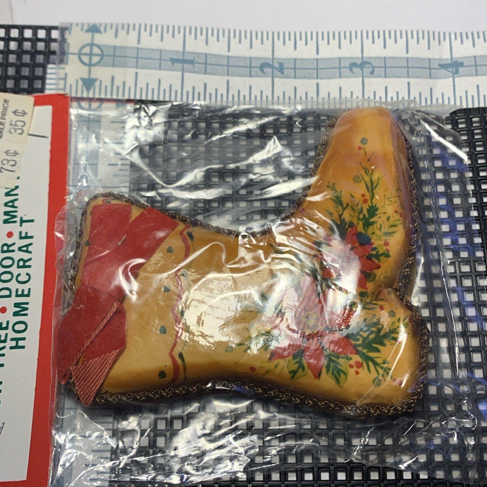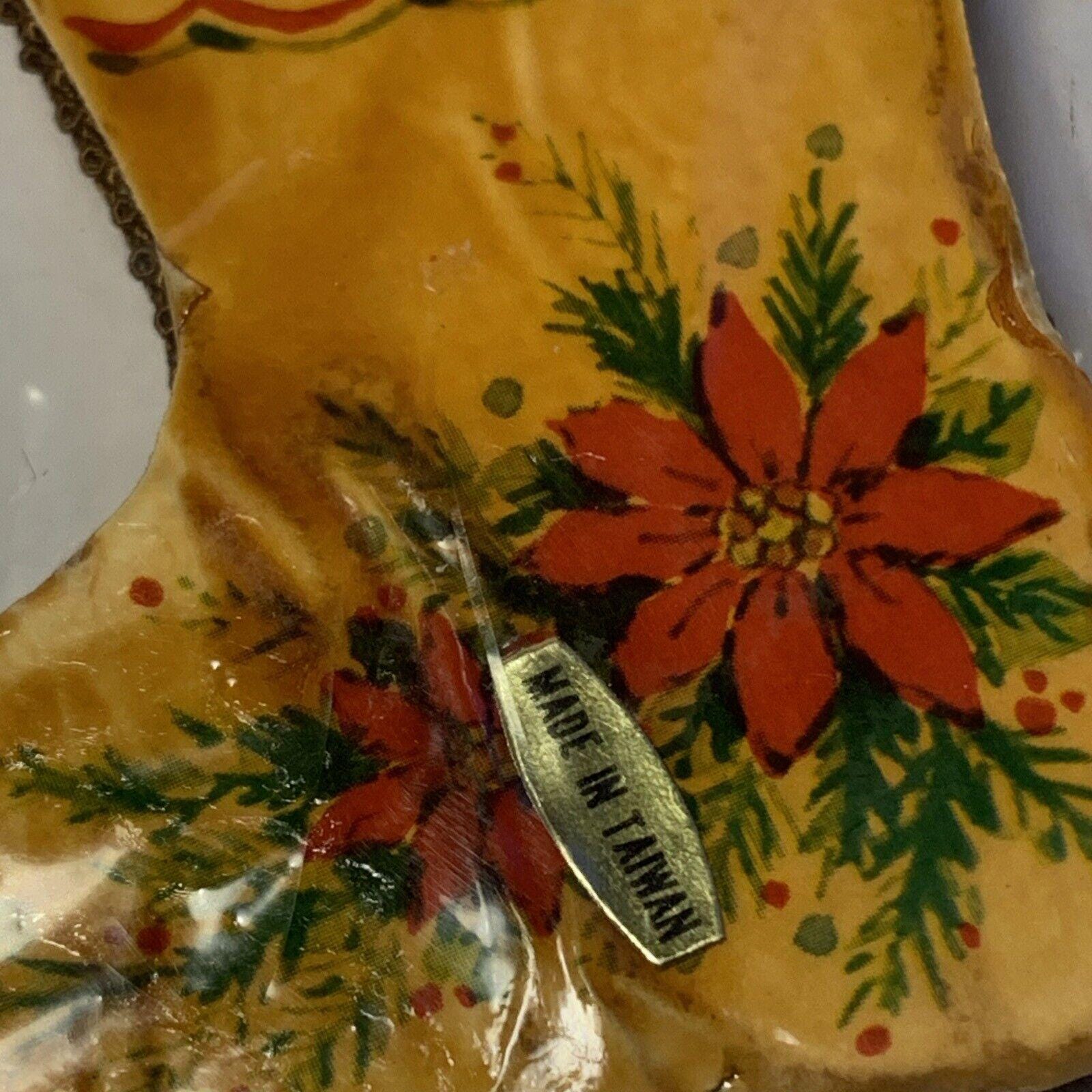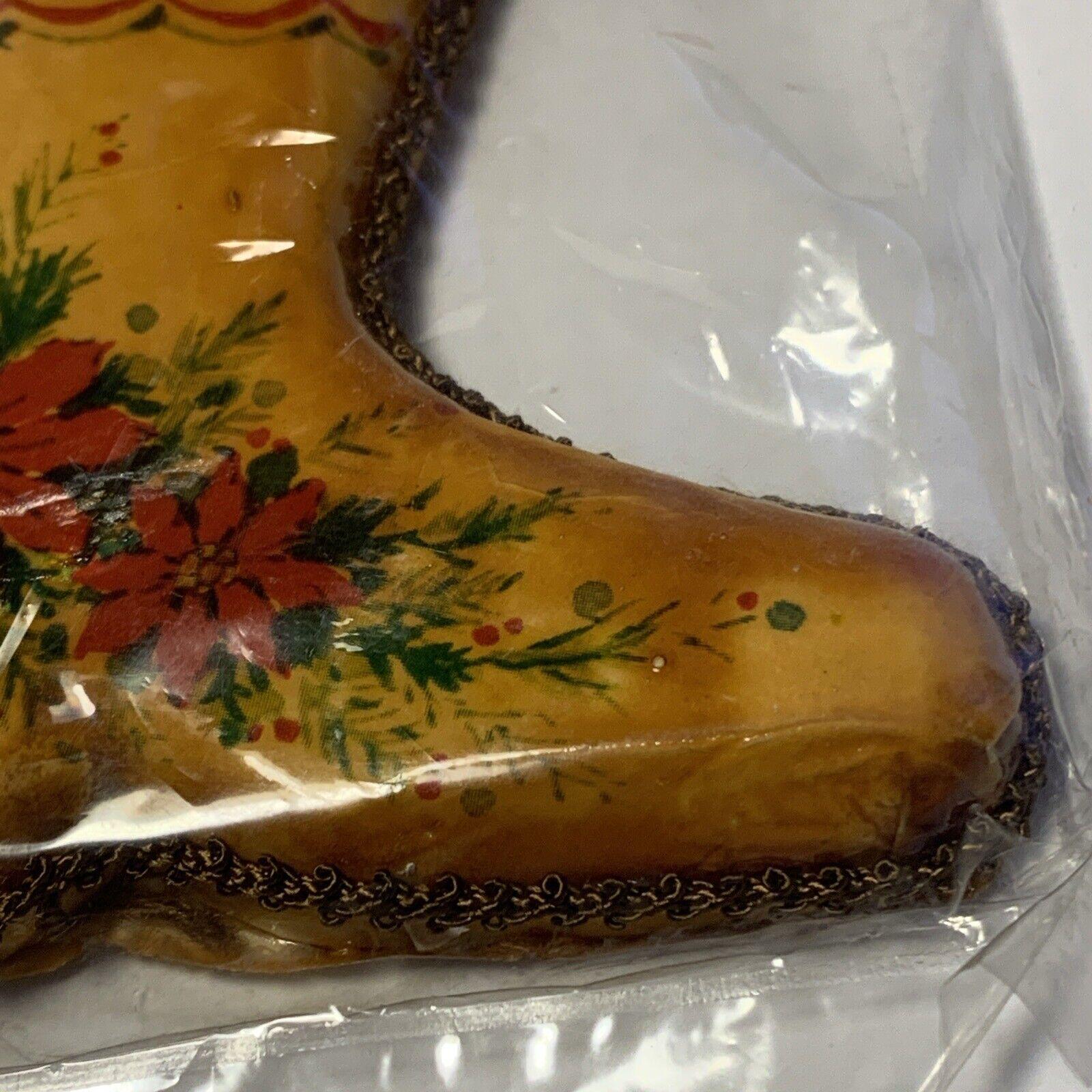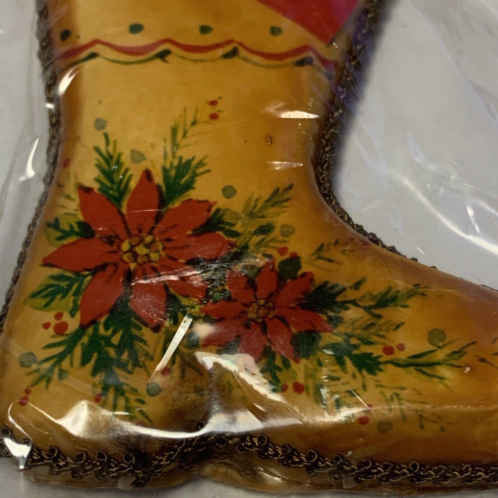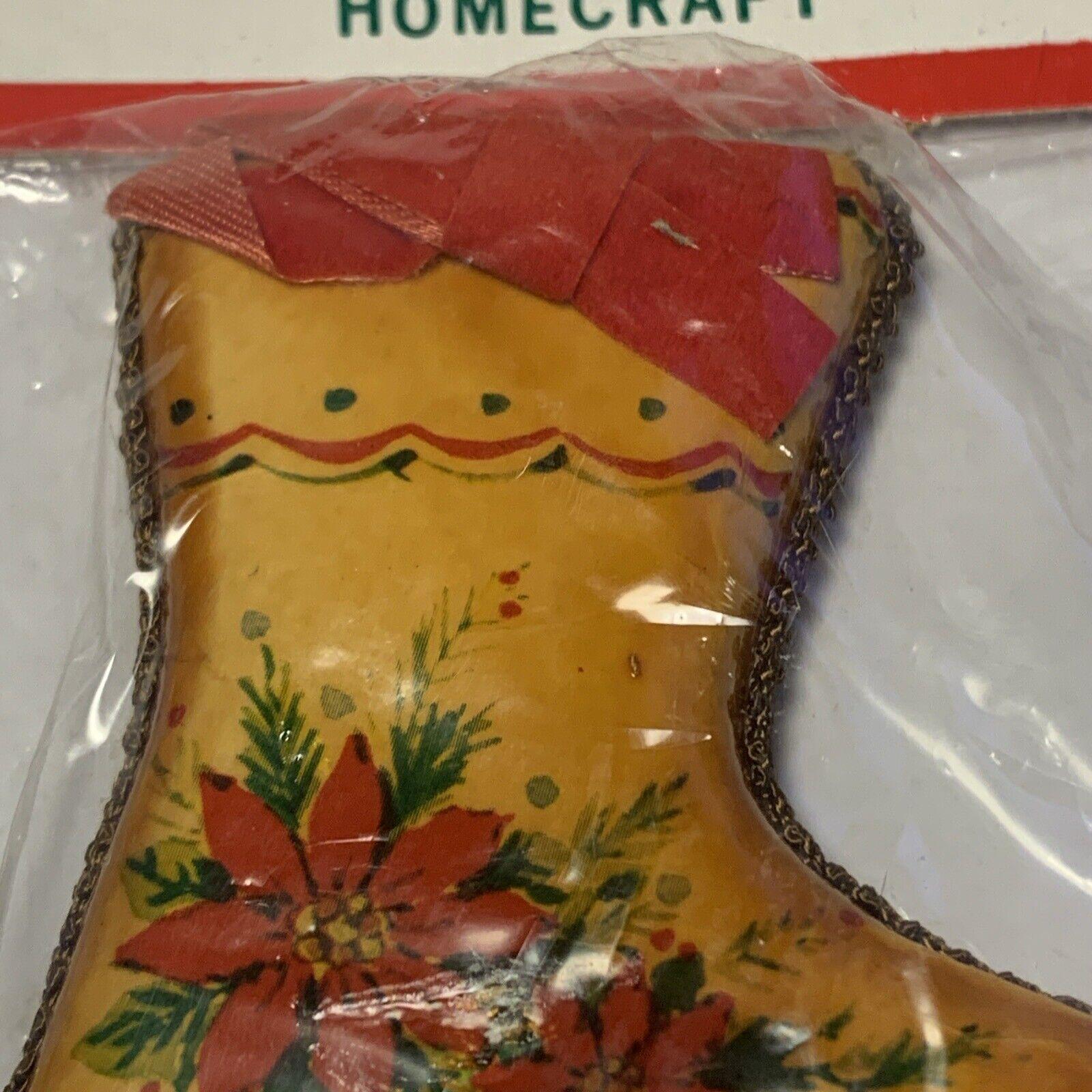 Vintage Homecraft By Kmart Gold Christmas Stocking Ornament Decoration With Poinsettia Flowers For Mantle Door Wall Or Tree New/Sealed
