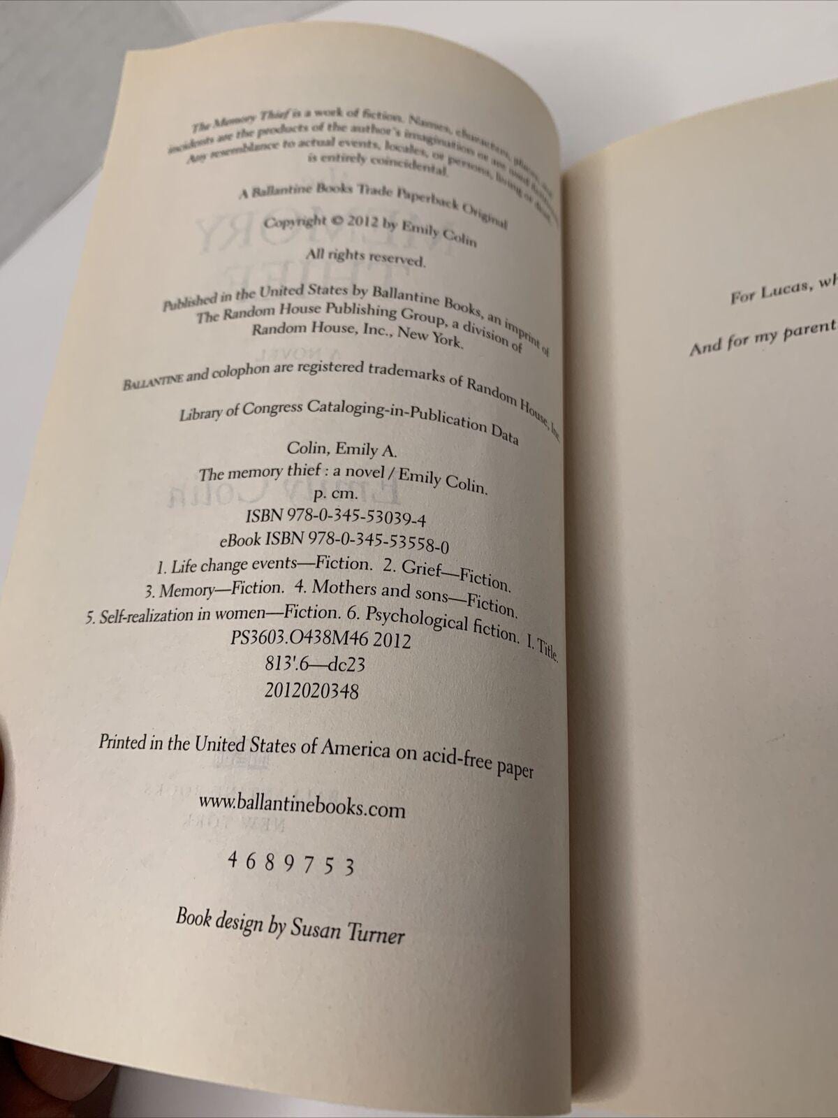 The Memory Thief: A Novel By Emily Colin Paperback Book In Like New Condition From 2012 - 3.7 Stars on Goodreads