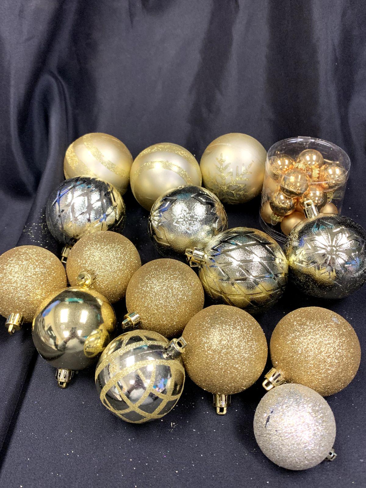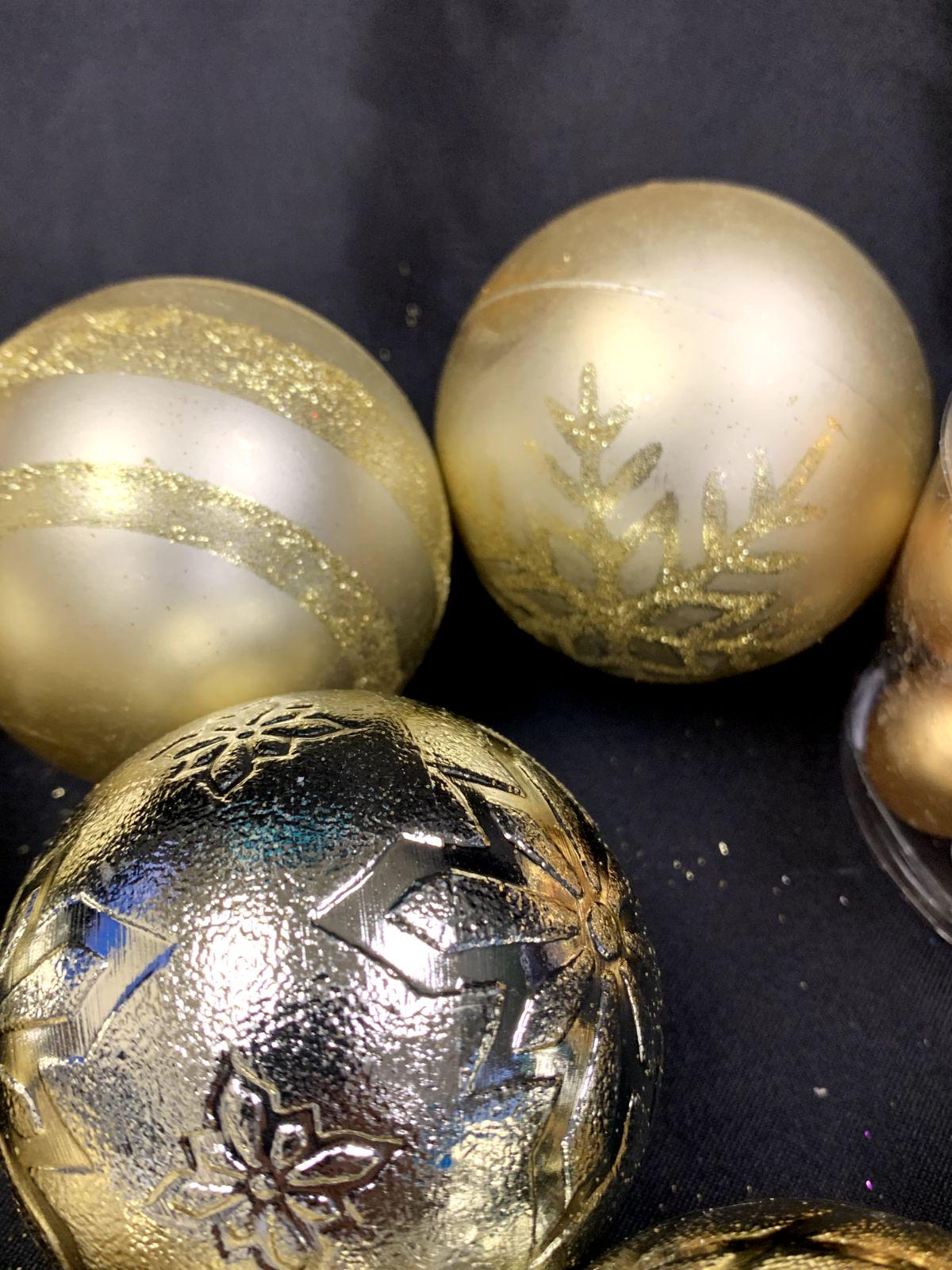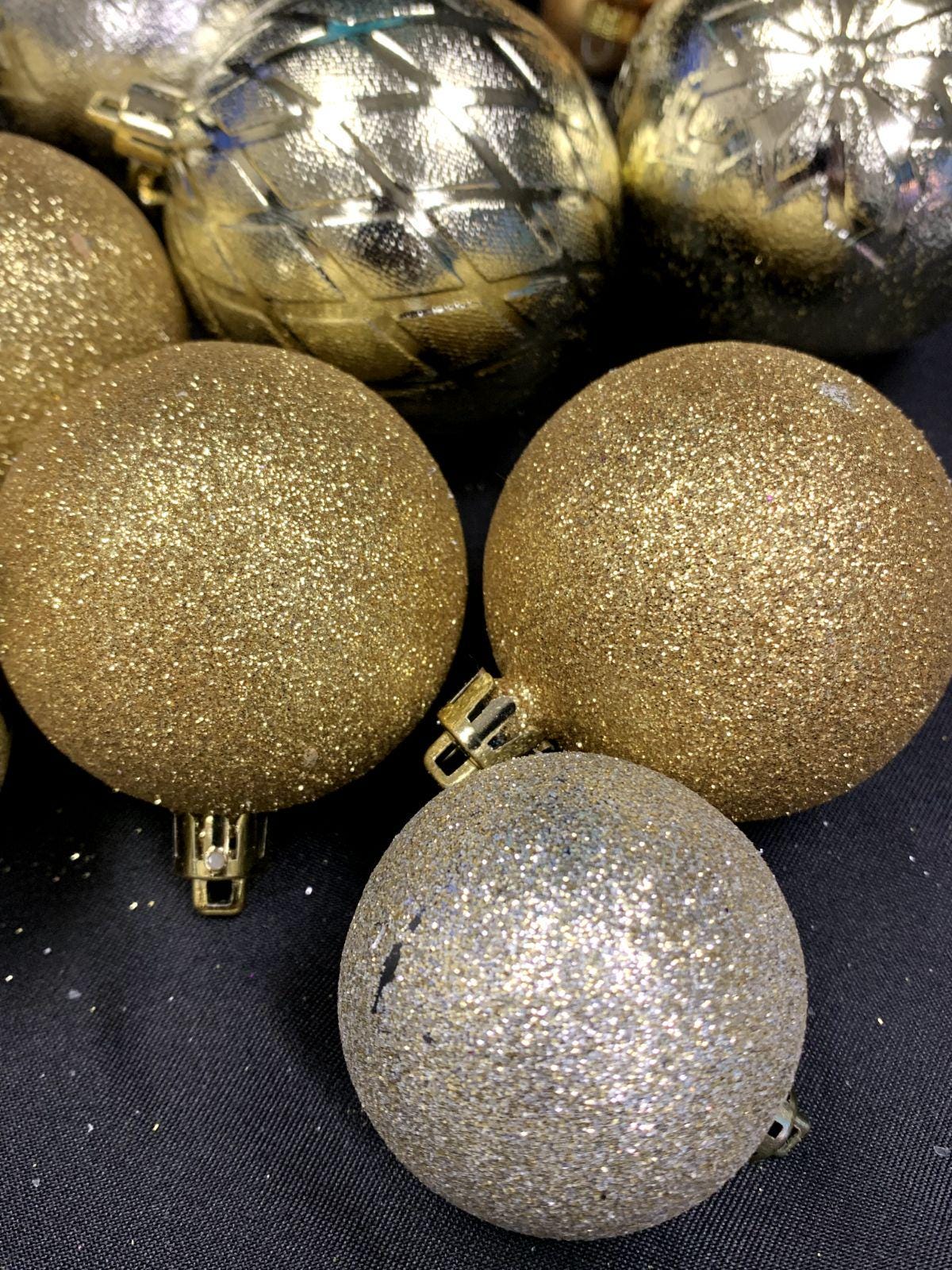Vintage Glittery Shiny Gold Plastic Christmas Ornament Bulbs or Balls Lots of 27 In Various Sizes