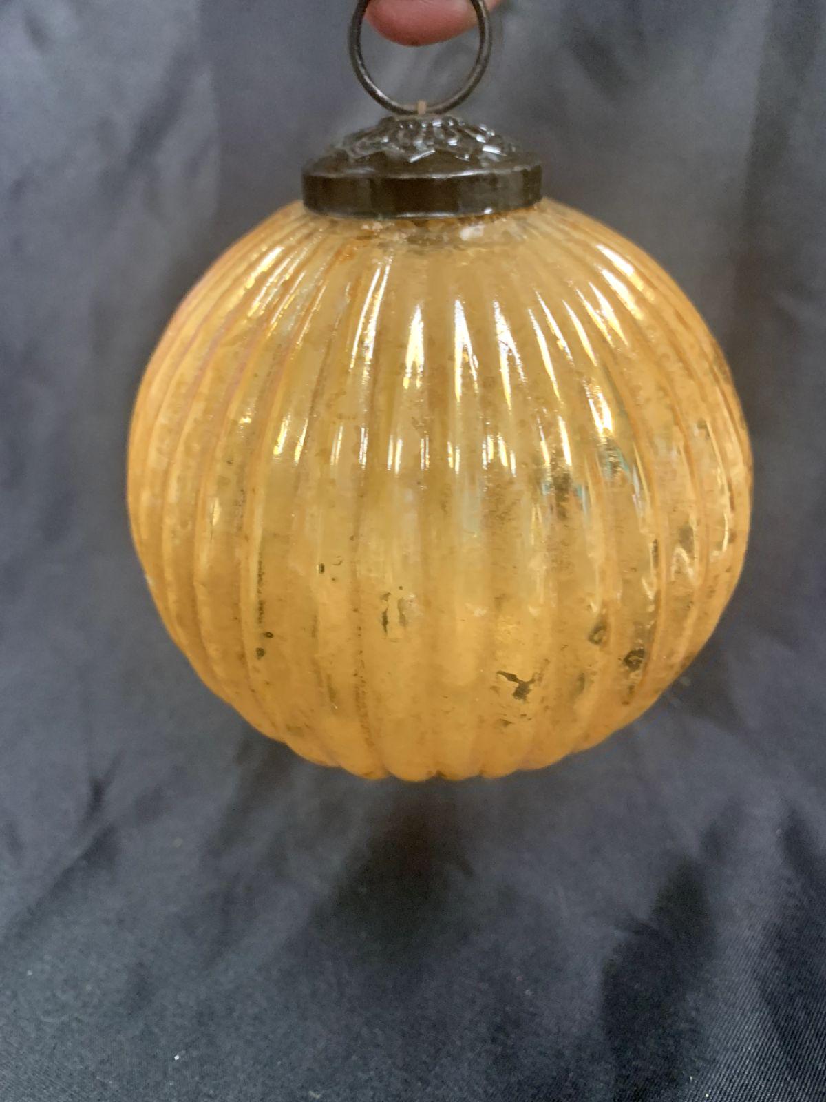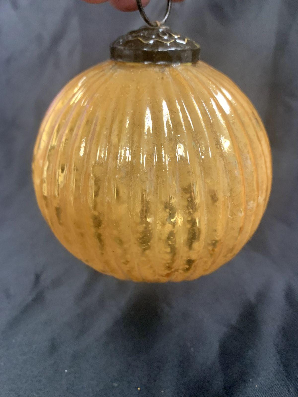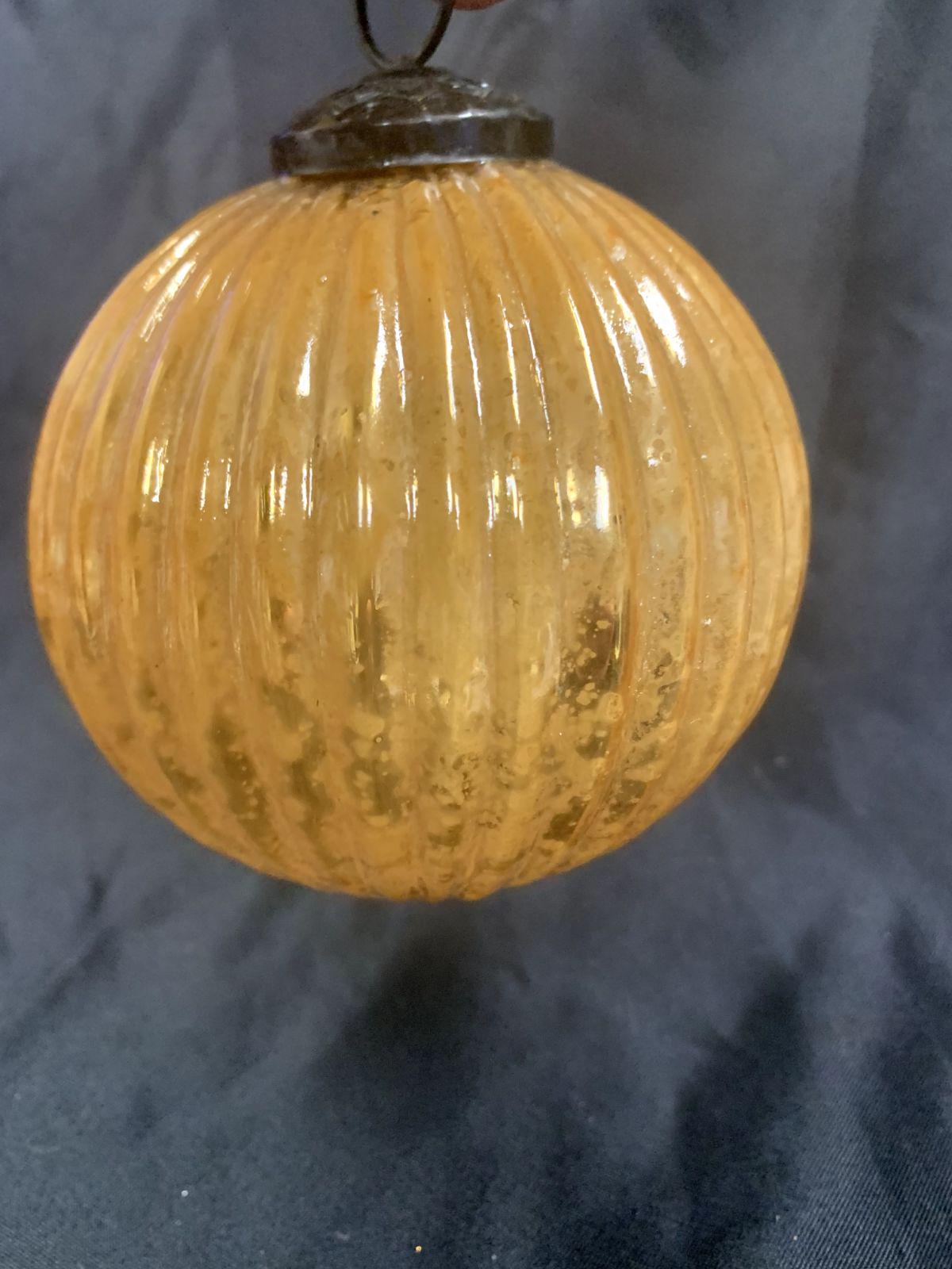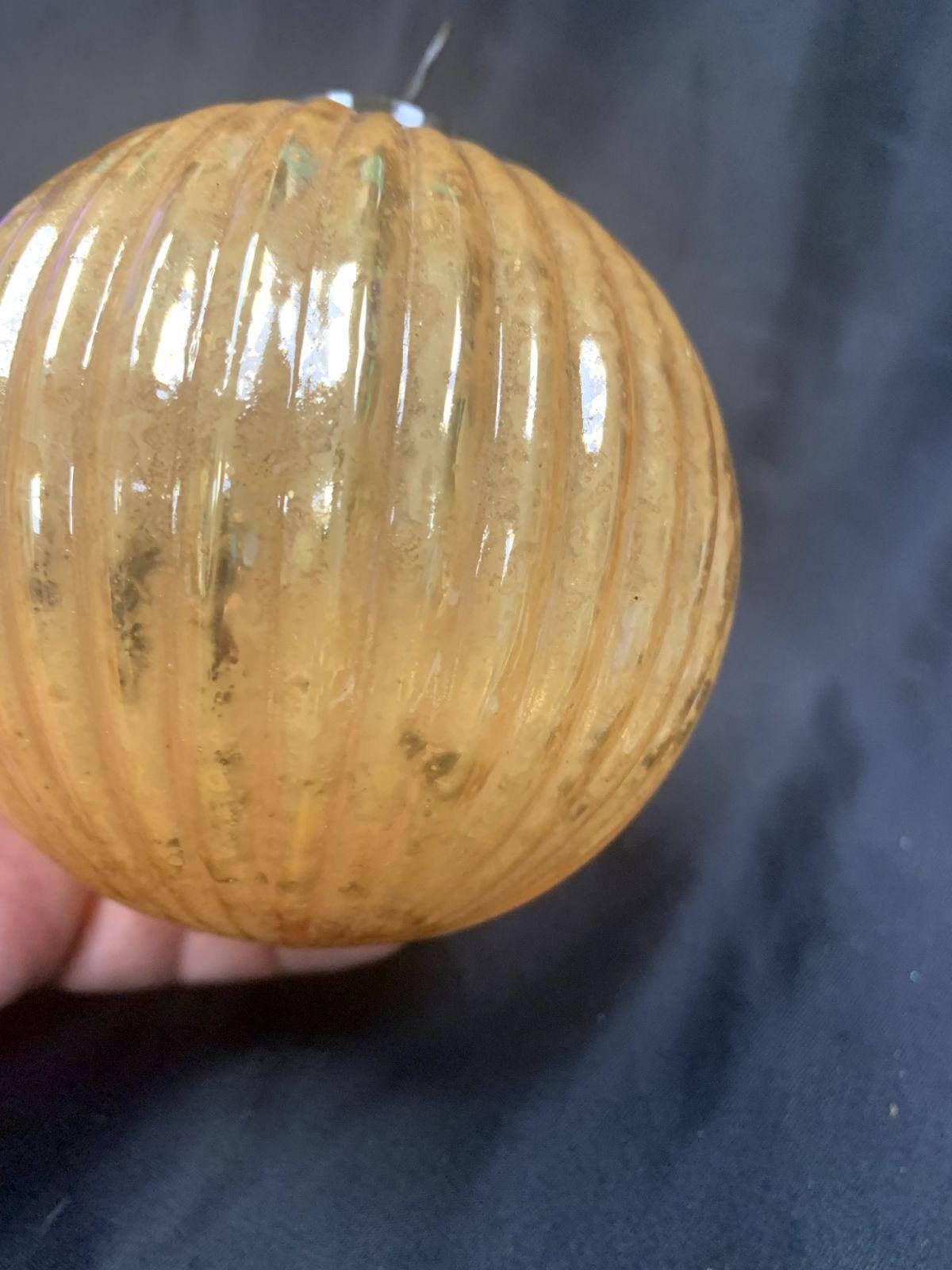 Vintage Large Round Gold Ribbed Pattern Frosted Glass Christmas Bulb Ball Tree Ornament
