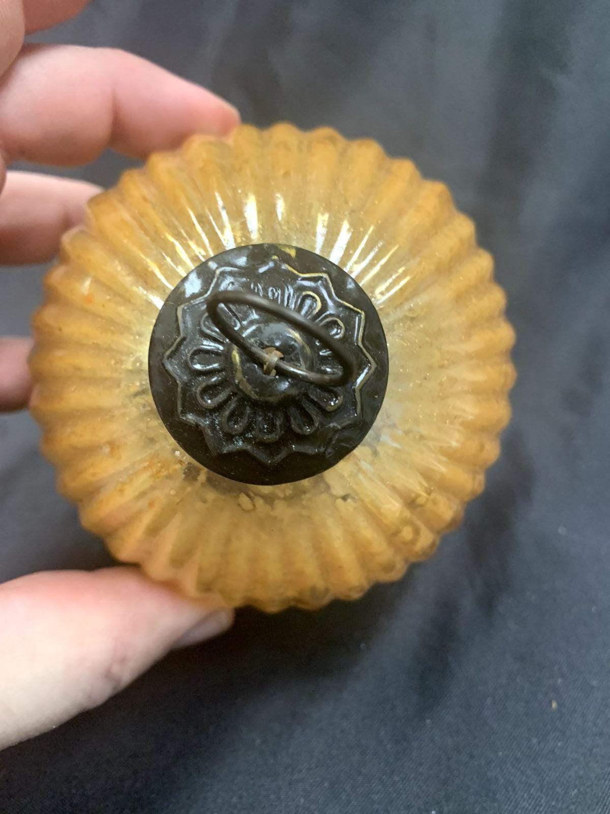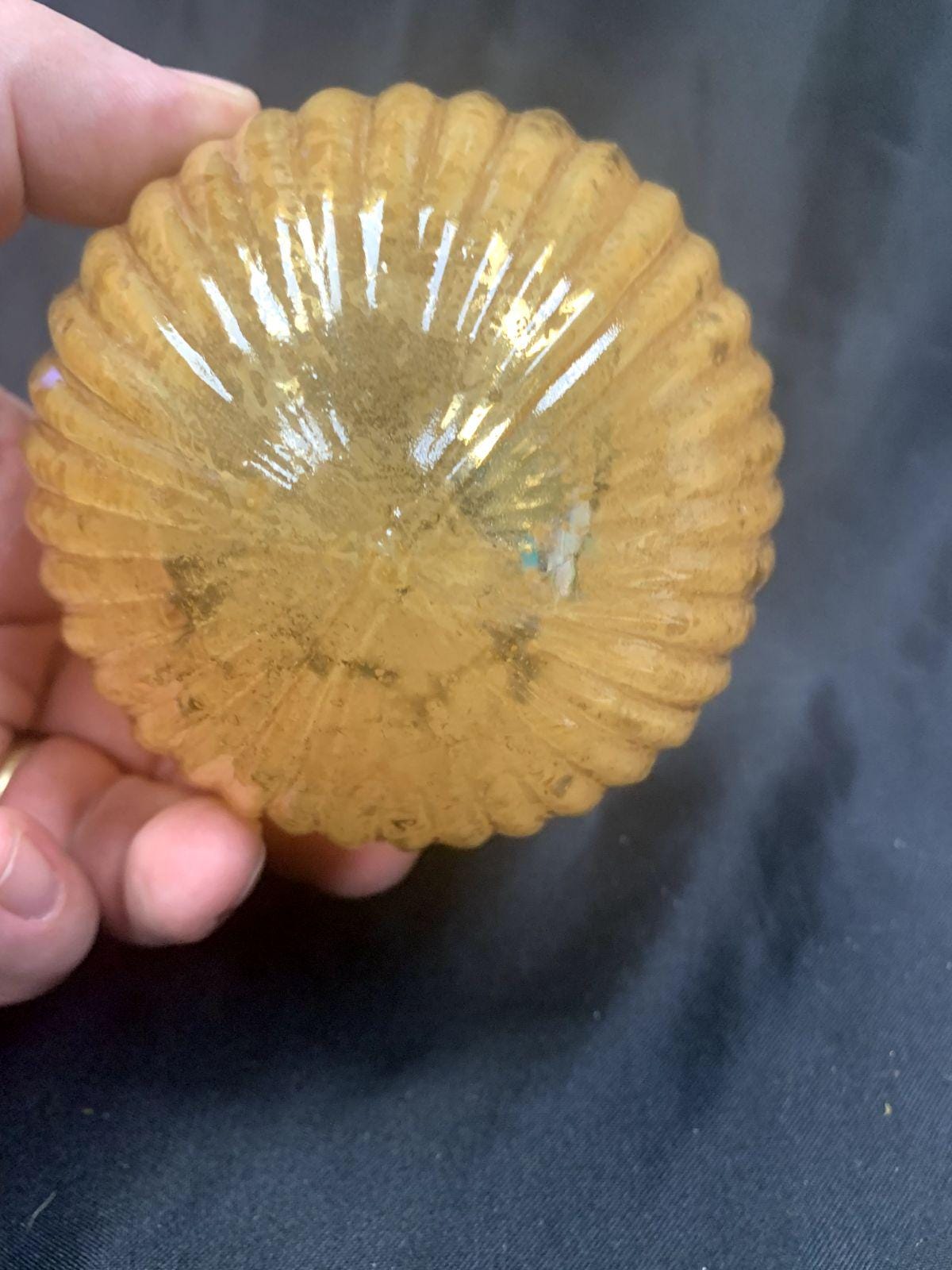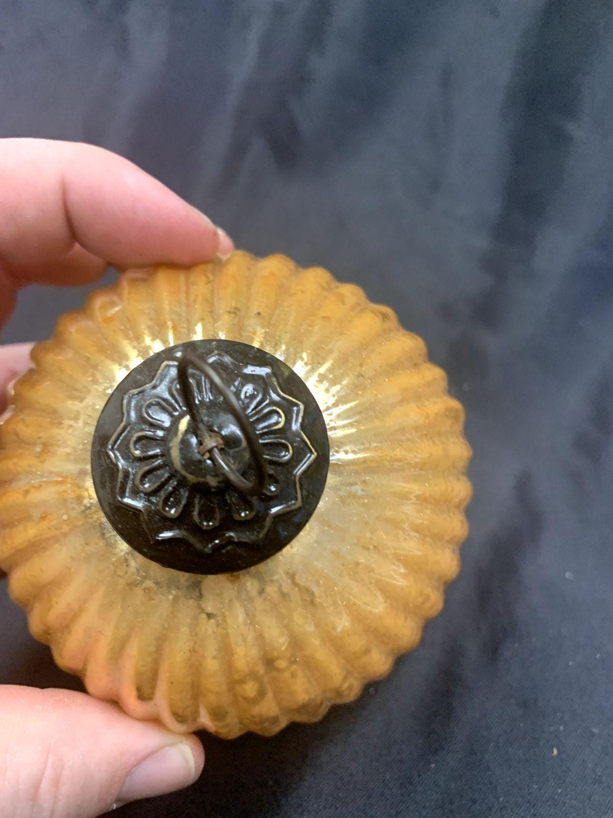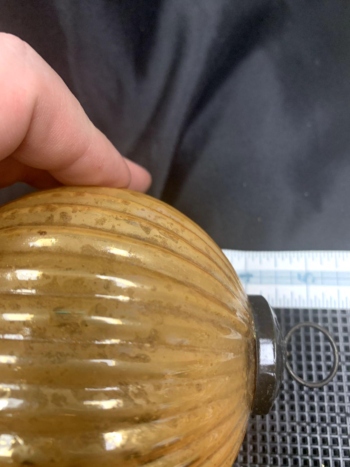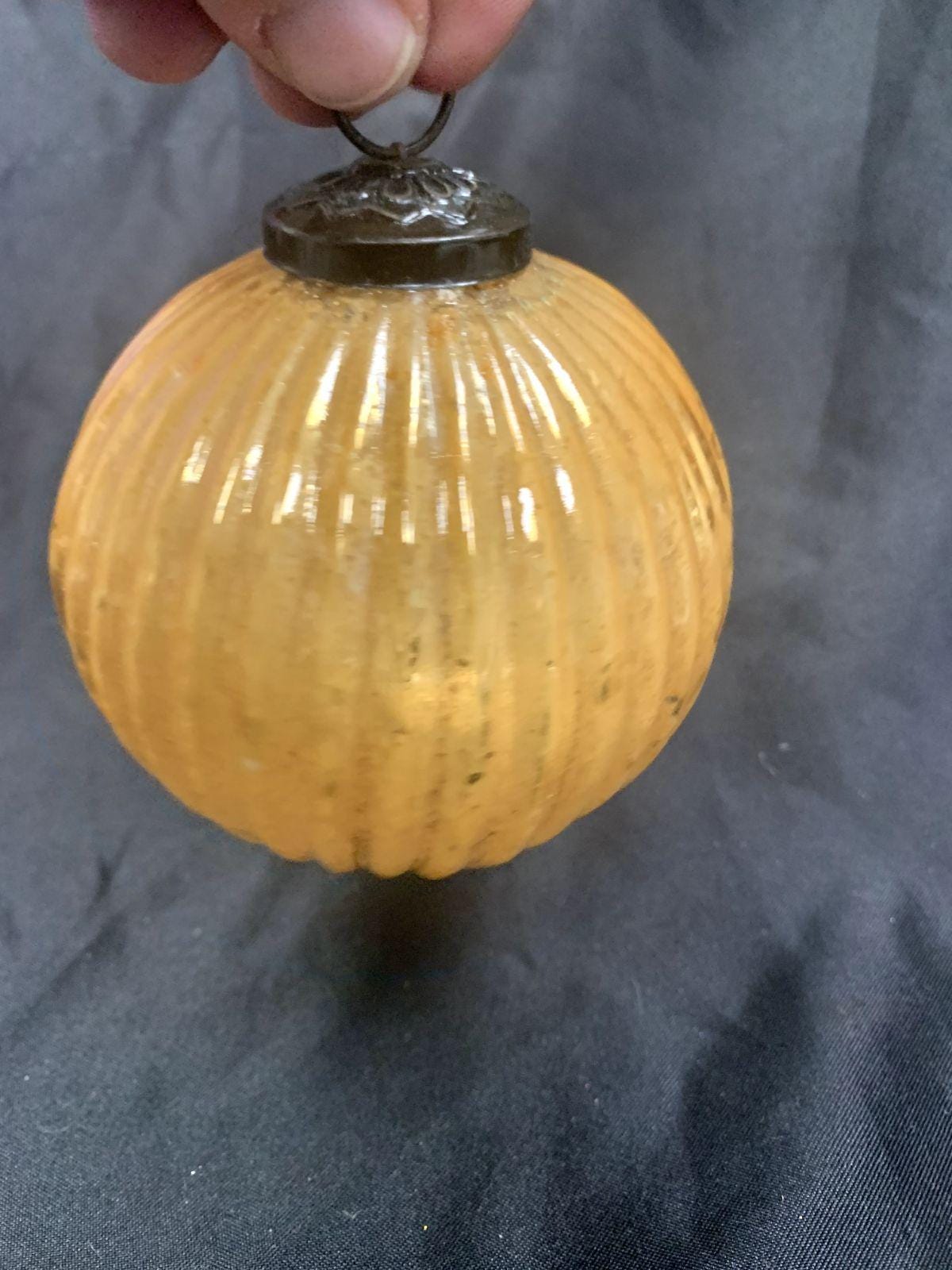 Vintage Large Round Gold Ribbed Pattern Frosted Glass Christmas Bulb Ball Tree Ornament