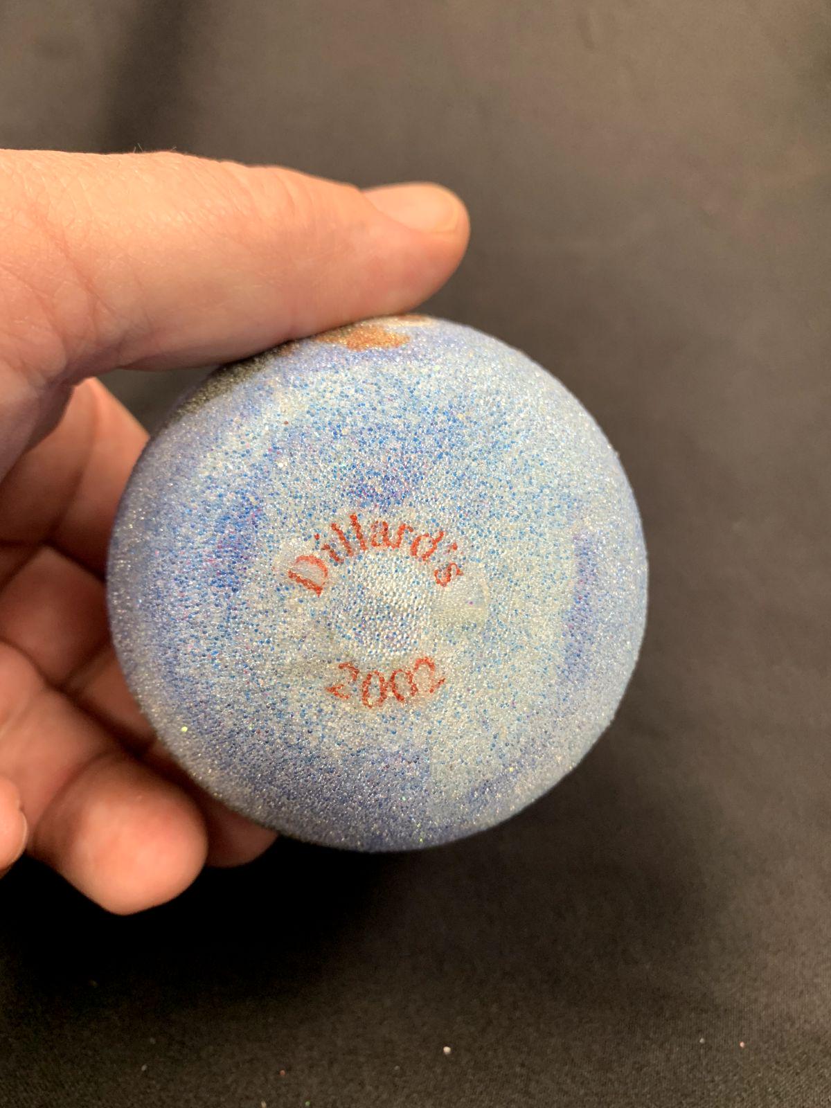 Vintage Dillard's Store Round Sugar Frosted Teddy Bear Christmas Tree Bulb Ornament From 2002