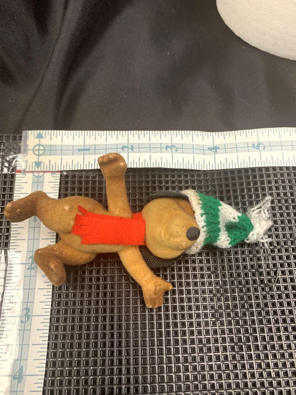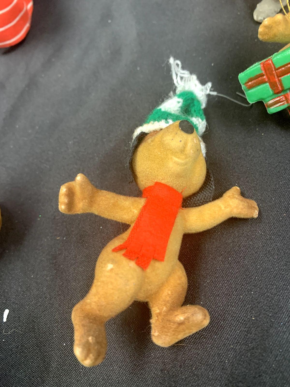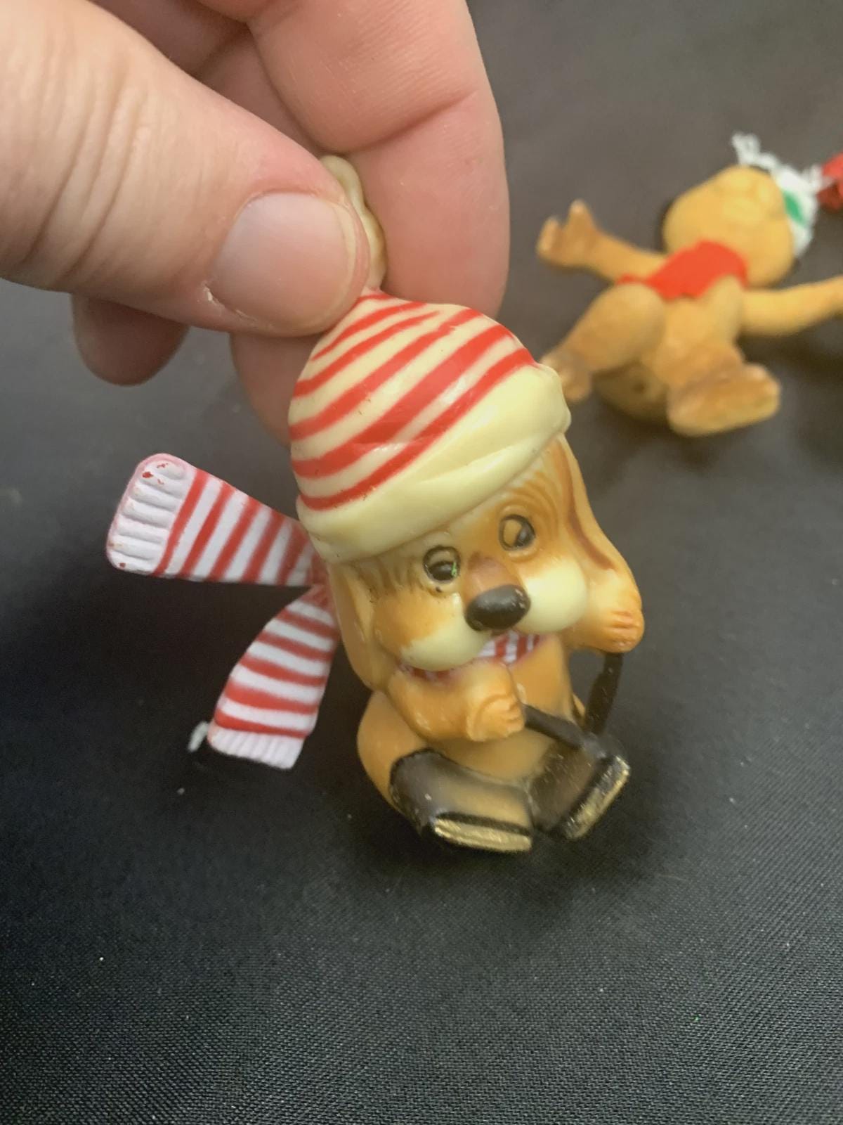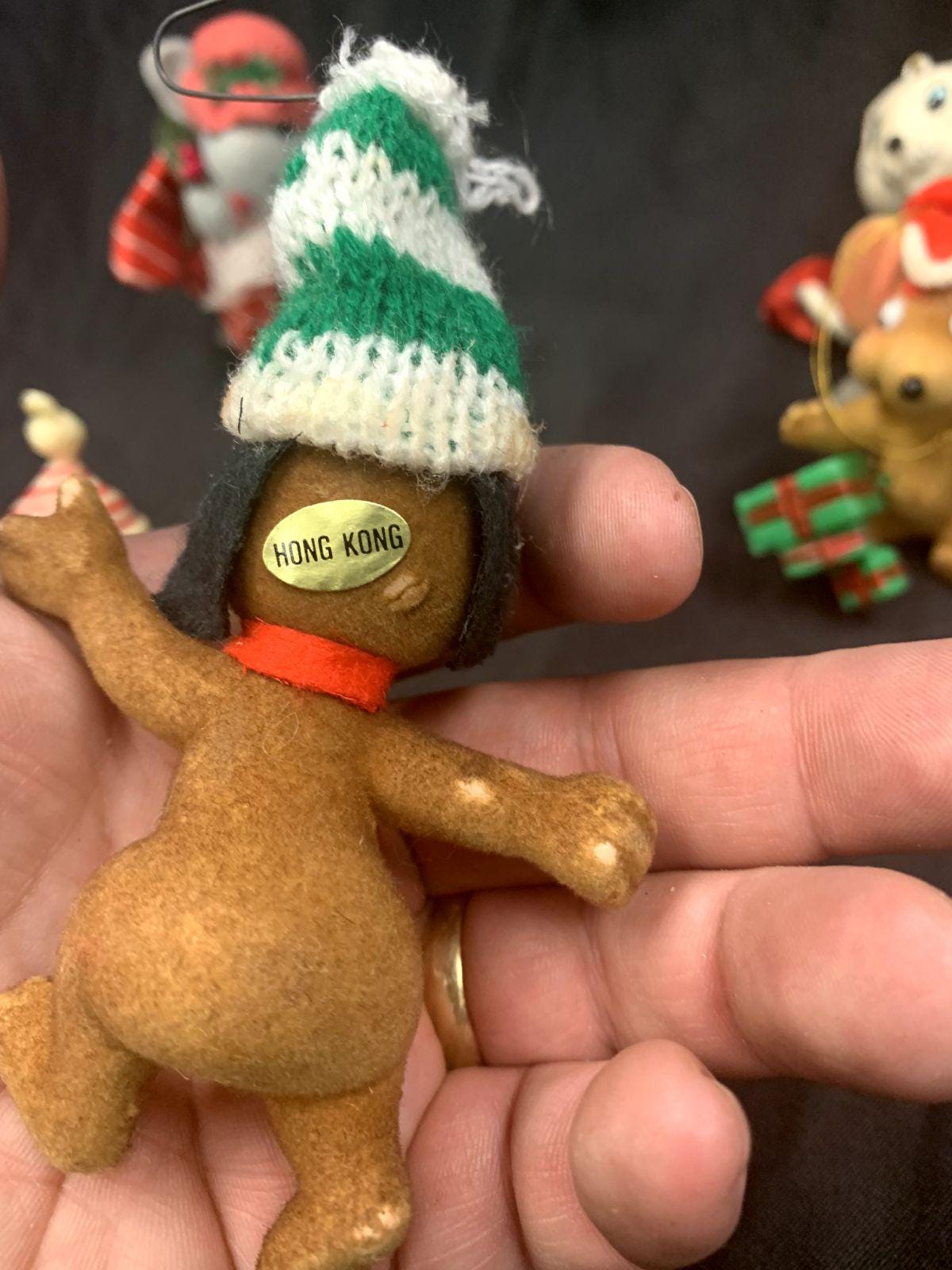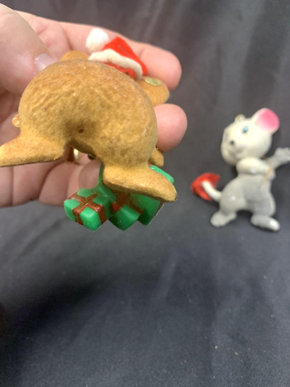 Three flocked ornaments - dog and mice made in Hong Kong