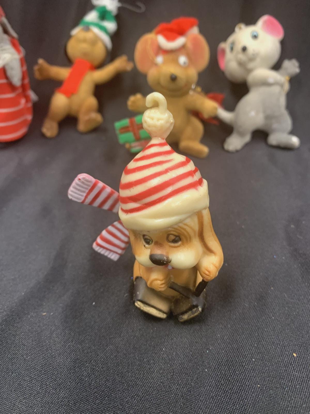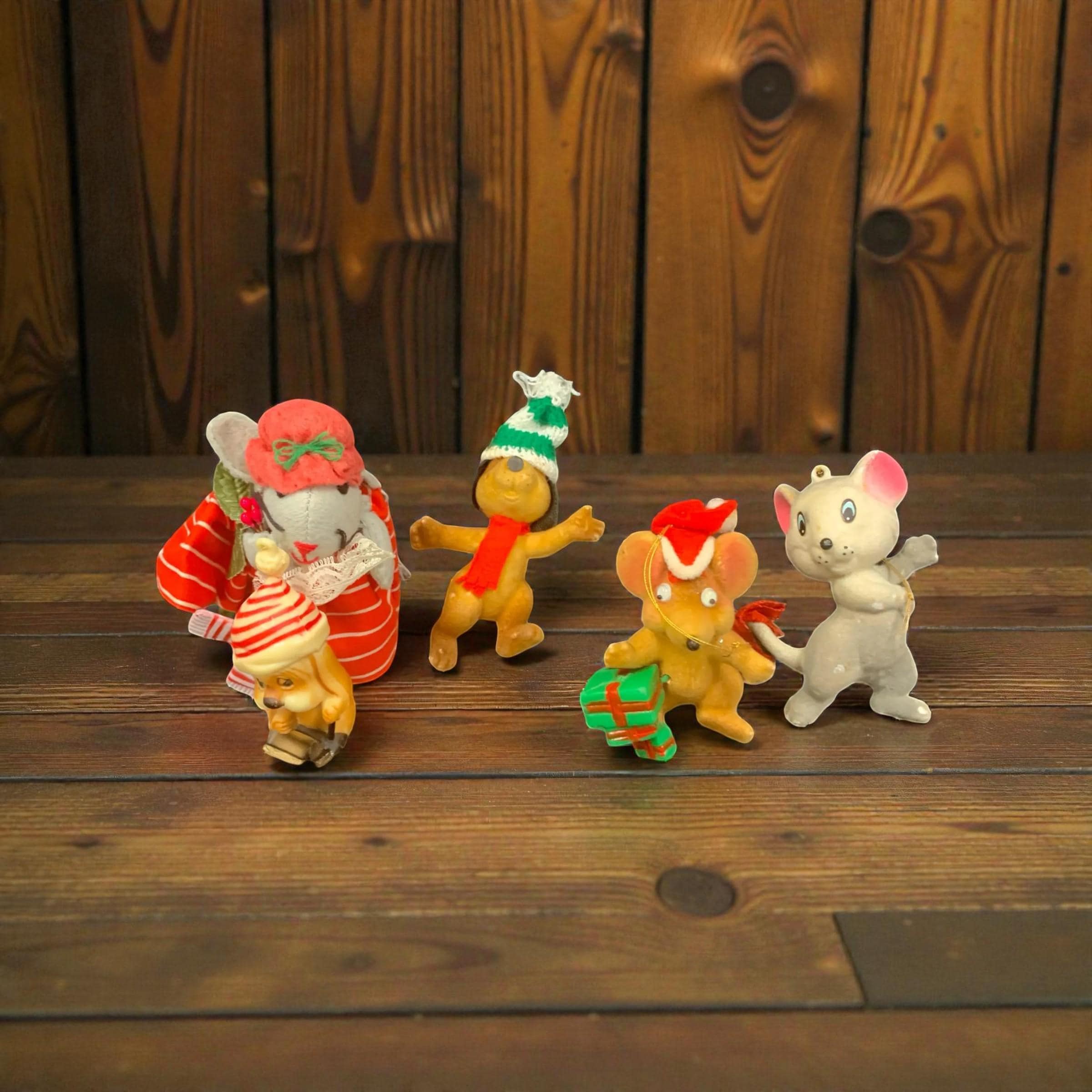 Vintage Animal Christmas Tree Ornaments Dog and Mice Made in Hong Kong Set of 5