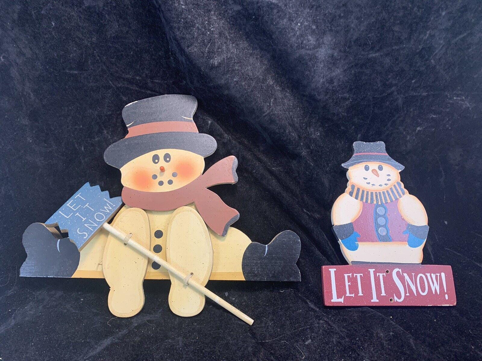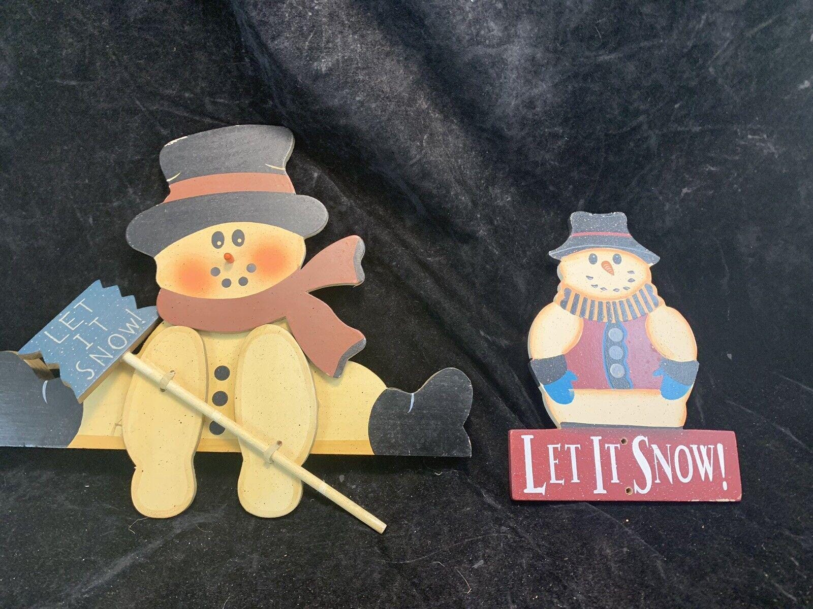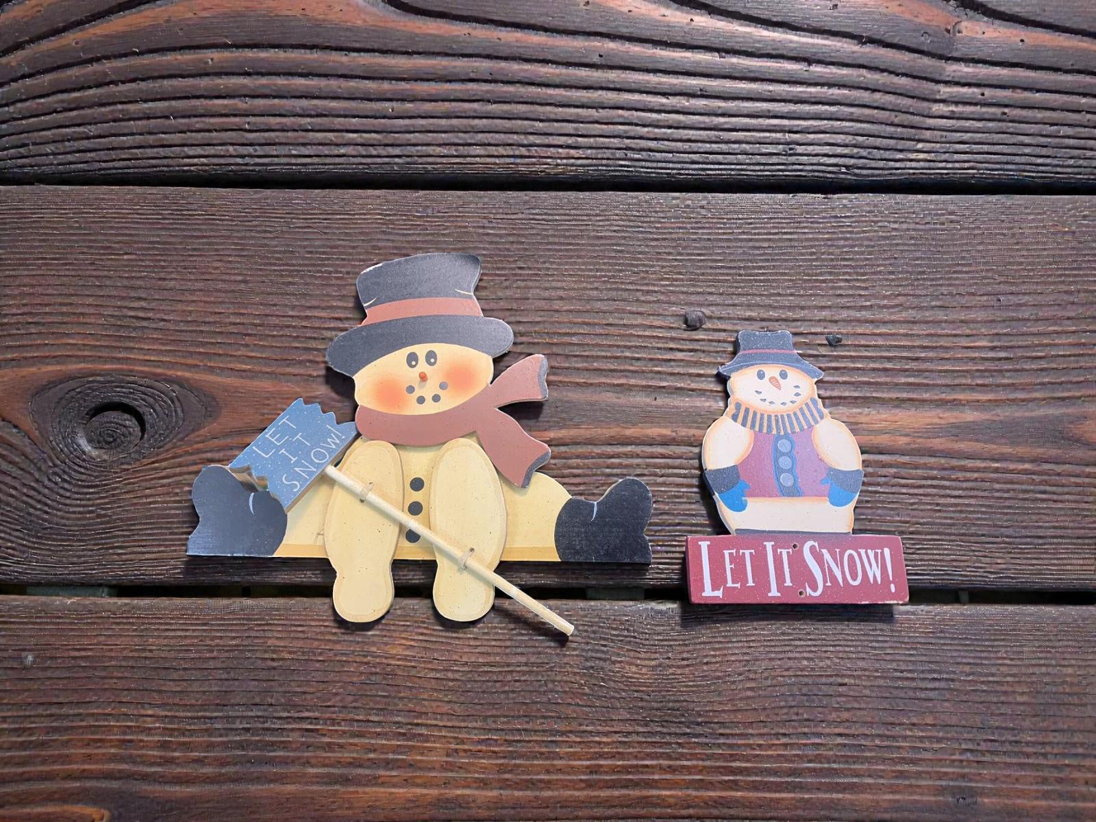 Vintage Wood Christmas Wall Decorations Snowman Let it Snow Set of 2
