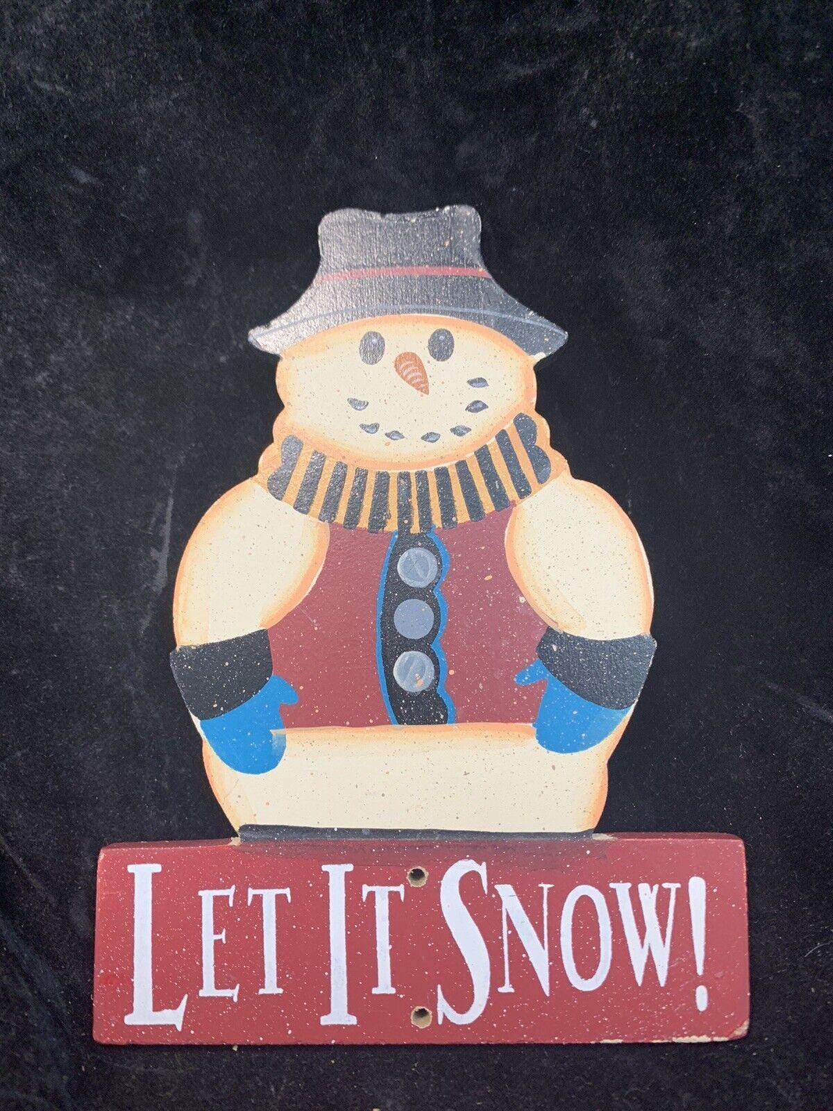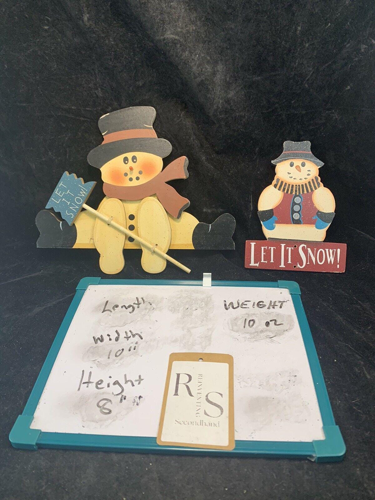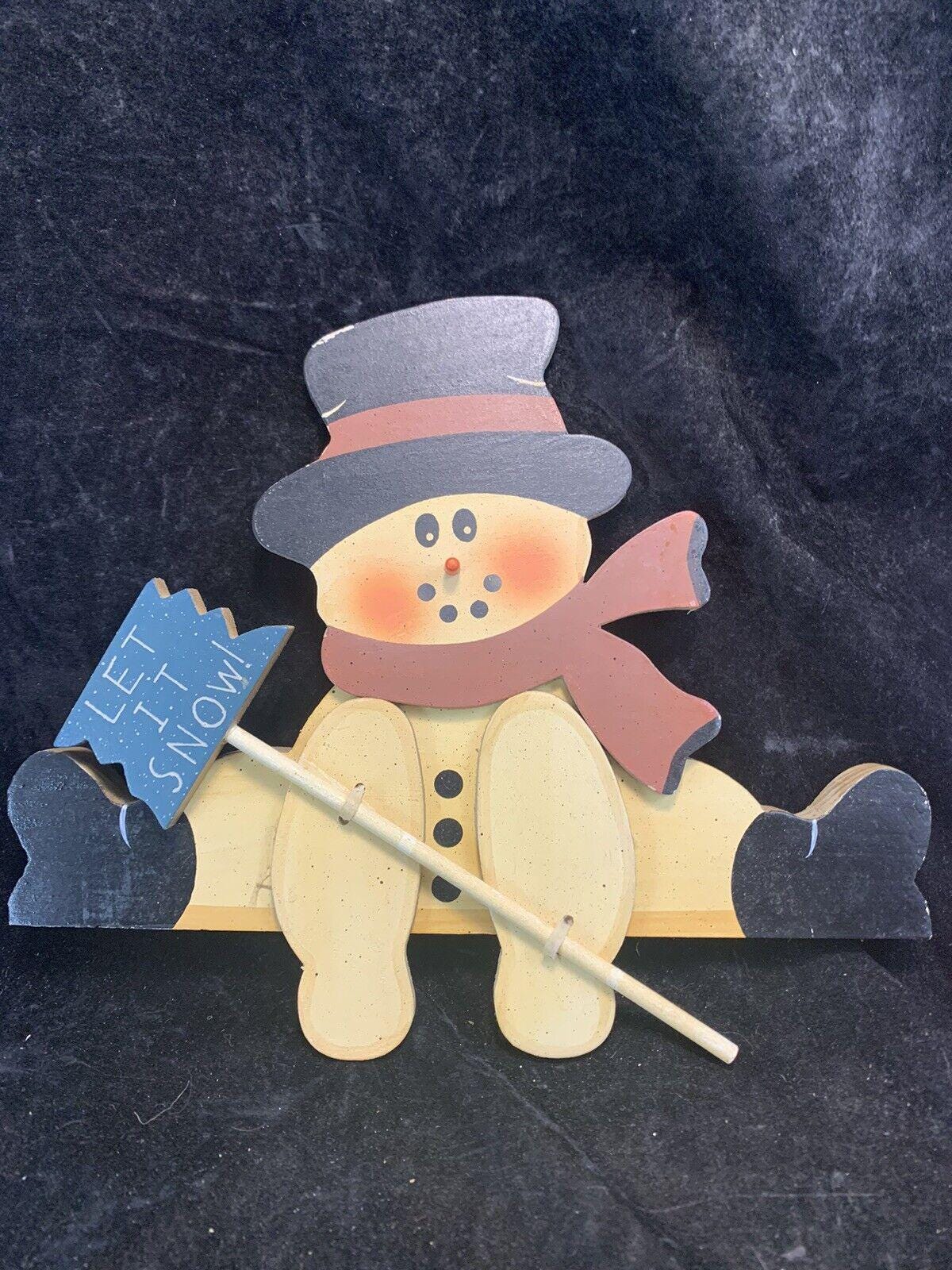 Vintage Wood Christmas Wall Decorations Snowman Let it Snow Set of 2