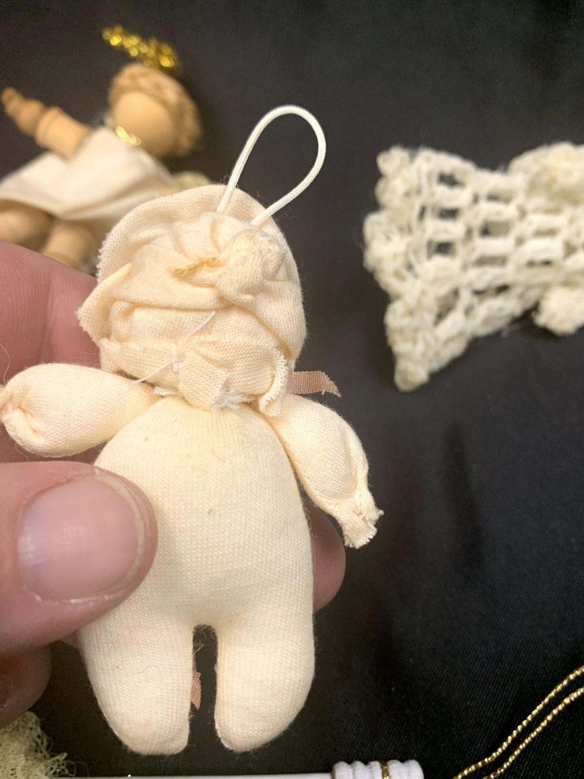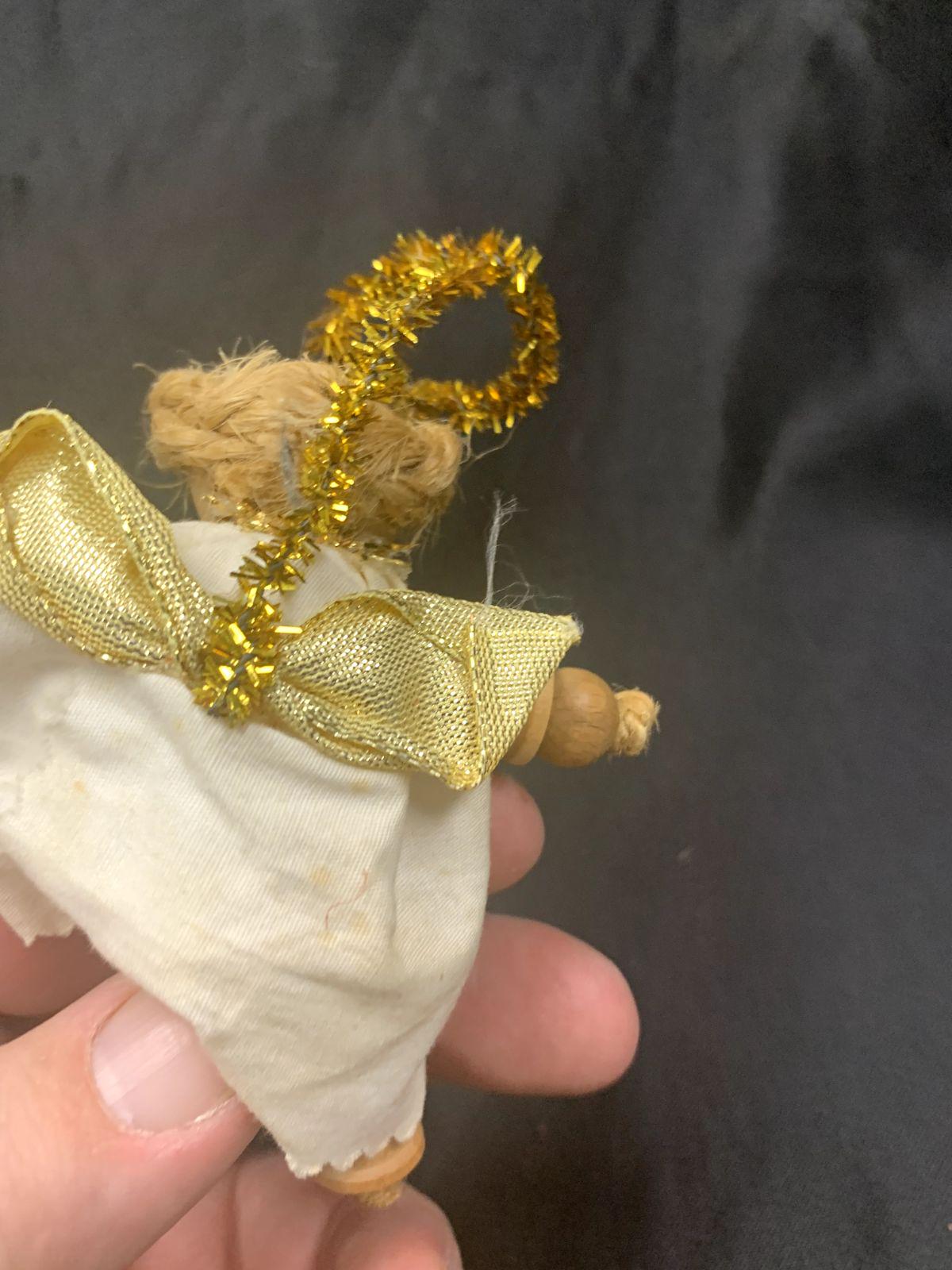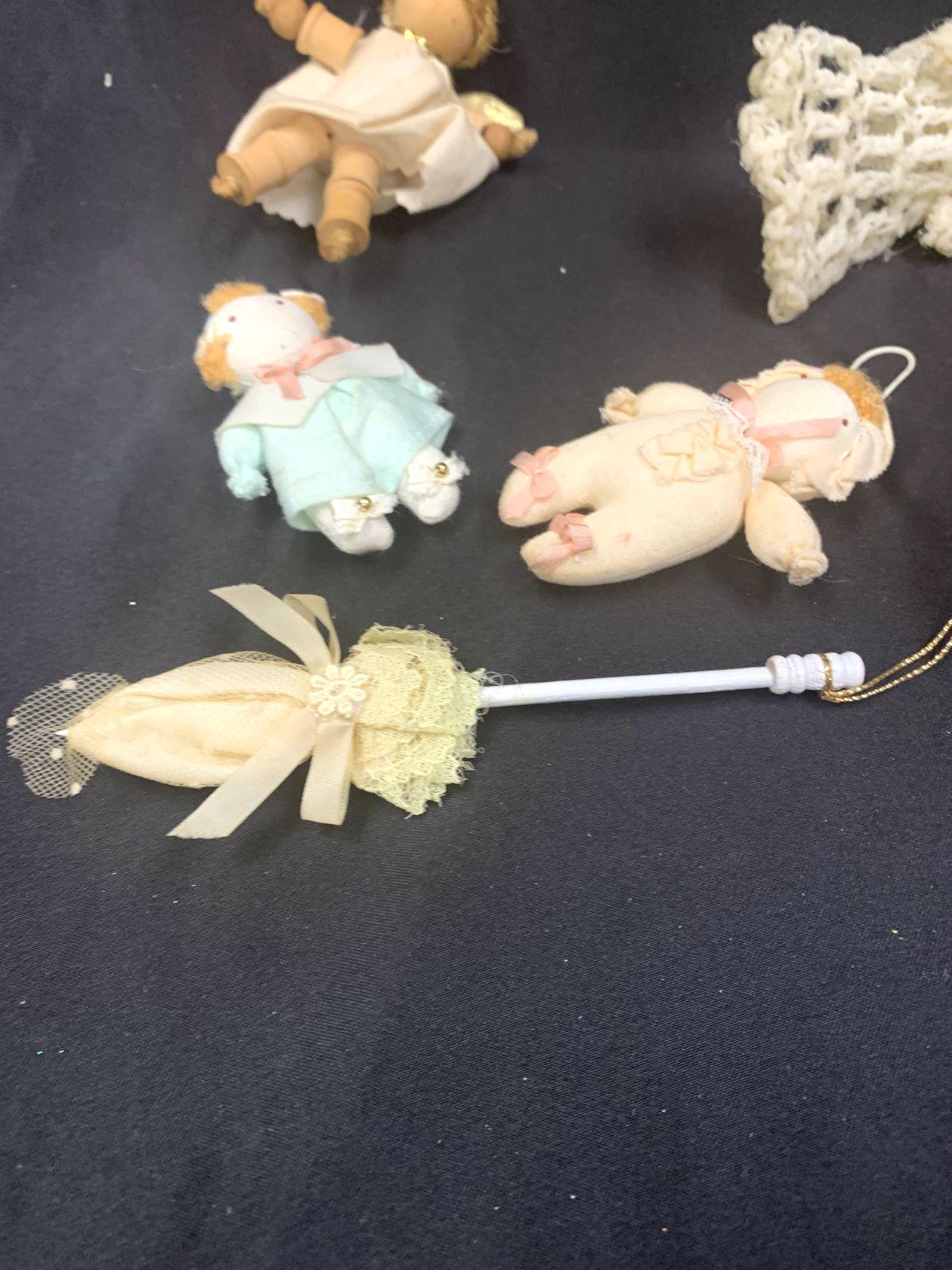 Vintage Handmade Folk Art Christmas Tree Ornaments Angels Baby Dolls and Umbrella Set of 5