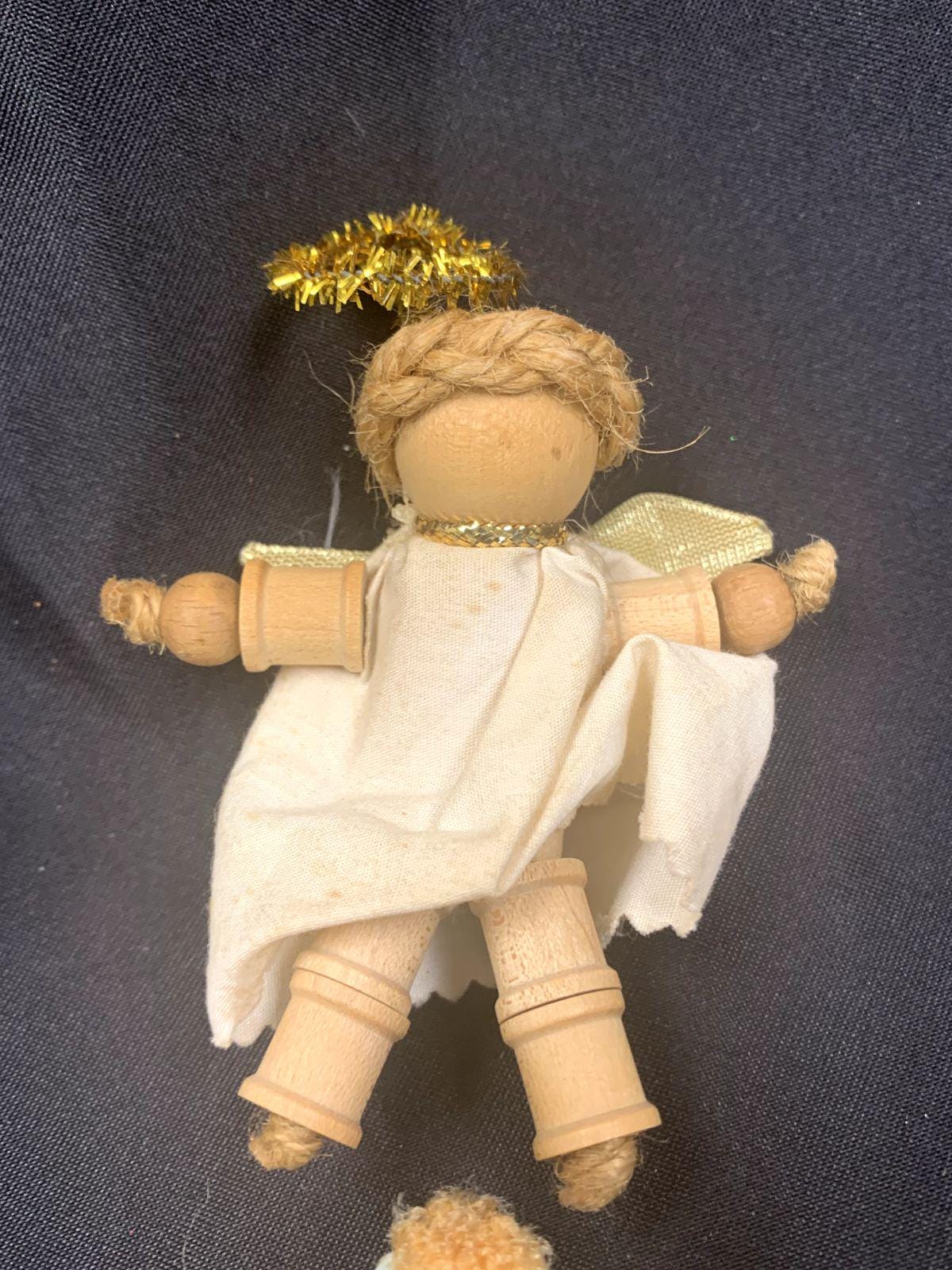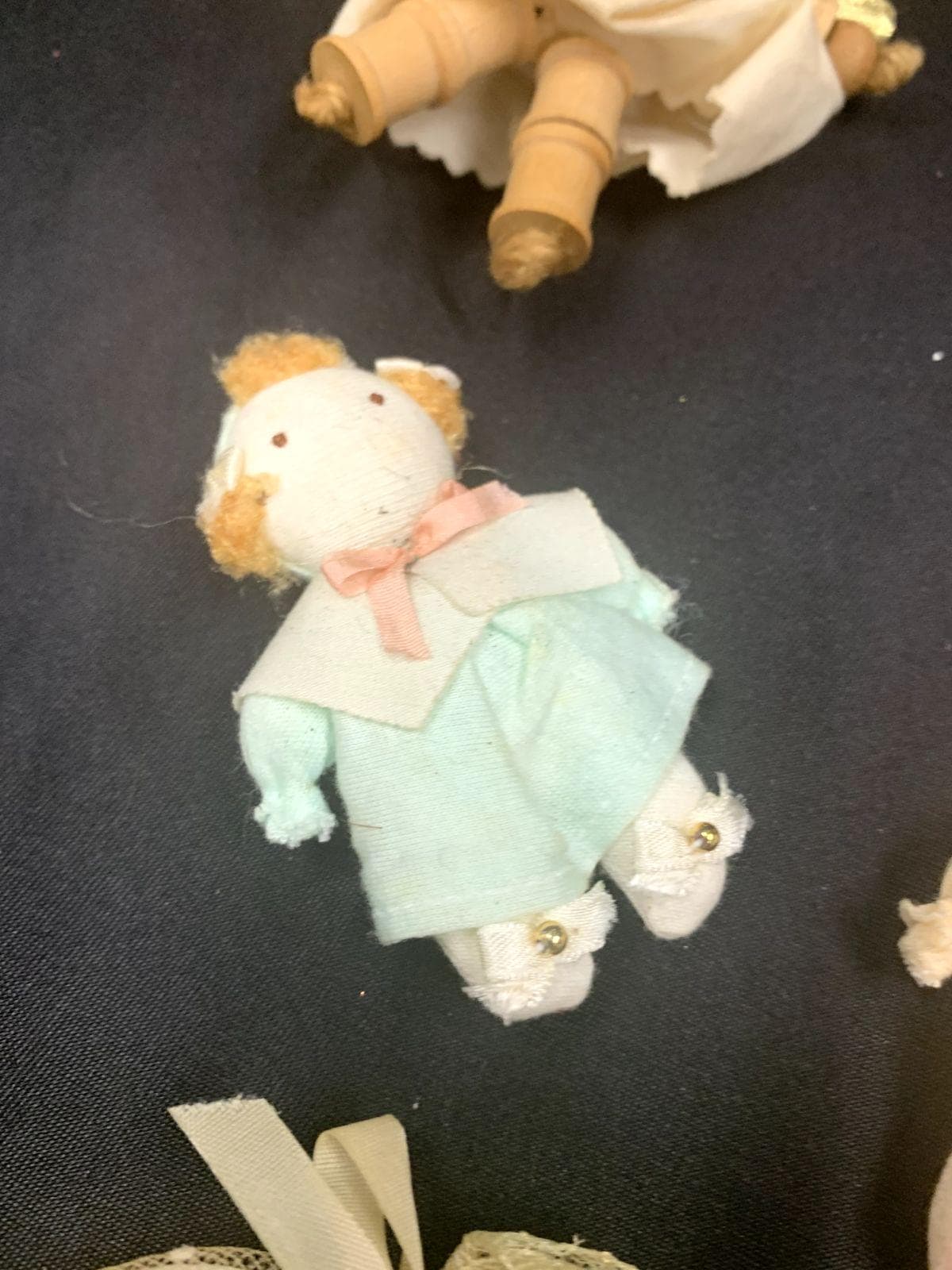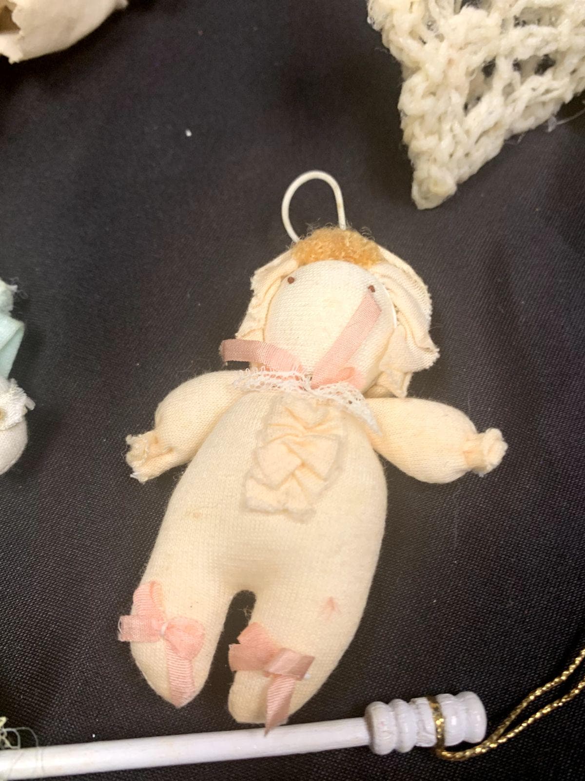 Vintage Handmade Folk Art Christmas Tree Ornaments Angels Baby Dolls and Umbrella Set of 5