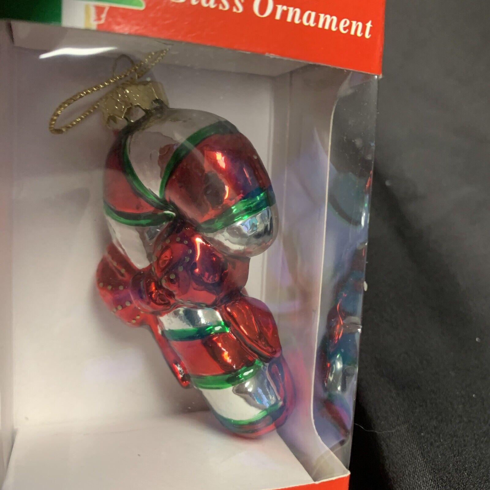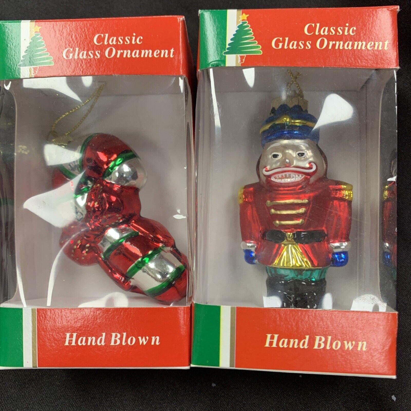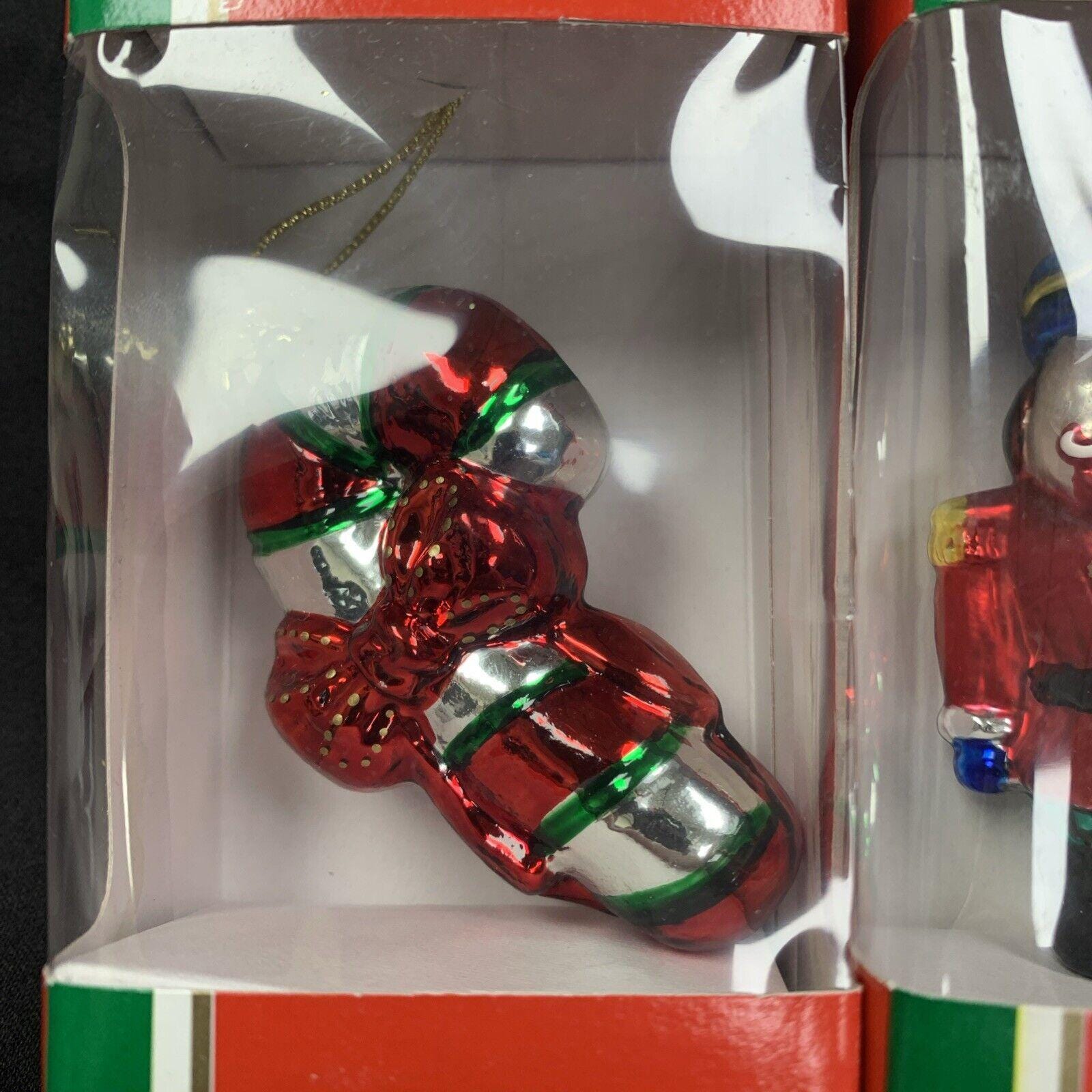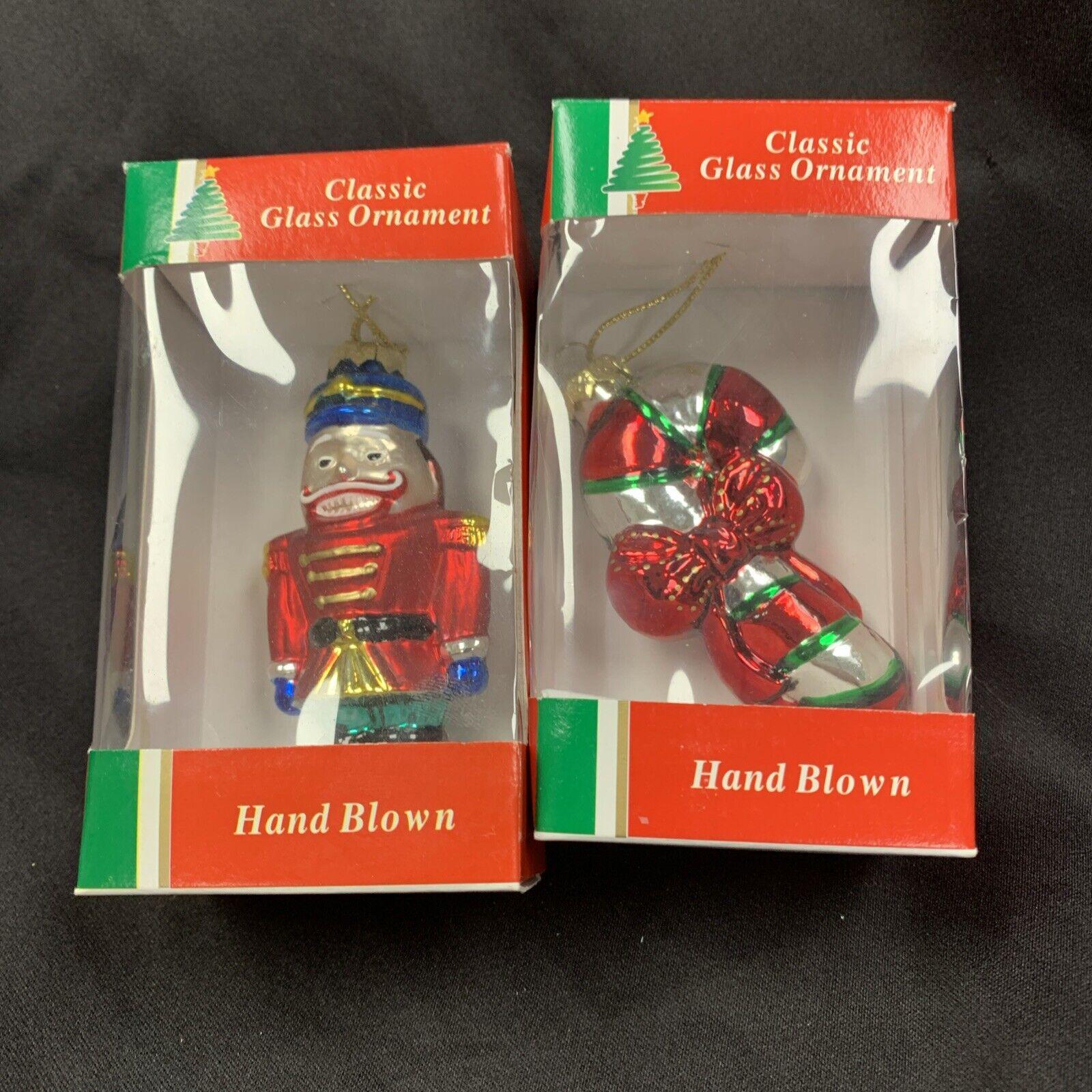 Lot of 2 Vintage Classic Hand Blown Glass Christmas Ornaments, Nutcracker & Candy Cane By Spain's Of Philadelphia