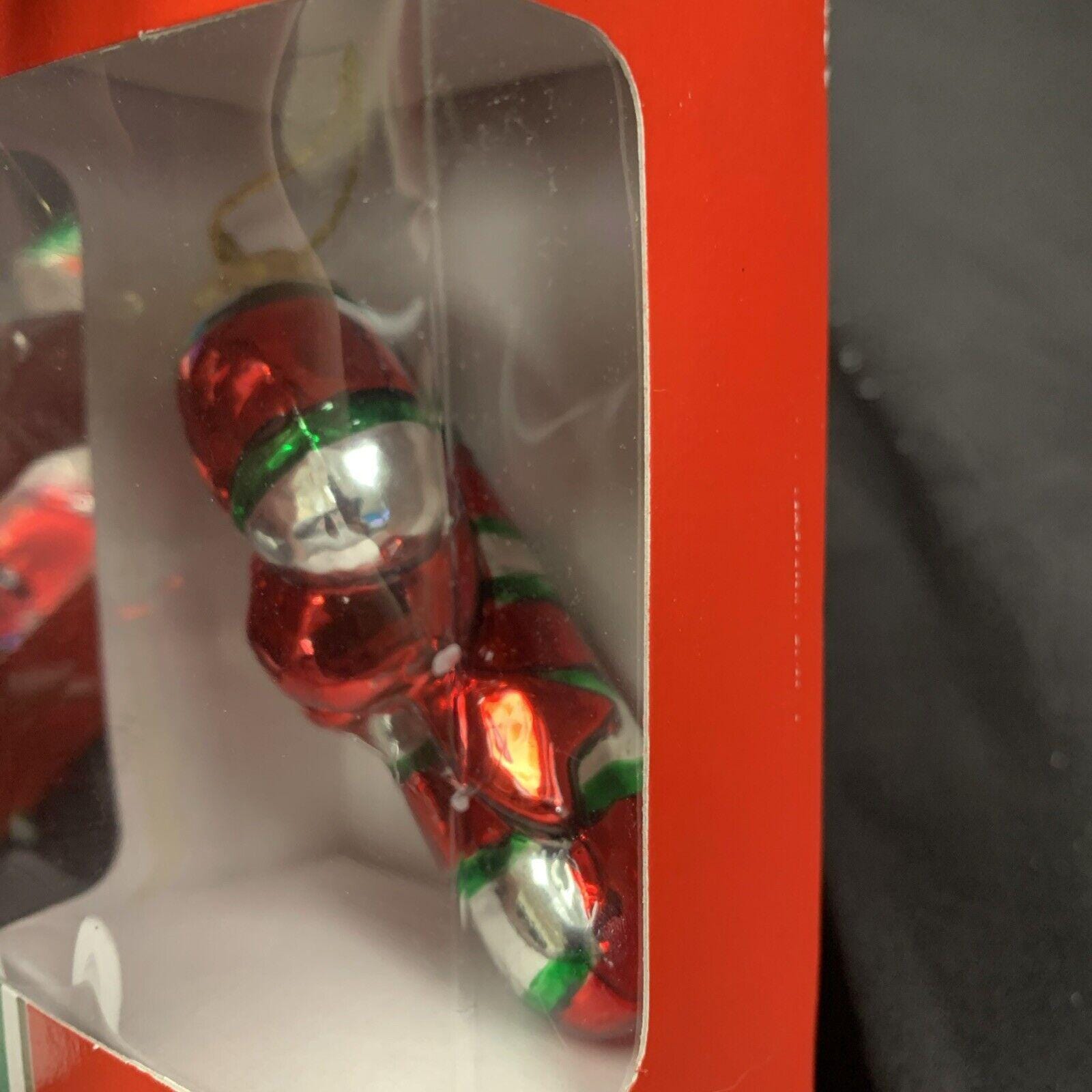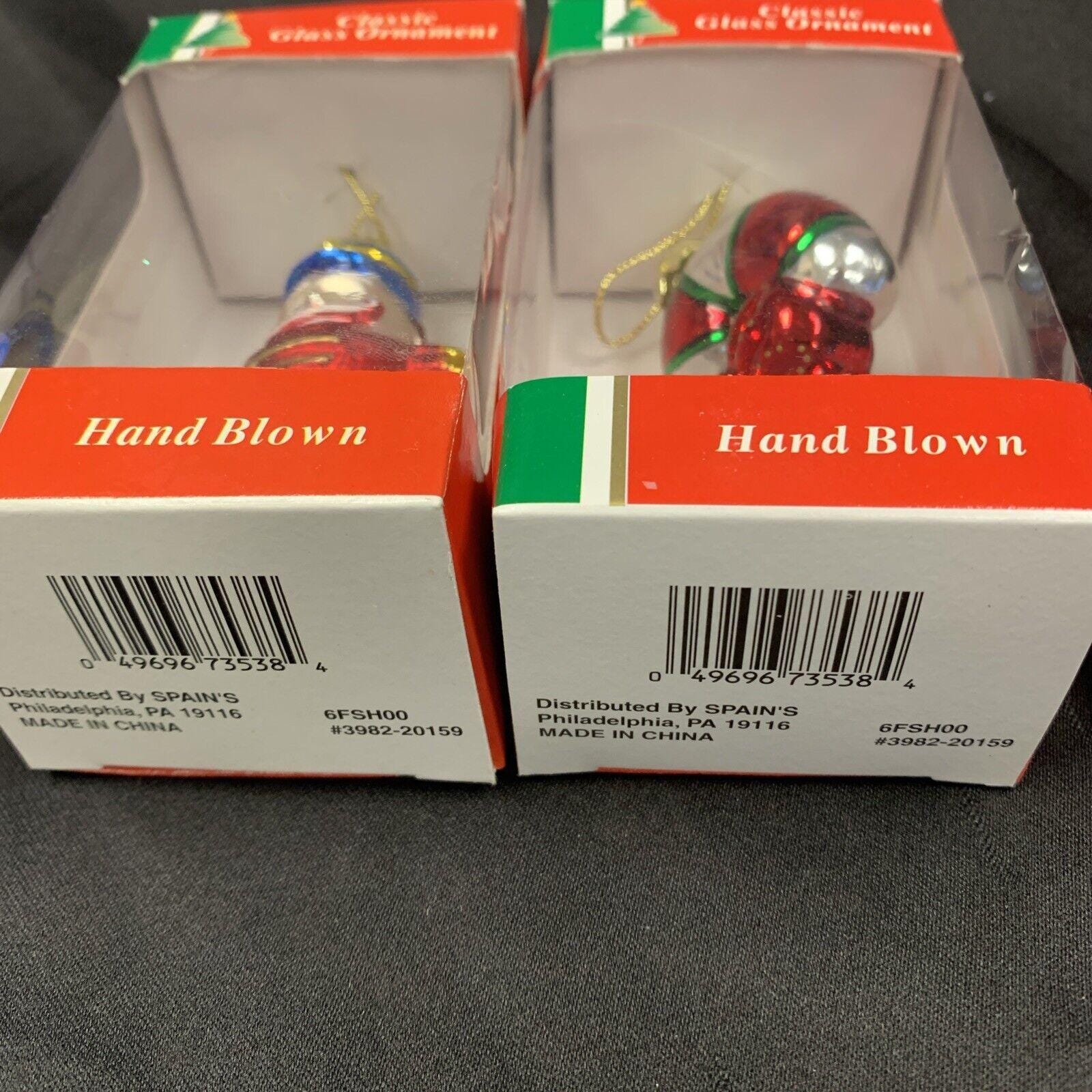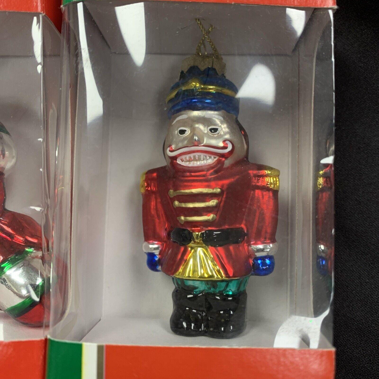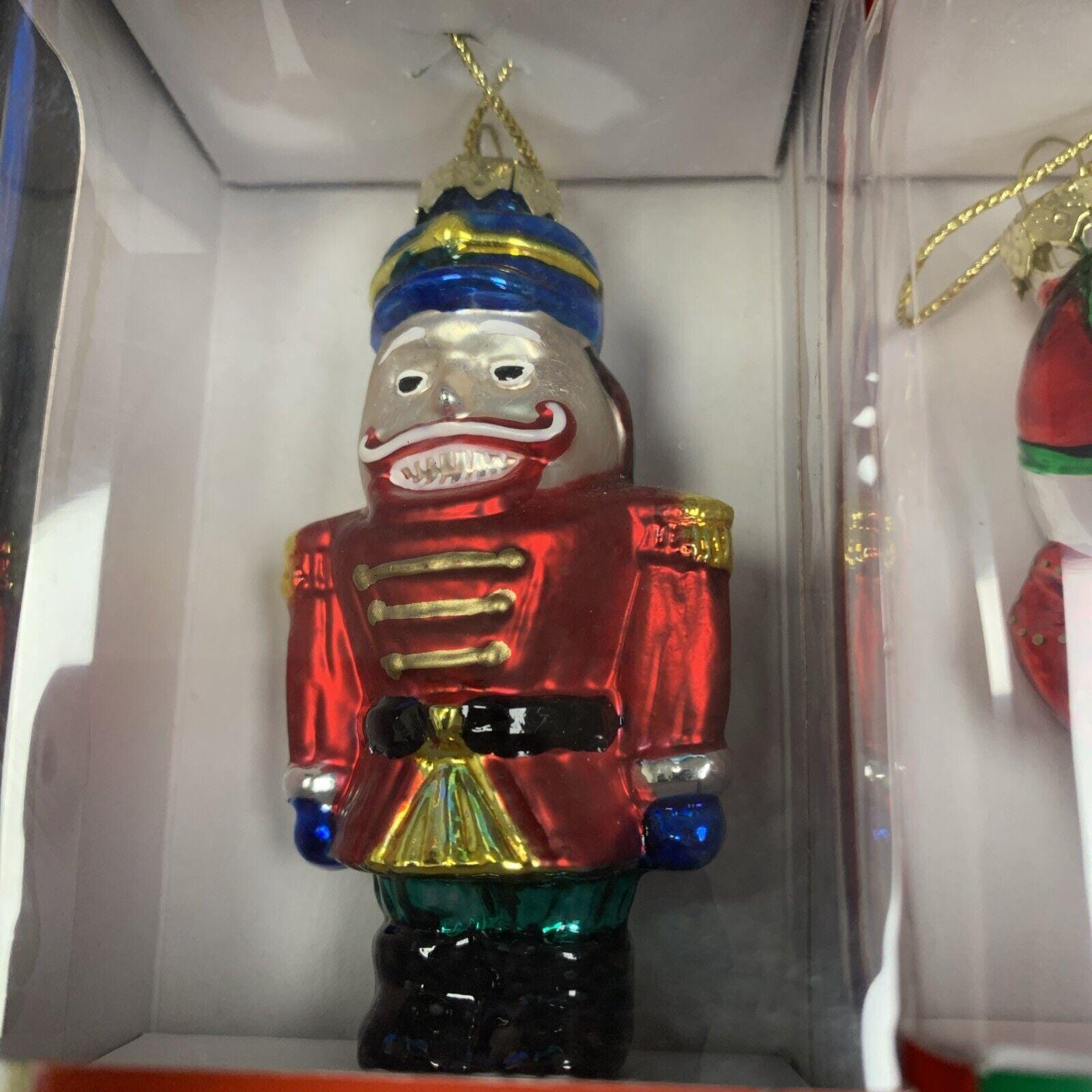 Lot of 2 Vintage Classic Hand Blown Glass Christmas Ornaments, Nutcracker & Candy Cane By Spain's Of Philadelphia