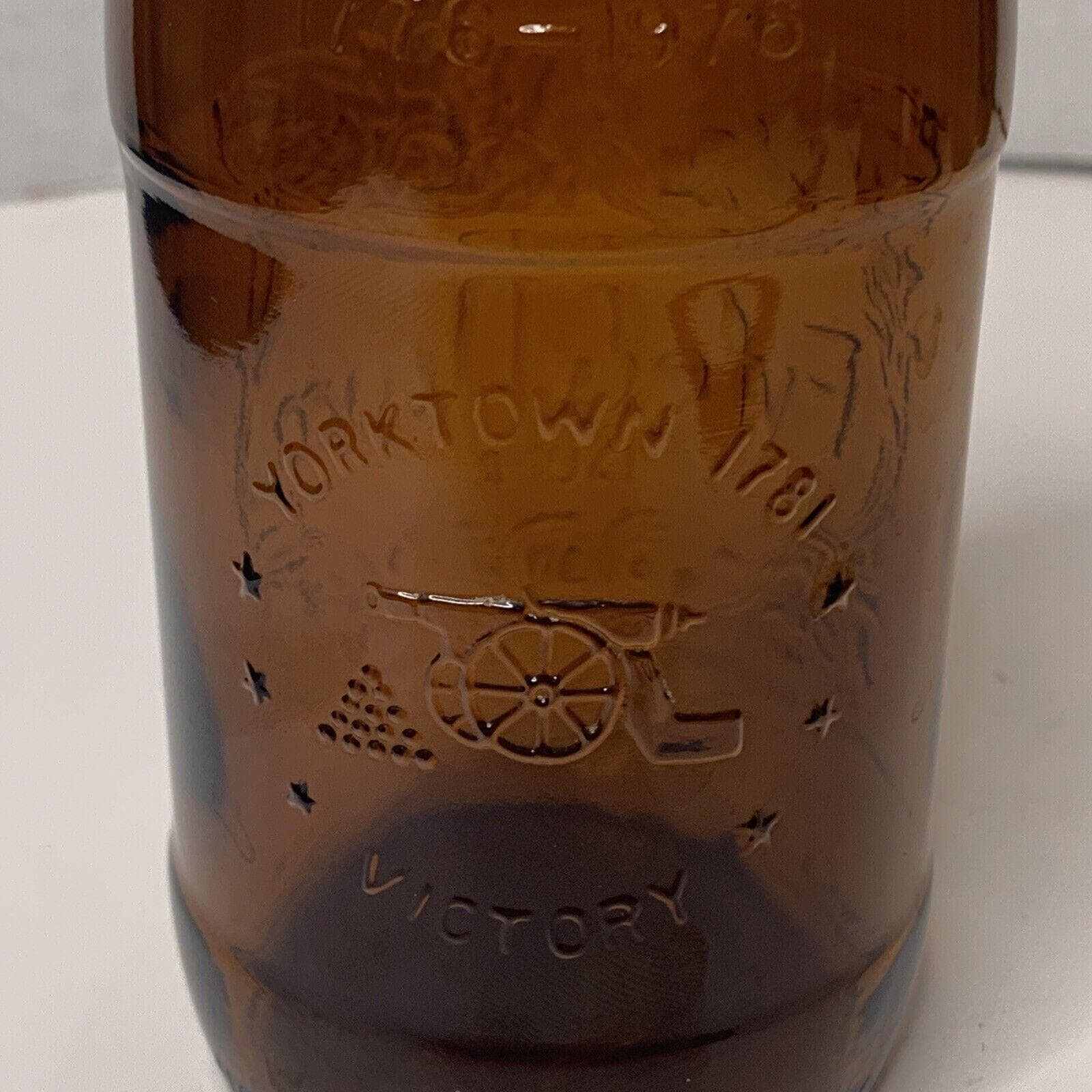 Fyfe And Drum Embossed Commemorative Brown Beer Bottle Spirit Of 76 American Bicentennial 1776 - 1976 Yorktown 1781 Victory