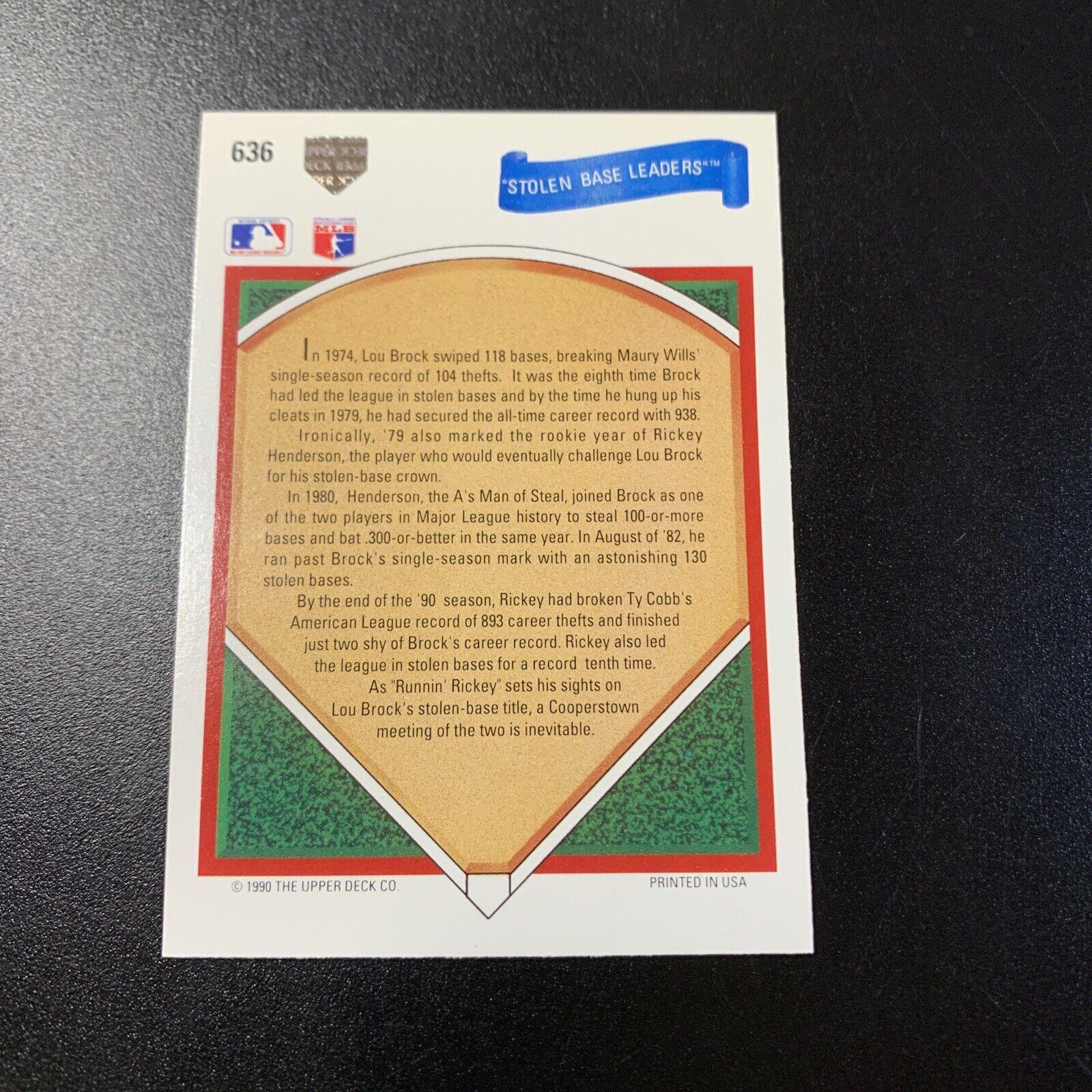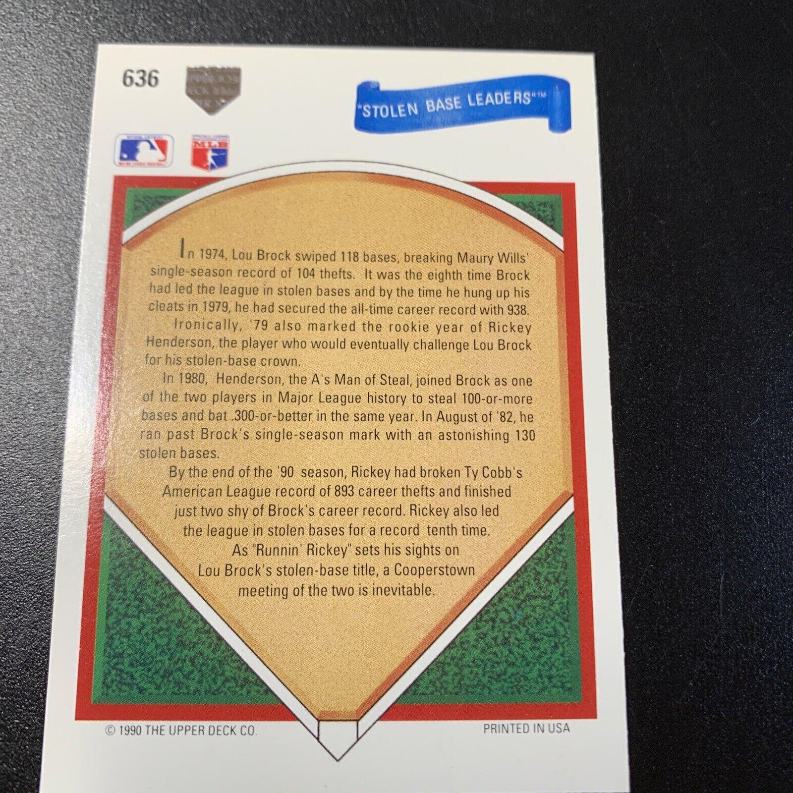 1991 Upper Deck Stolen Base Leader Rickey Henderson Lou Brock Baseball Card 636