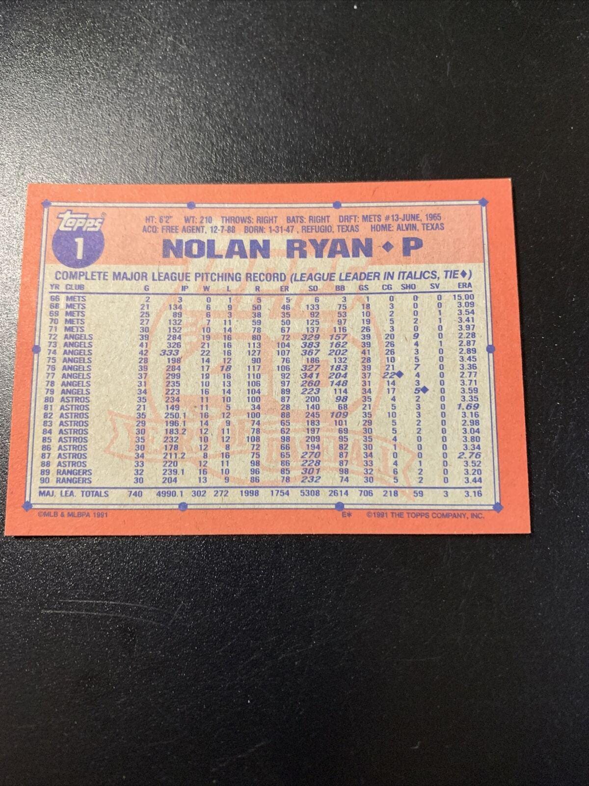 1991 Topps Nolan Ryan Texas Rangers Baseball Card 1