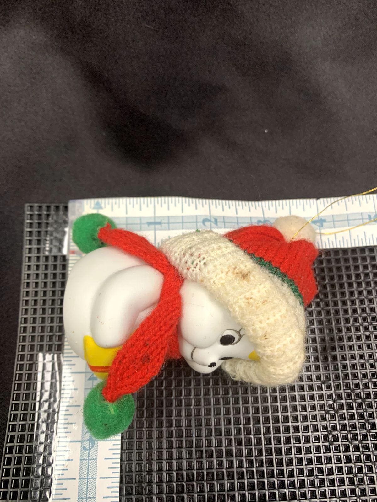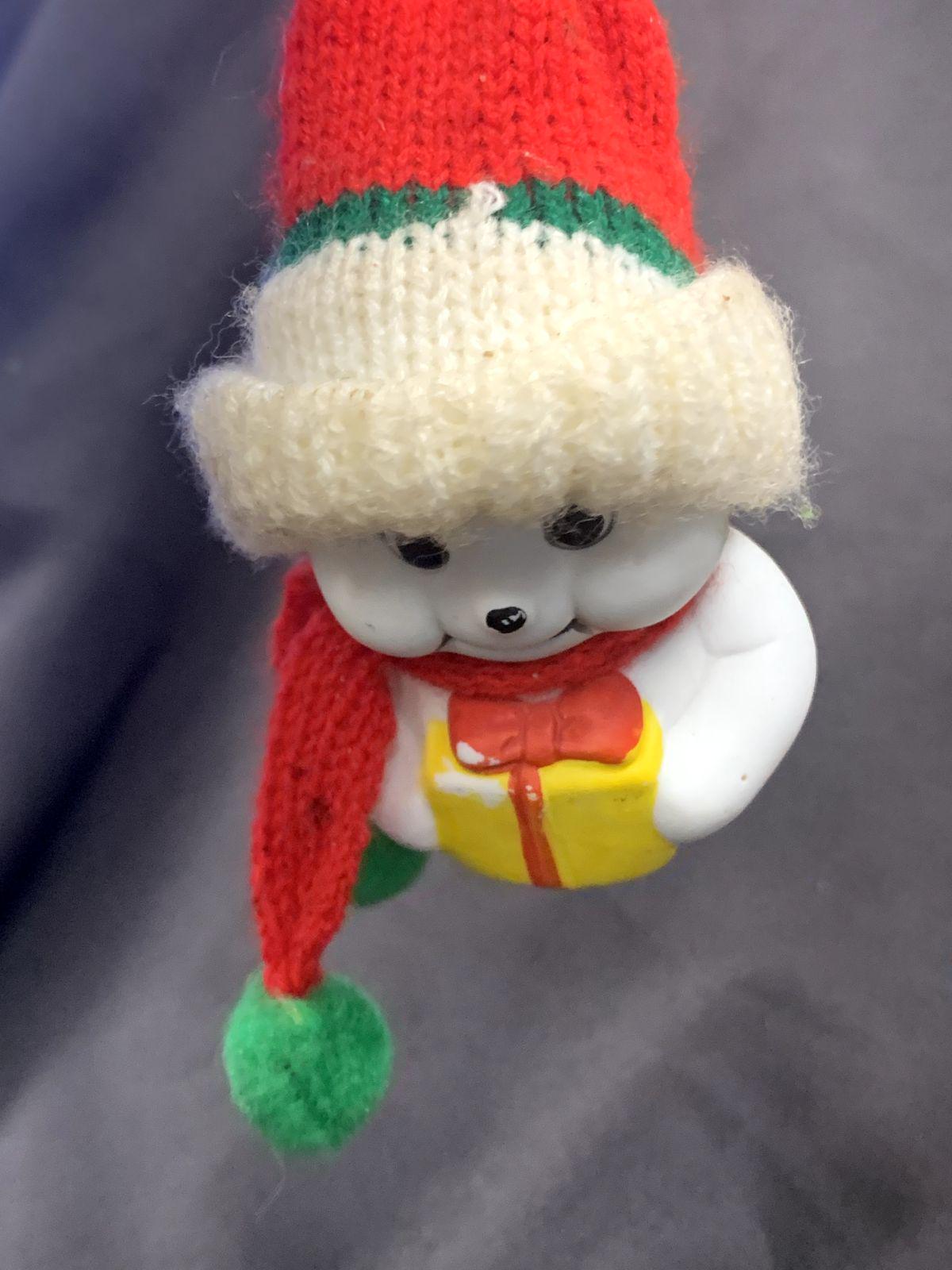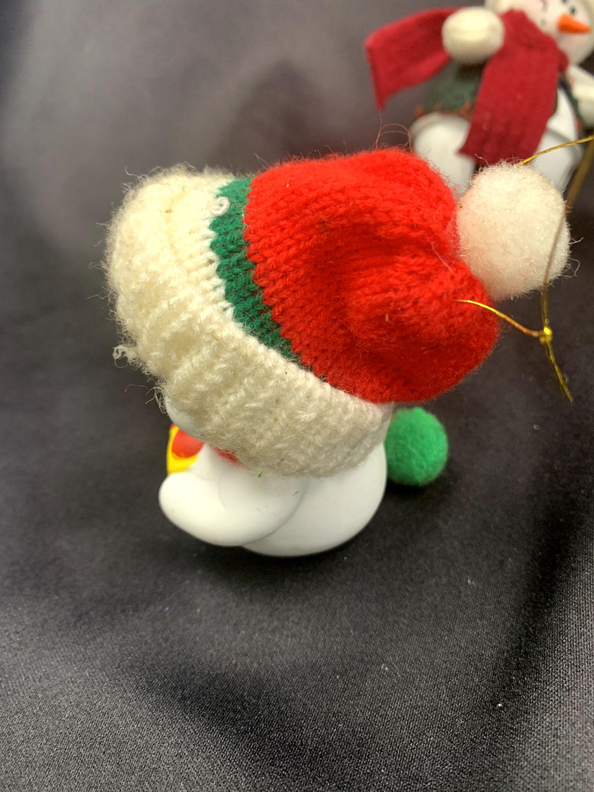 ~Ceramic snowman with a knit hat (4" H x 2" W)