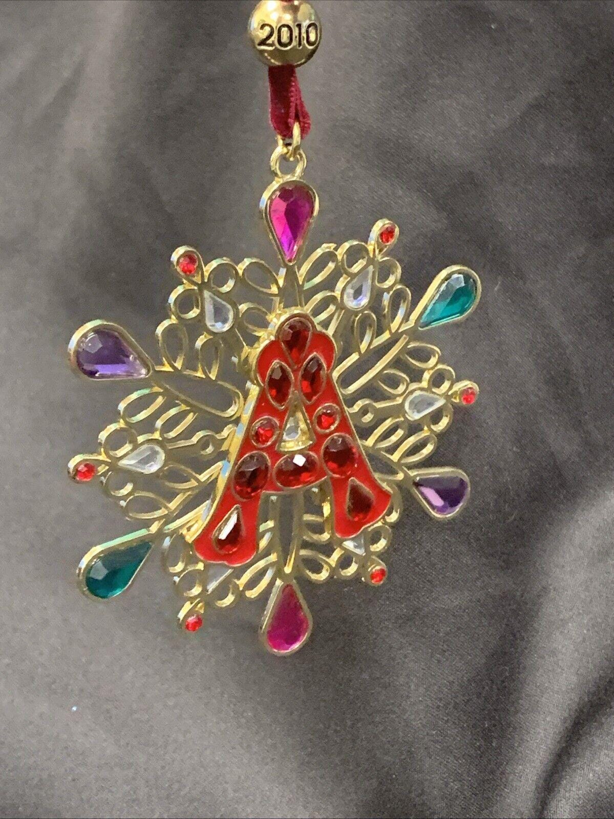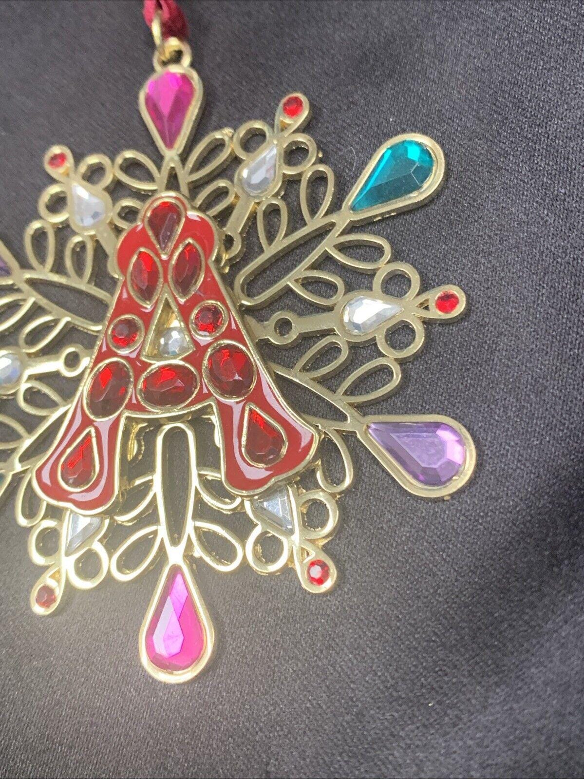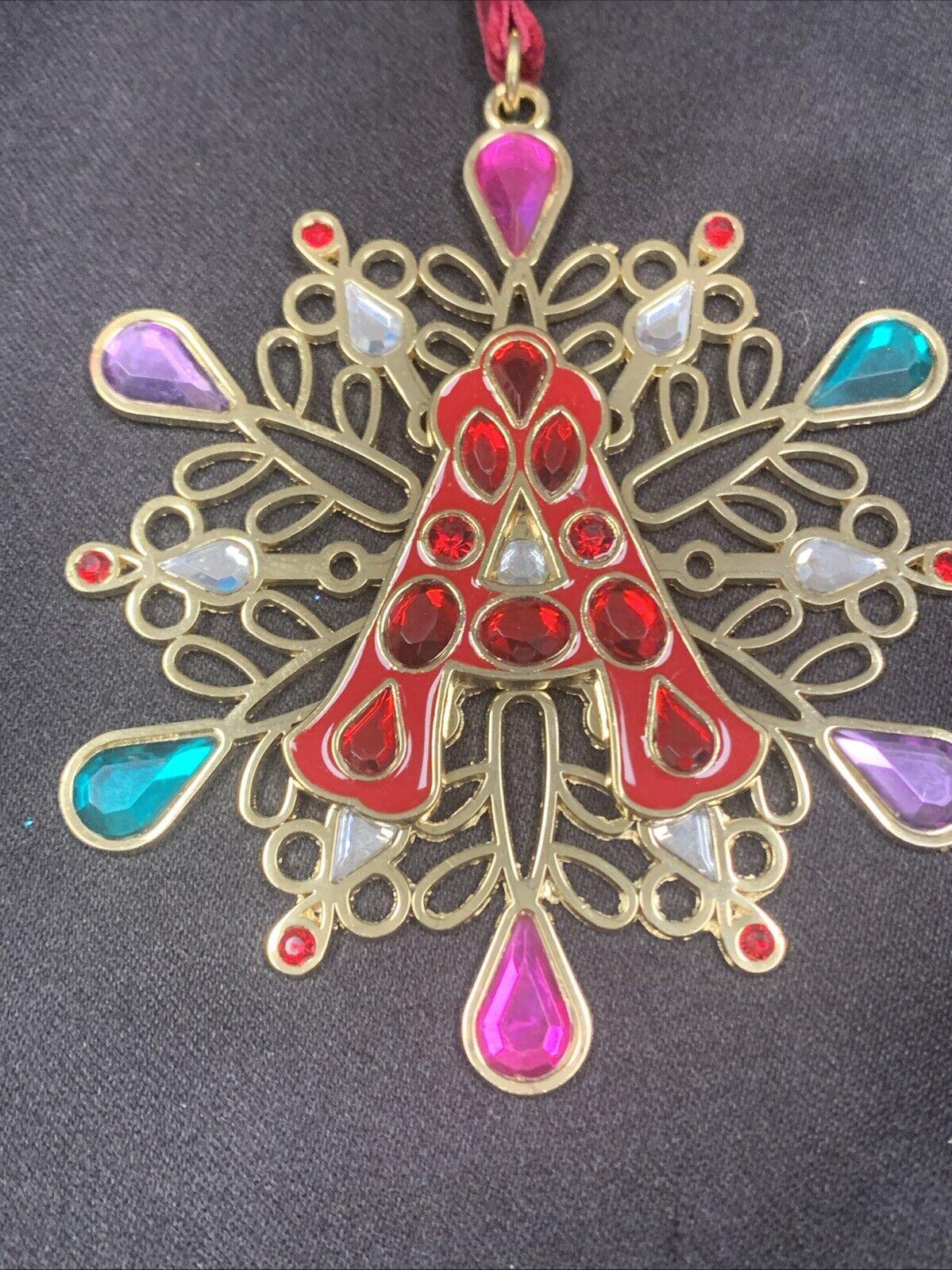 Liz Claiborne 2010 Merry & Bright Colorful Jeweled Snowflake Christmas Tree Ornament With Letter A
