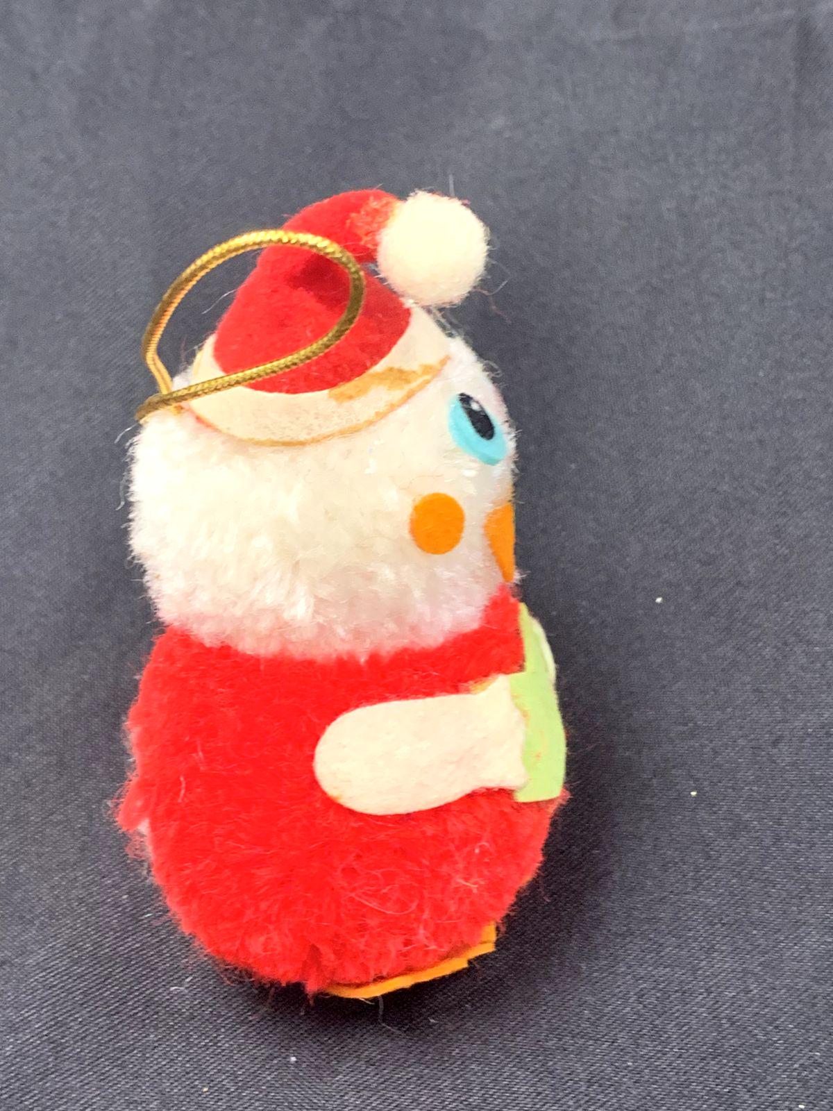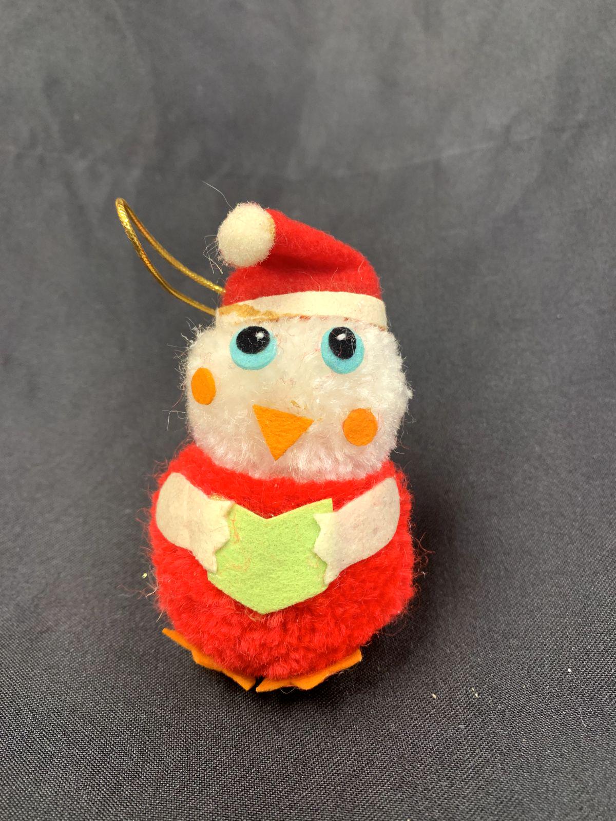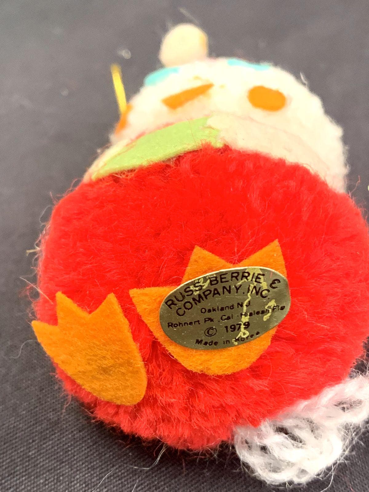 Vintage Russ and Berrie Whimsical Plus Pom Pom Bird Wearing a Santa Hit Christmas Tree Ornament From 1979
